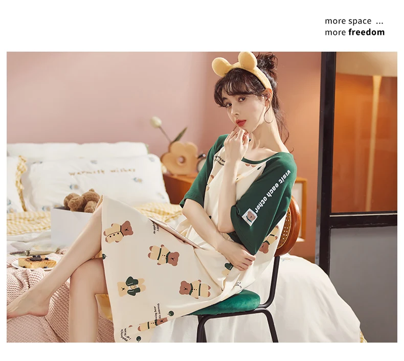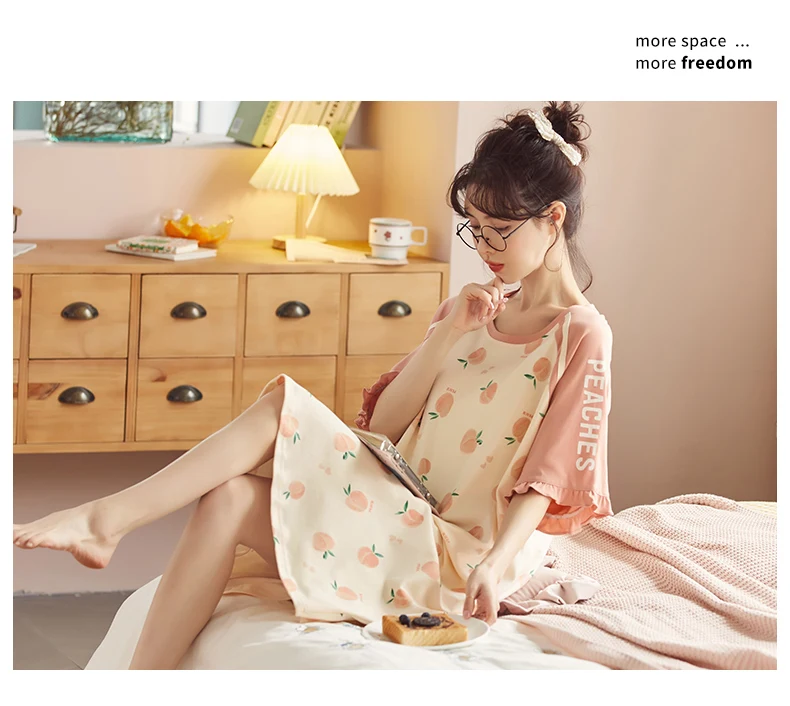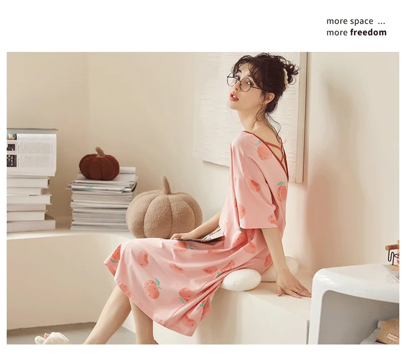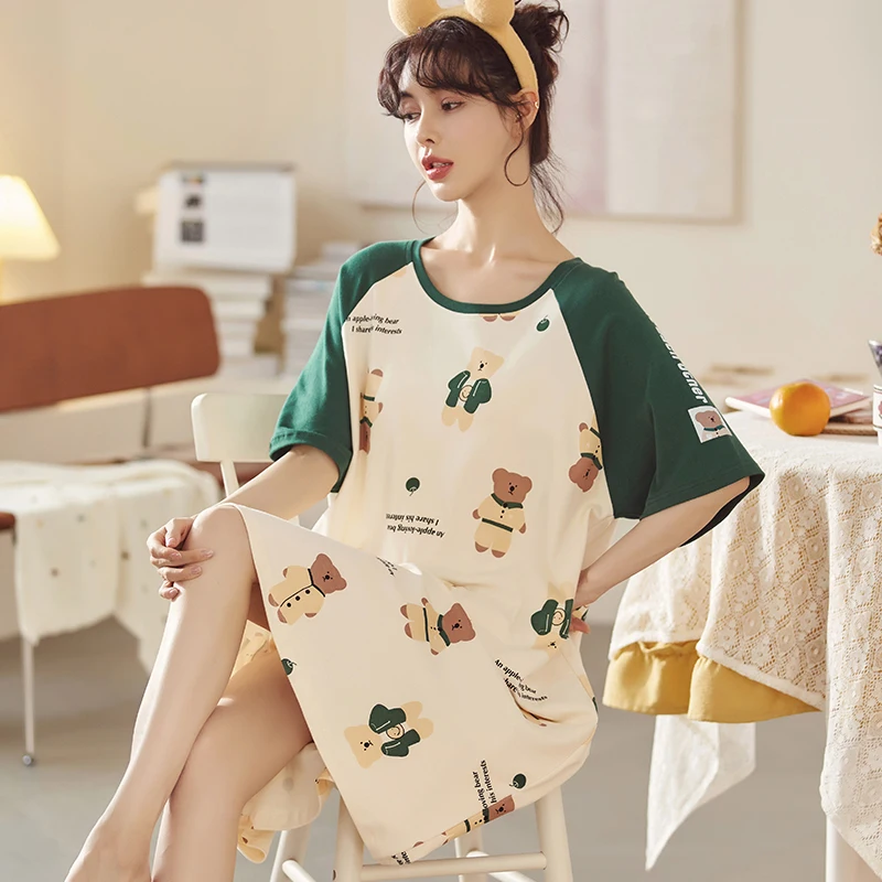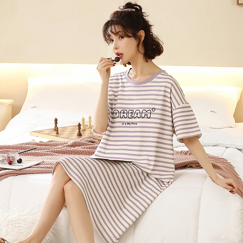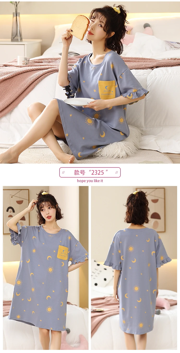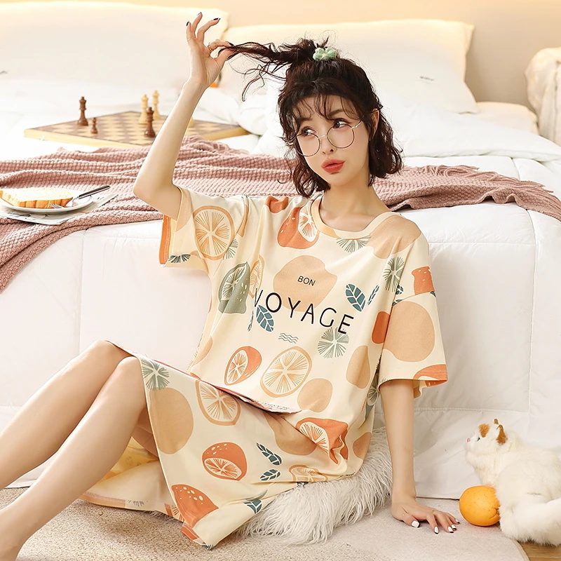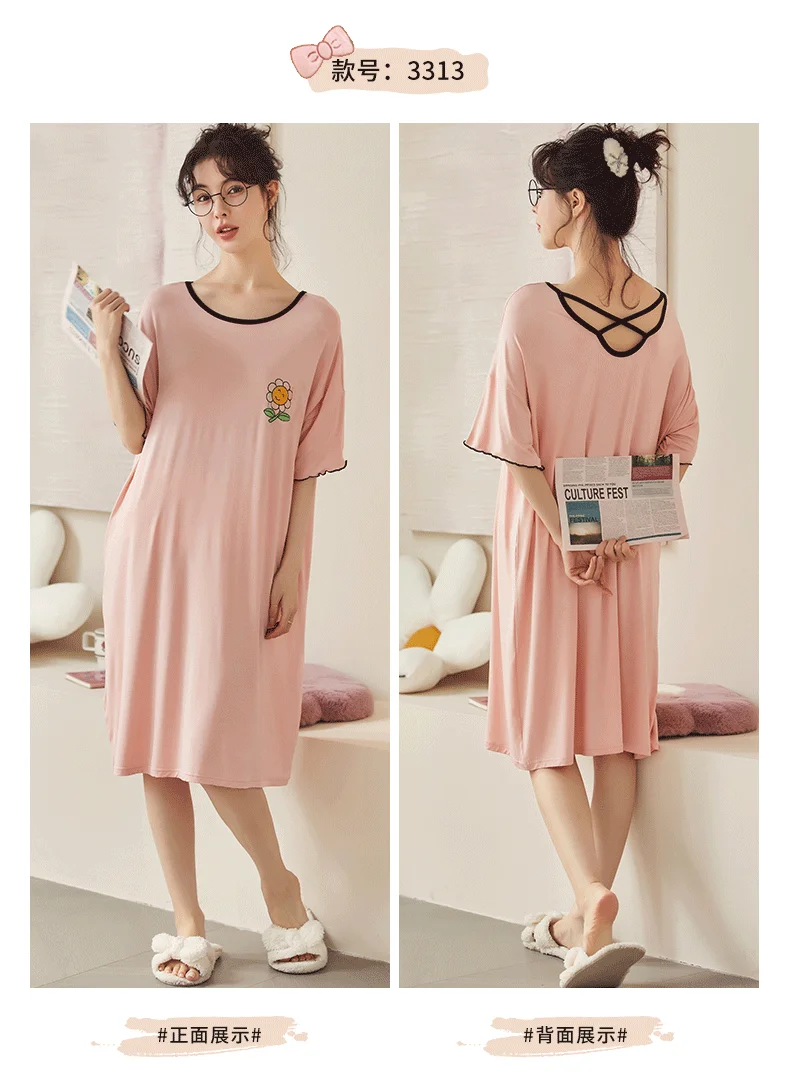 Summer Cute Women Sleepwear M-5XL Nightgowns Home Wear Young Girls Cotton Sleep Lounge Nightgrowns Dress Modal Home Clothing