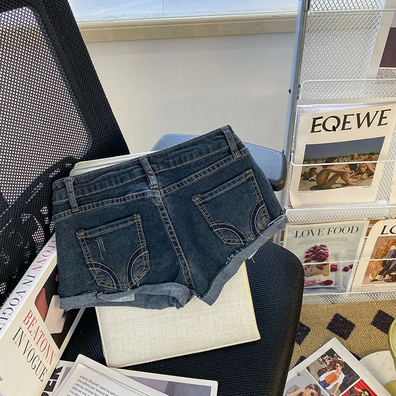 Summer Denim Shorts for Women With Ultra-low Waist Curled Edge Hot Pants Jean Shorts