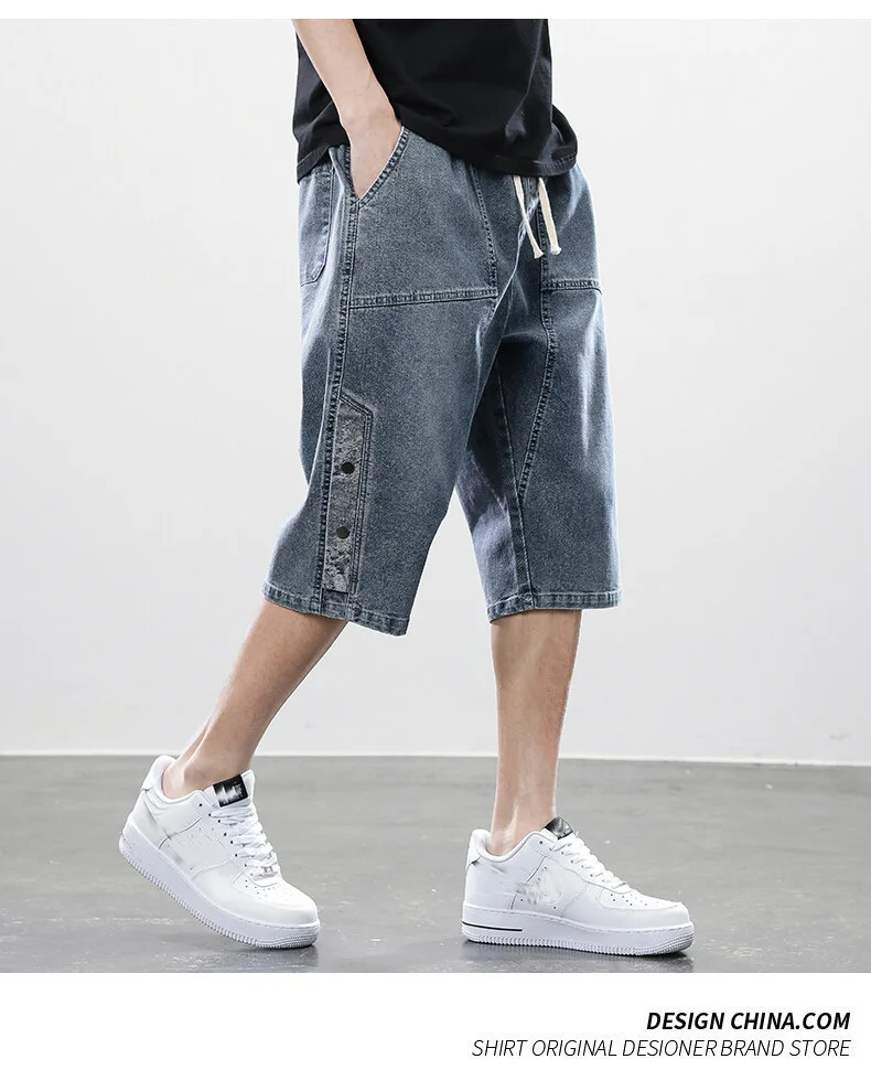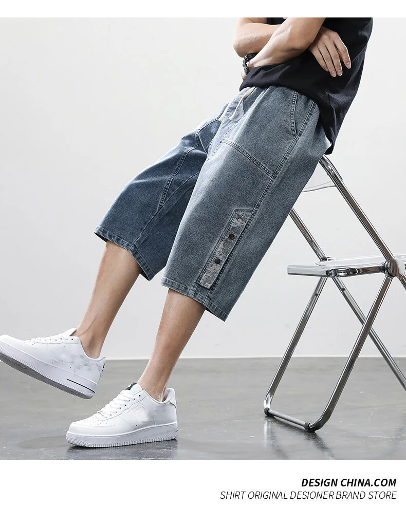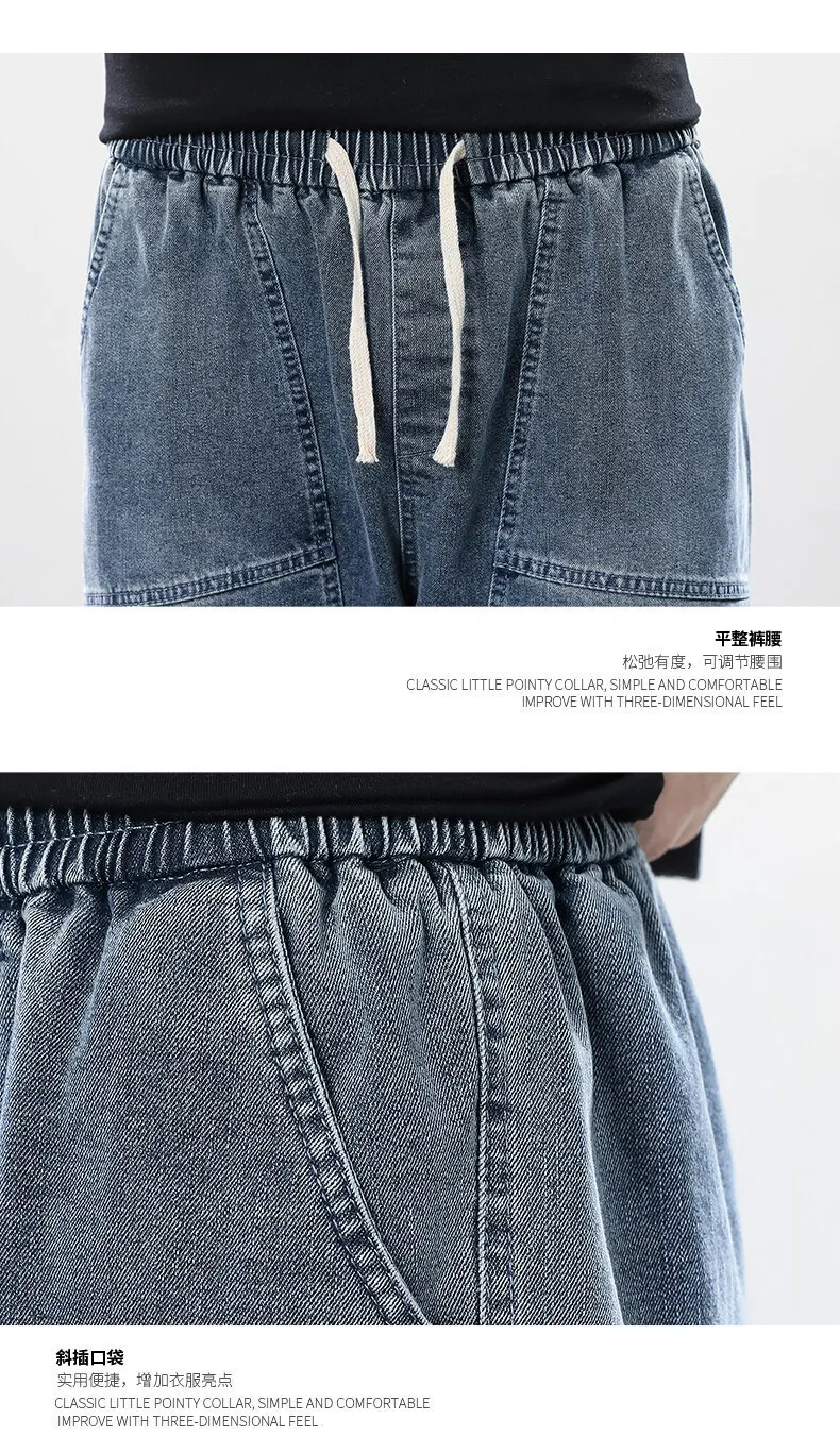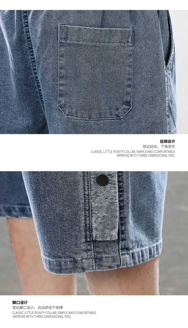 Summer denim shorts men’s trend of loose straight all-match pants trendy summer five-point pants plus size 7xl 8xl shorts men