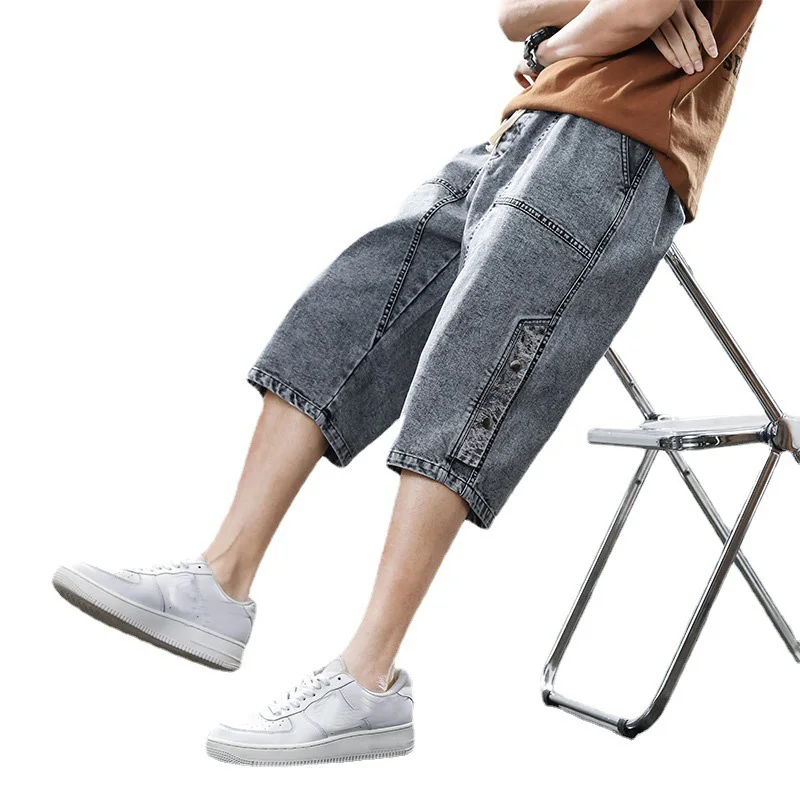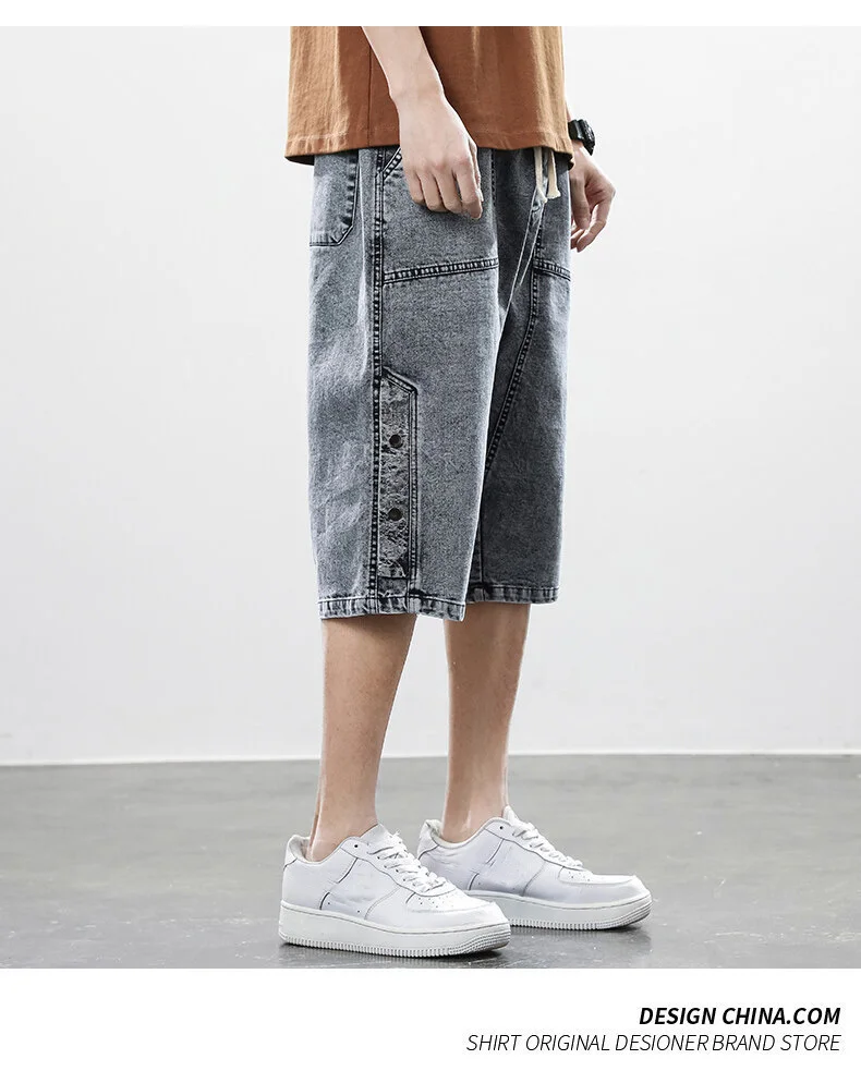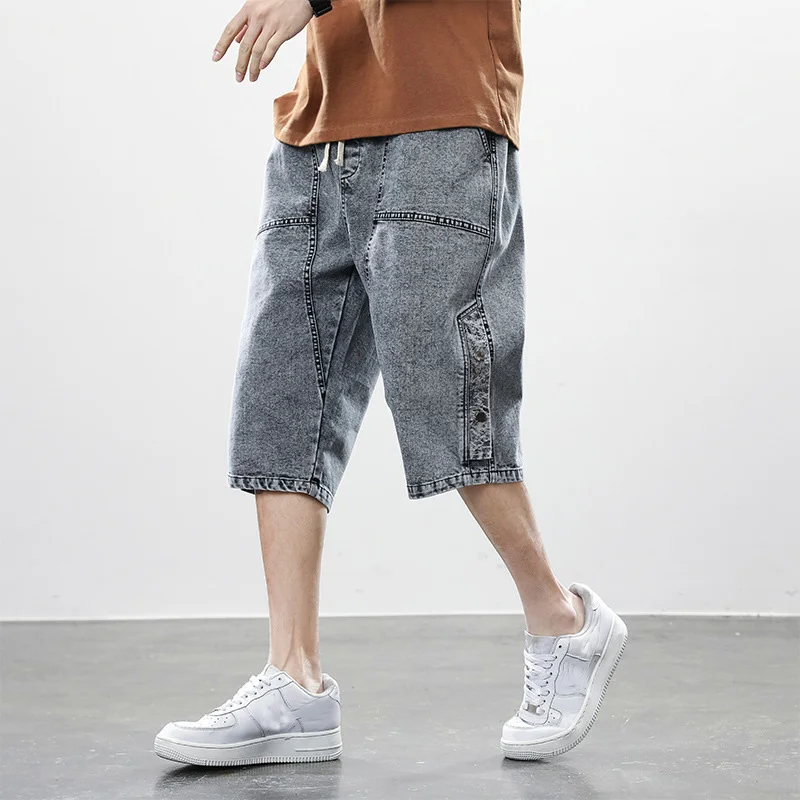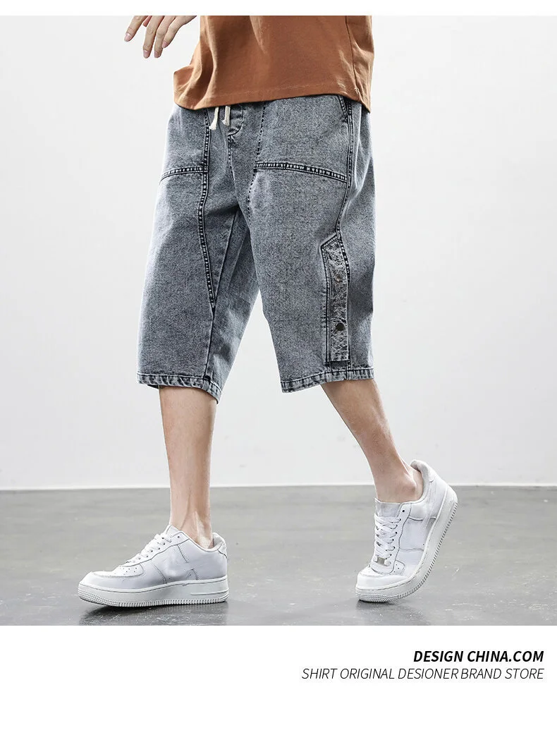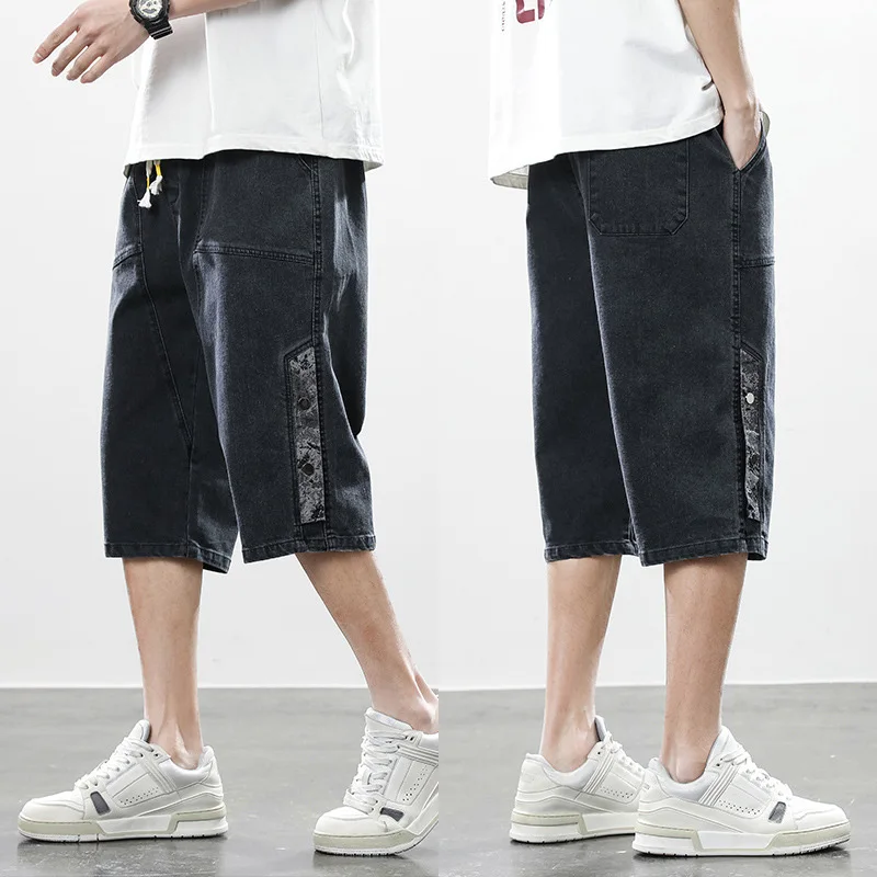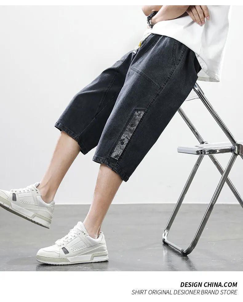 Summer denim shorts men’s trend of loose straight all-match pants trendy summer five-point pants plus size 7xl 8xl shorts men