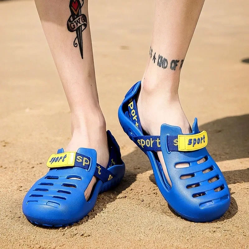 Summer Fashion Sandals Men Outdoor Mesh Beach Breathable Mens hole Shoes Wear Casual beach slippers Big Size 39-44