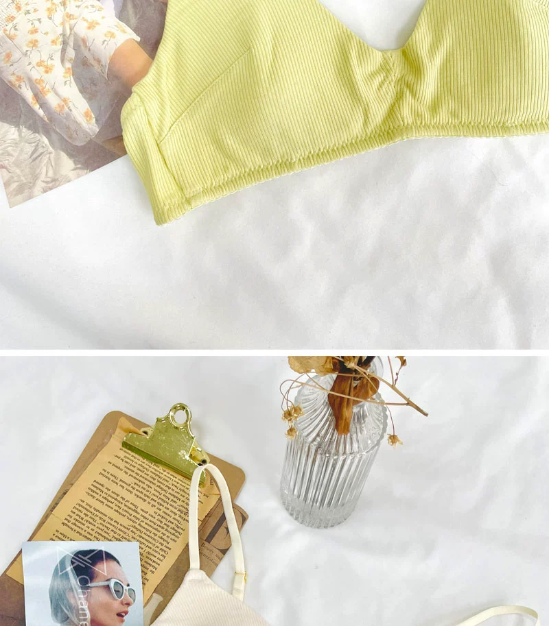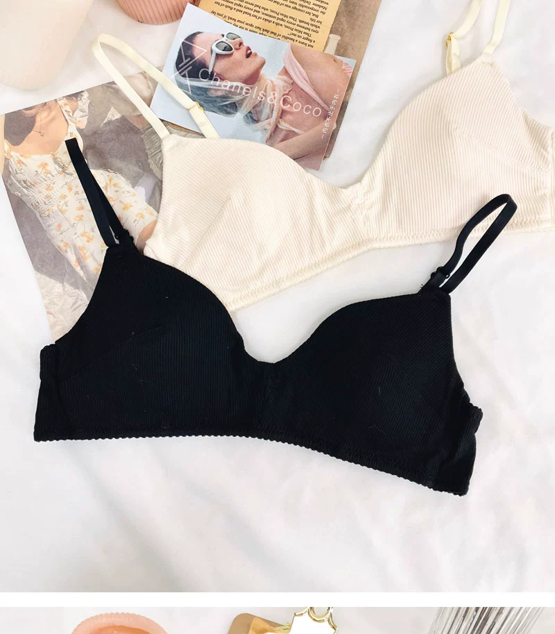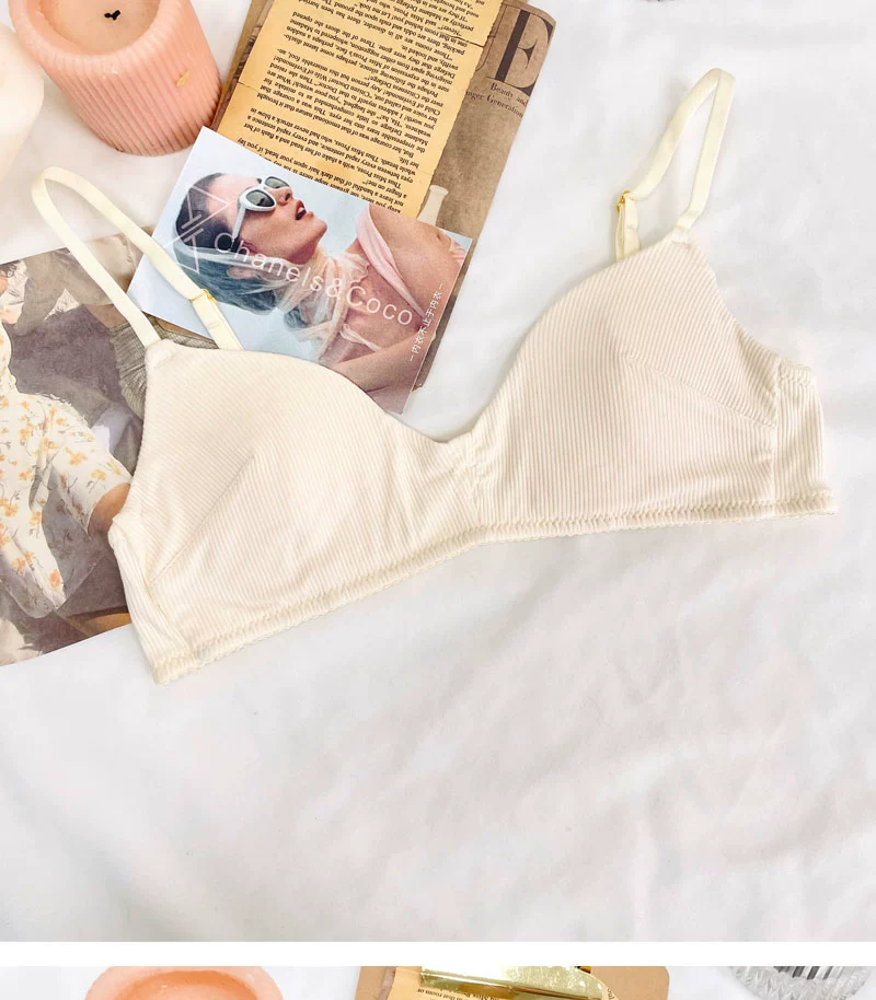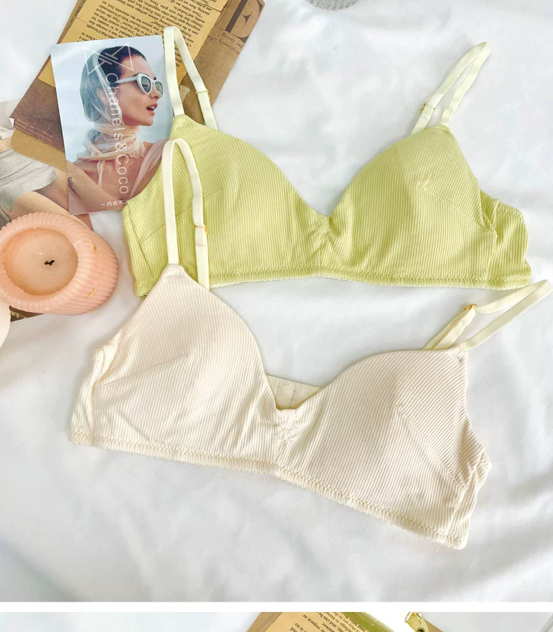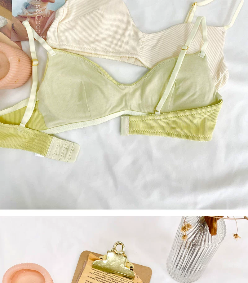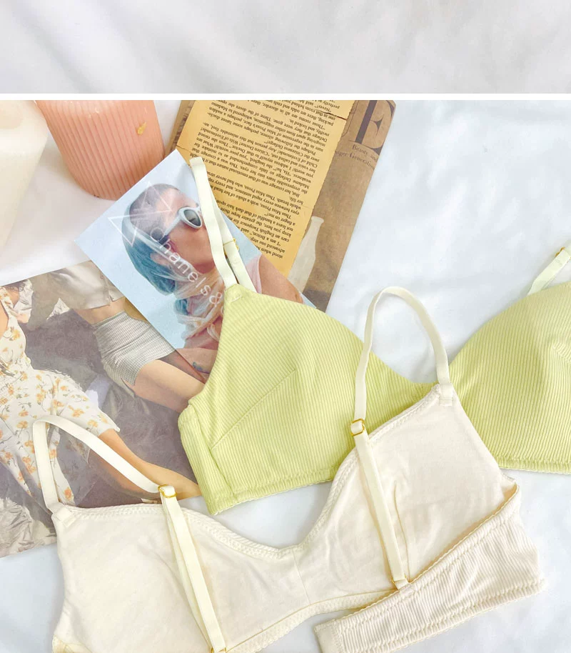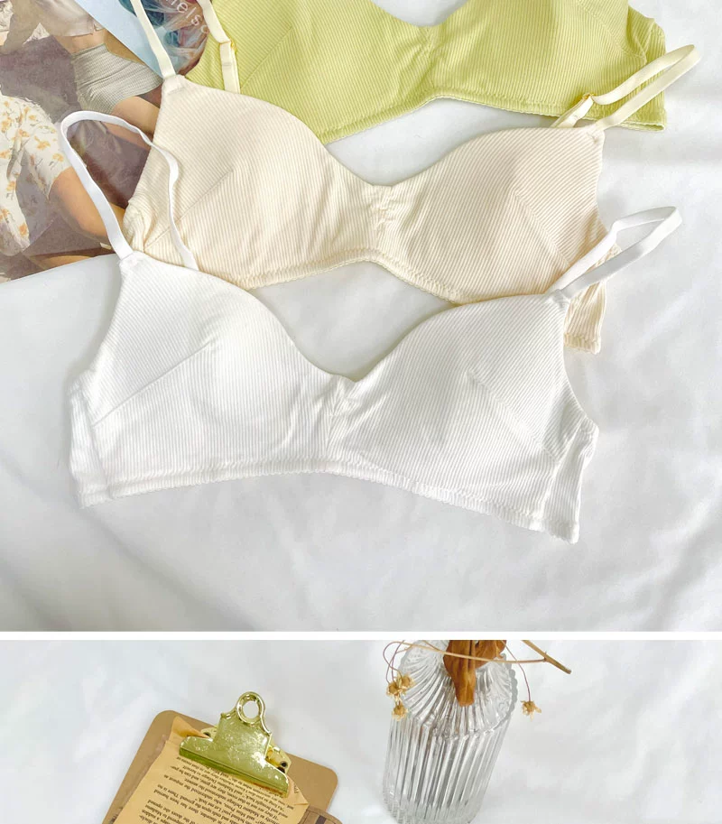 Summer gathered not empty cup underwear thin straps solid color comfortable lingerie girls without steel ring threaded bra