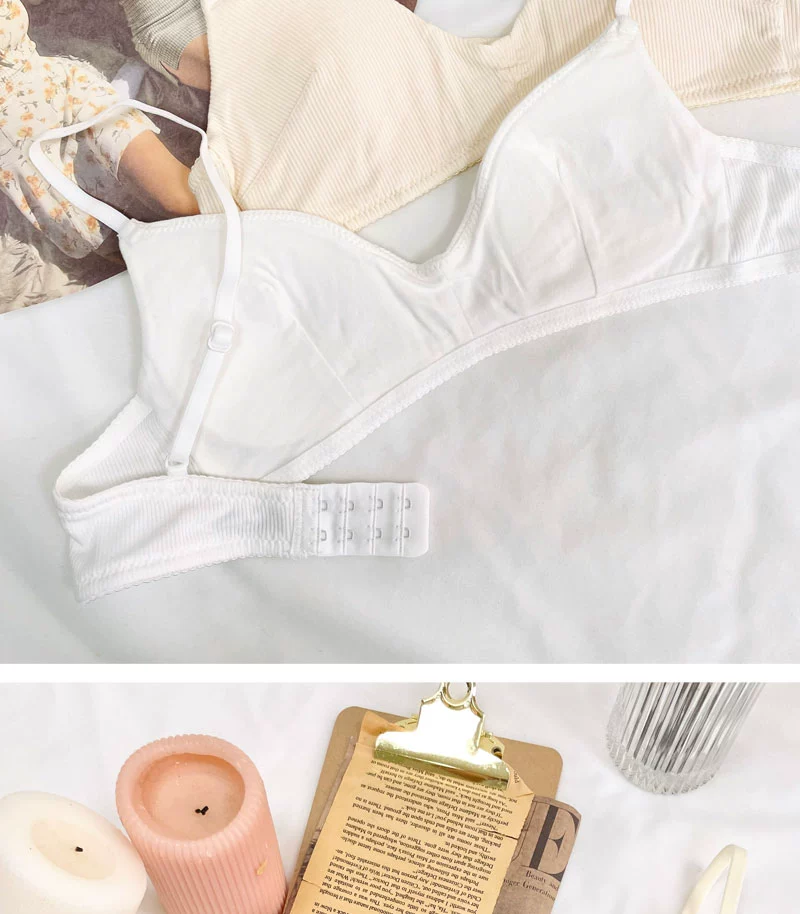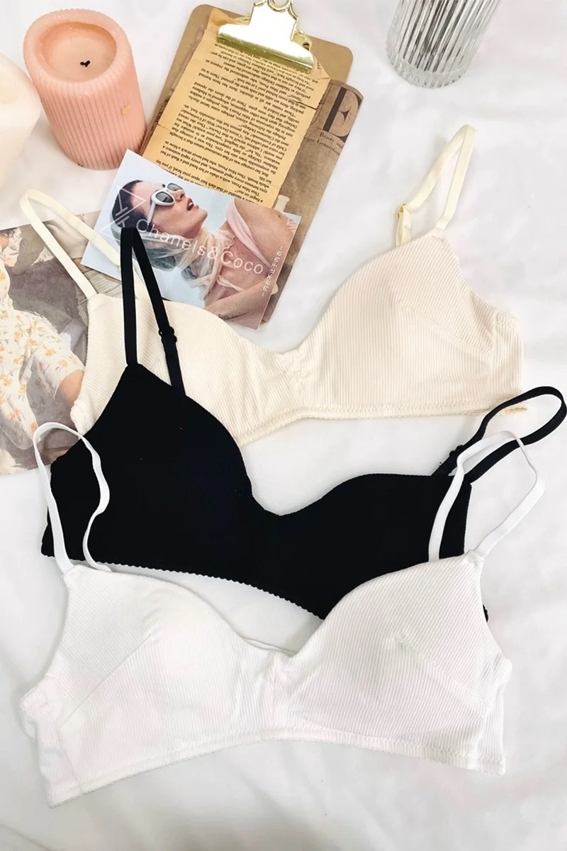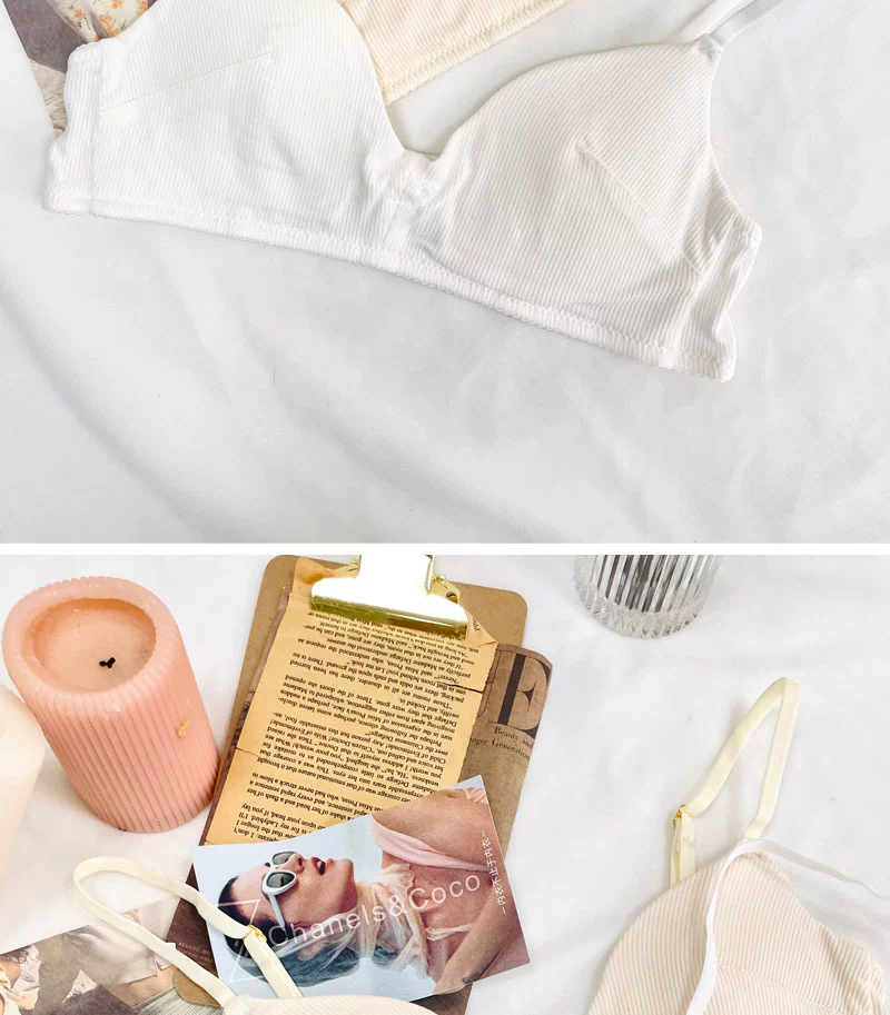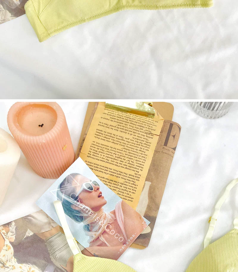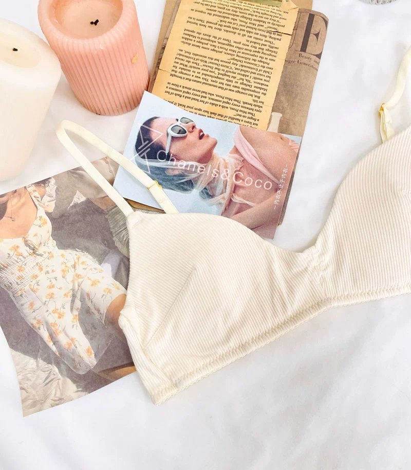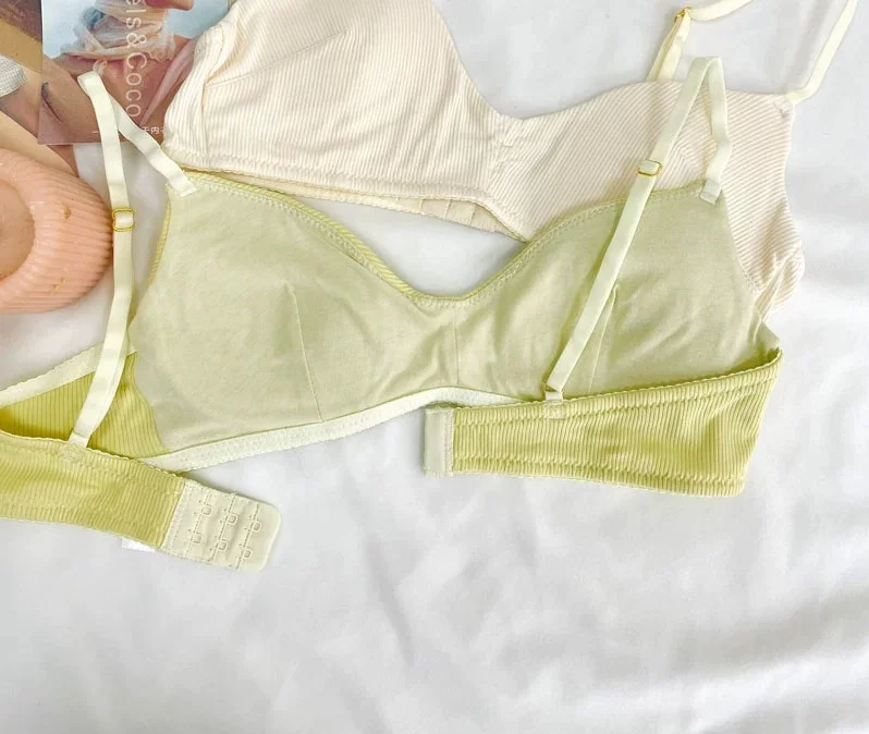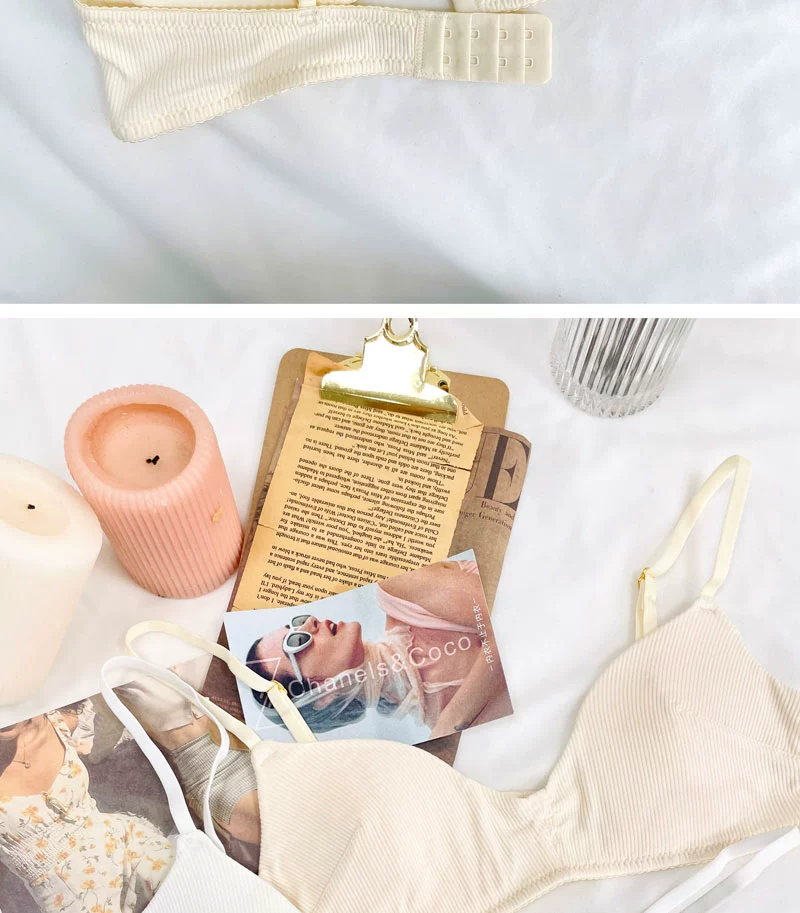Summer gathered not empty cup underwear thin straps solid color comfortable lingerie girls without steel ring threaded bra