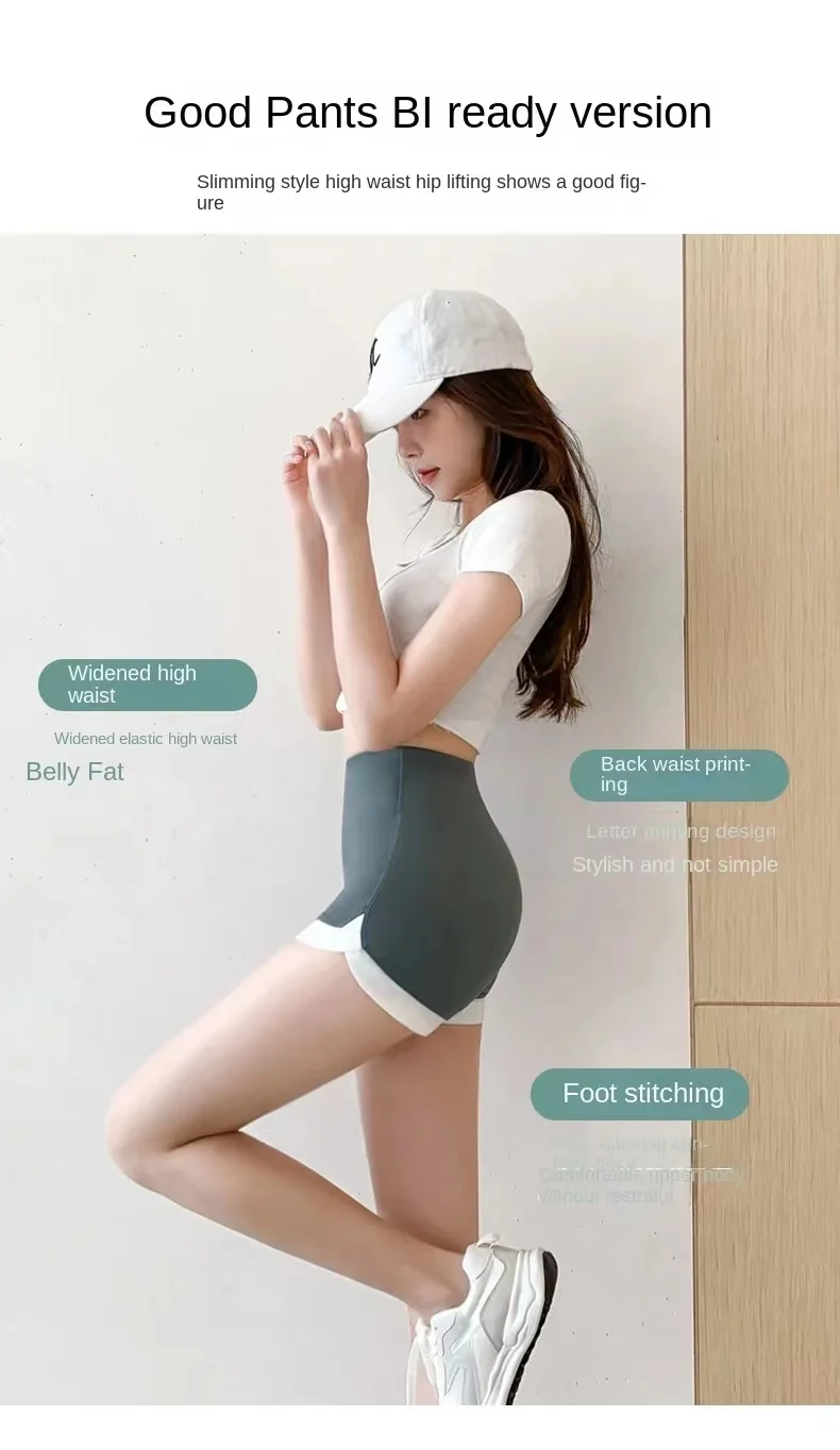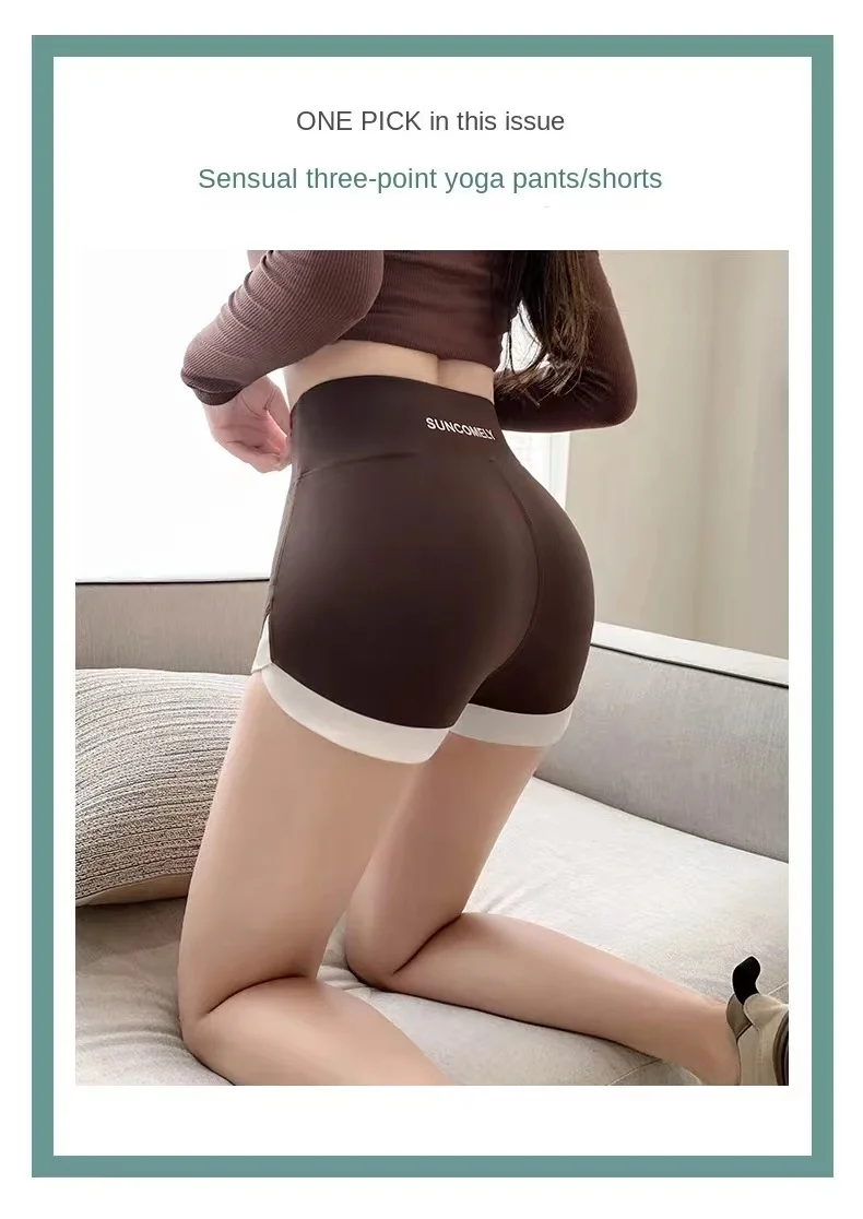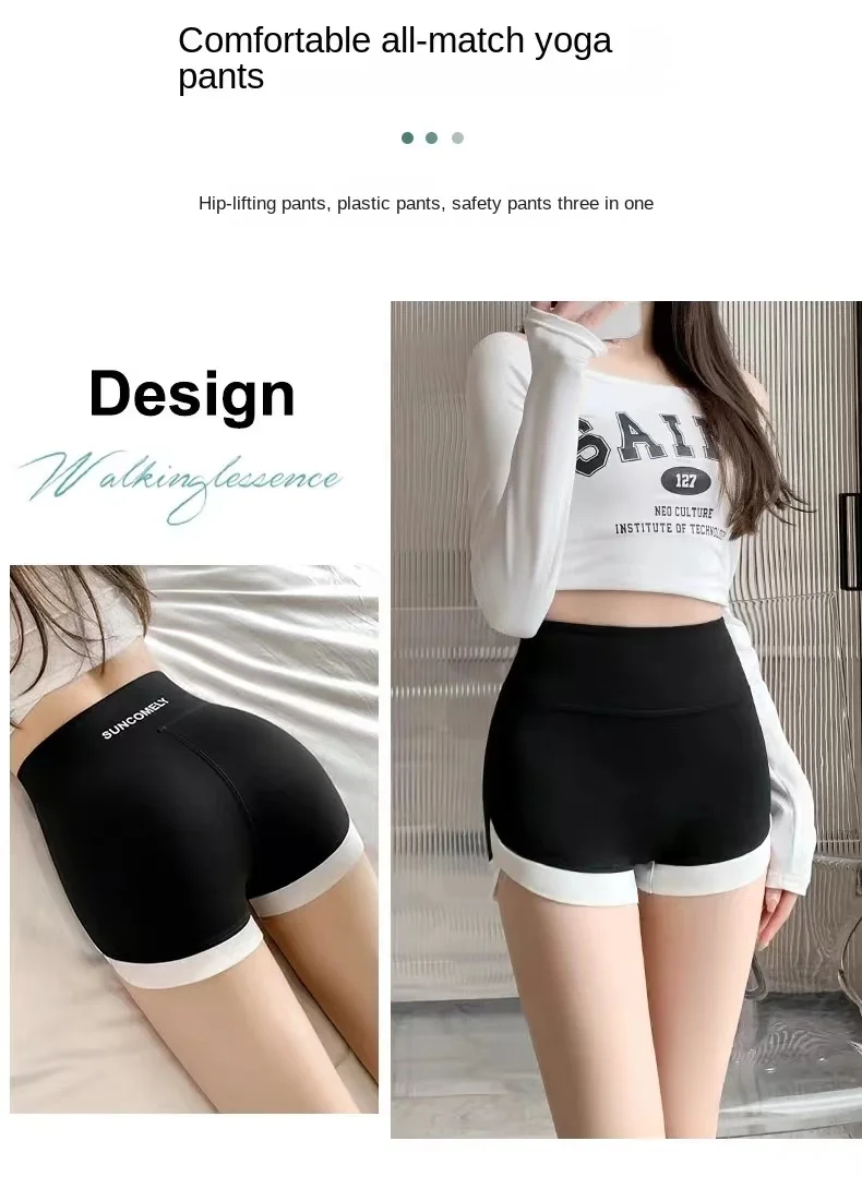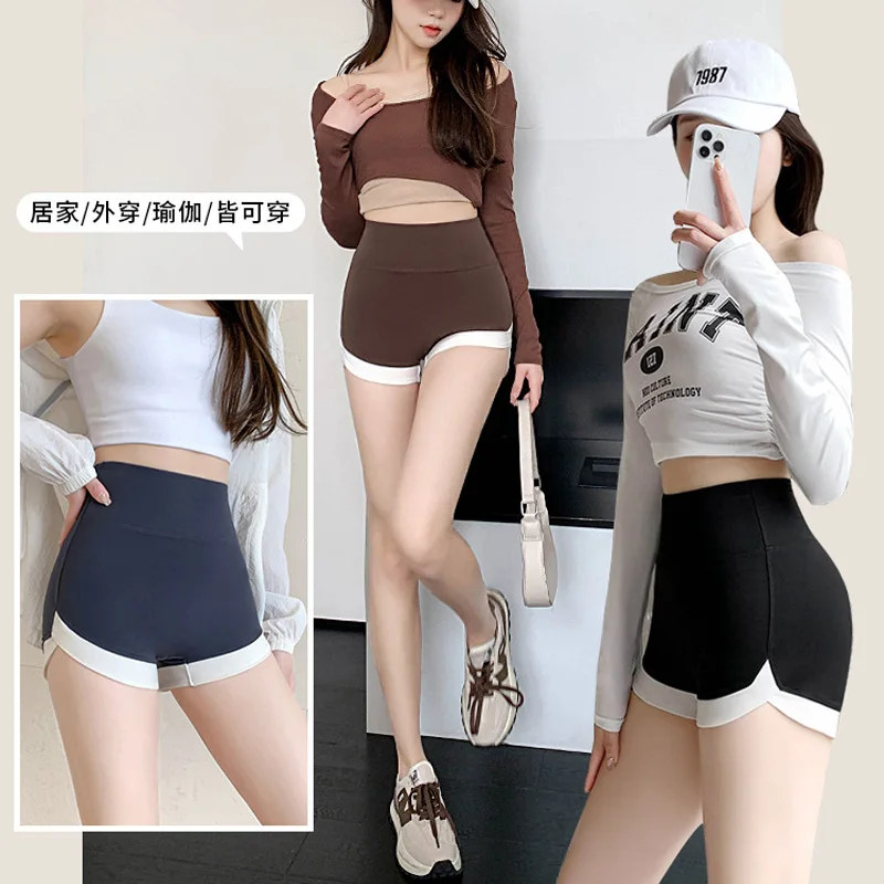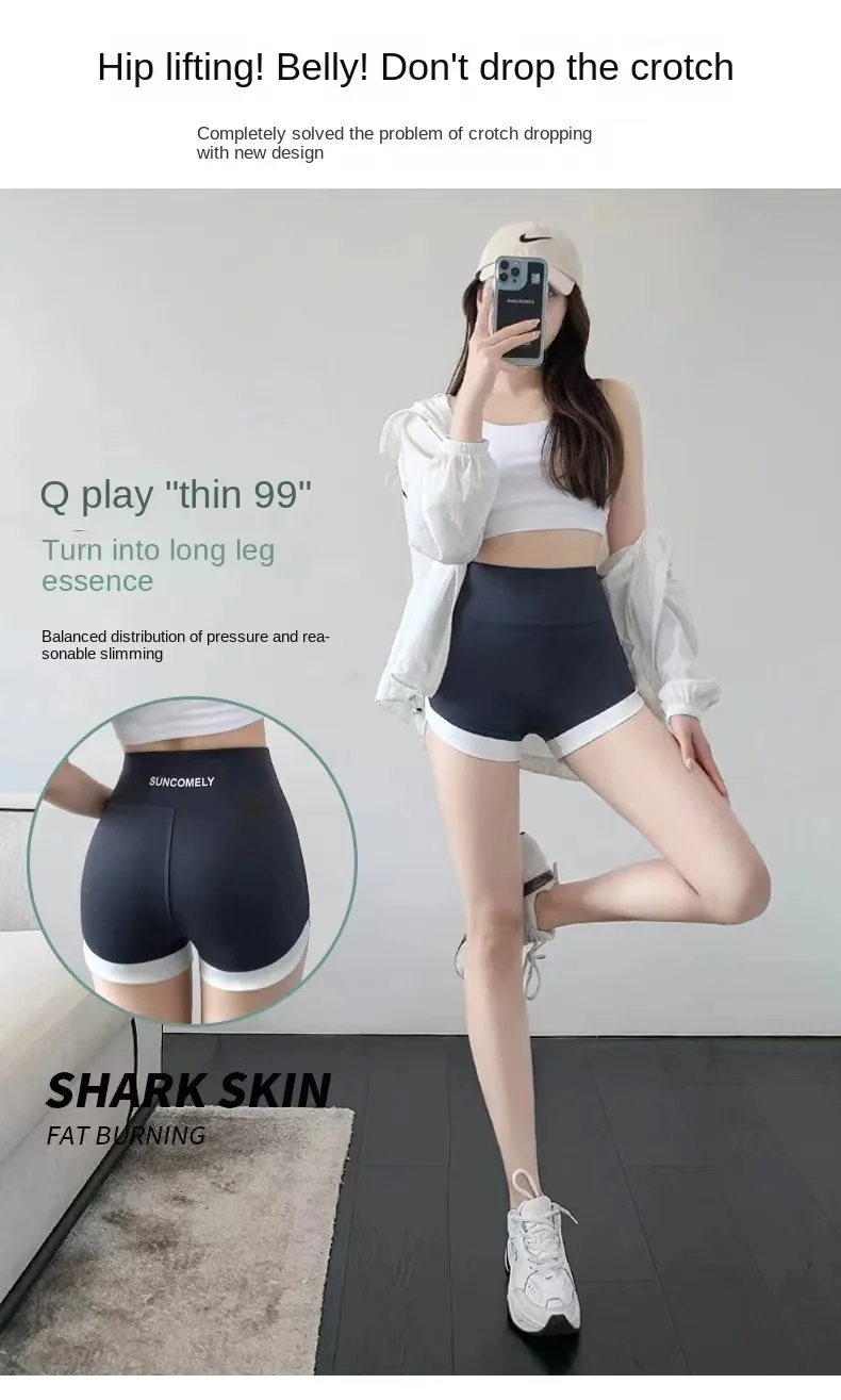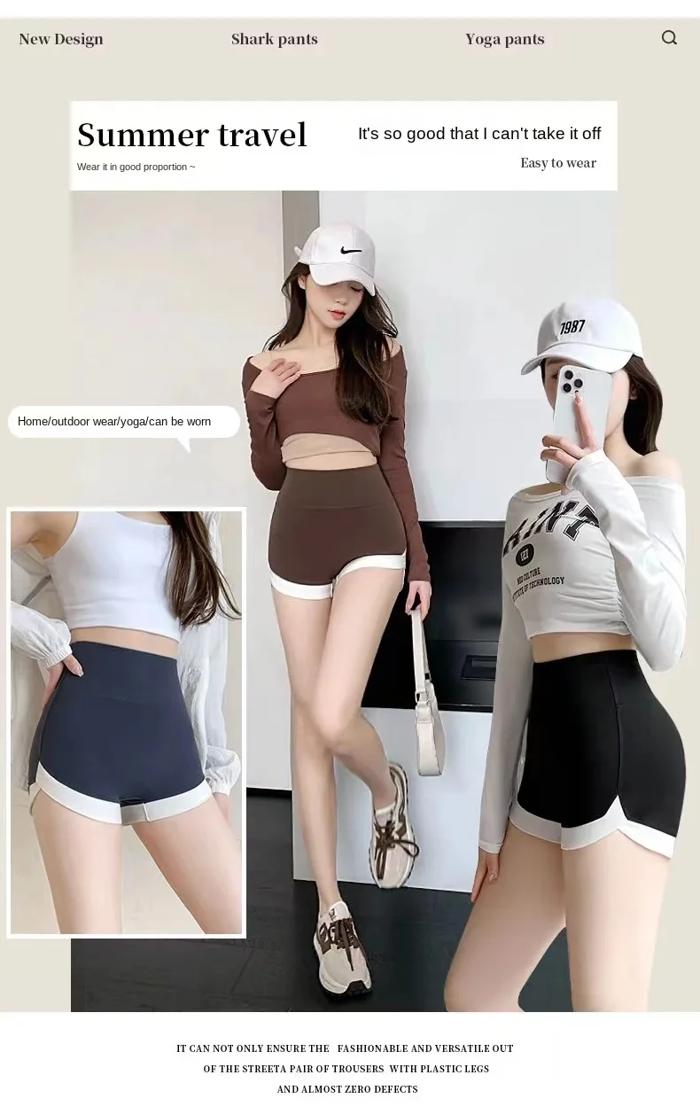 Summer High Waist Contrast Shark Pants Tight Hip Lift Yoga Pants Sports Shorts