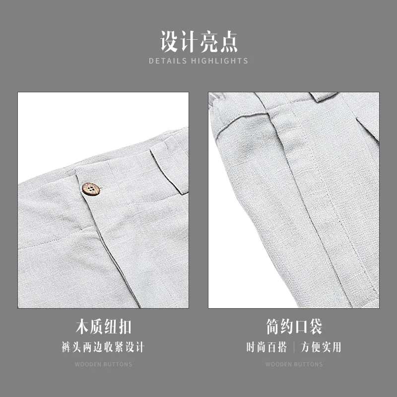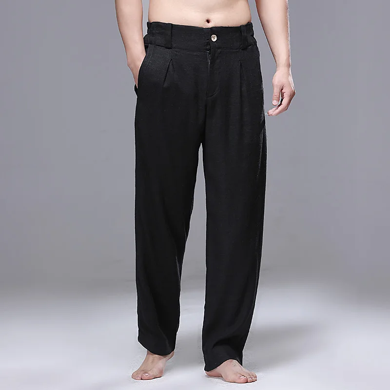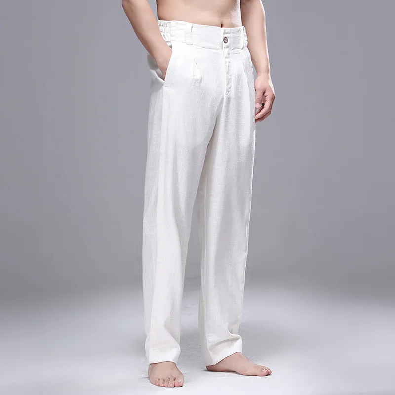 Summer Men Linen Pants Men Stretch Waist Straight Breathable Casual Trousers Man Chinese Traditional Harajuku Wide Leg Pant
