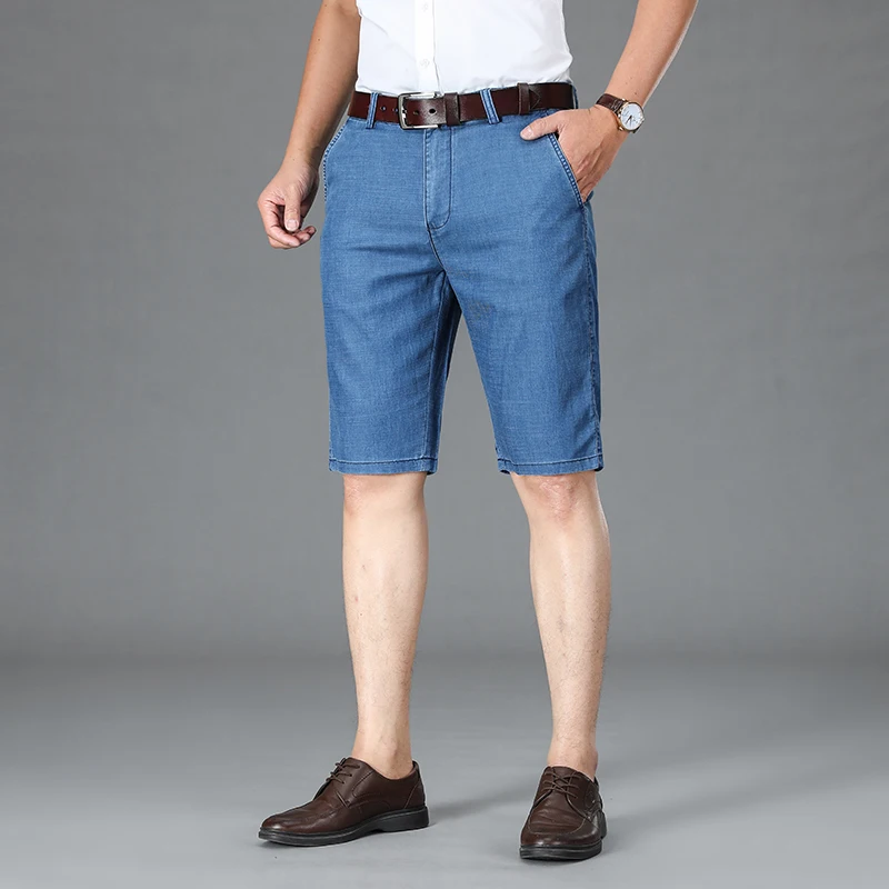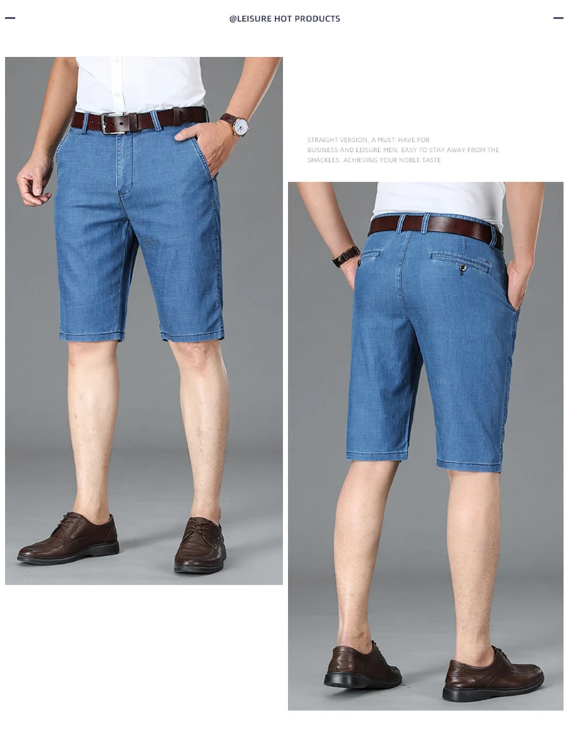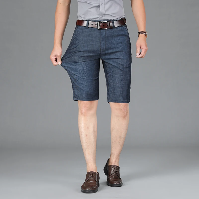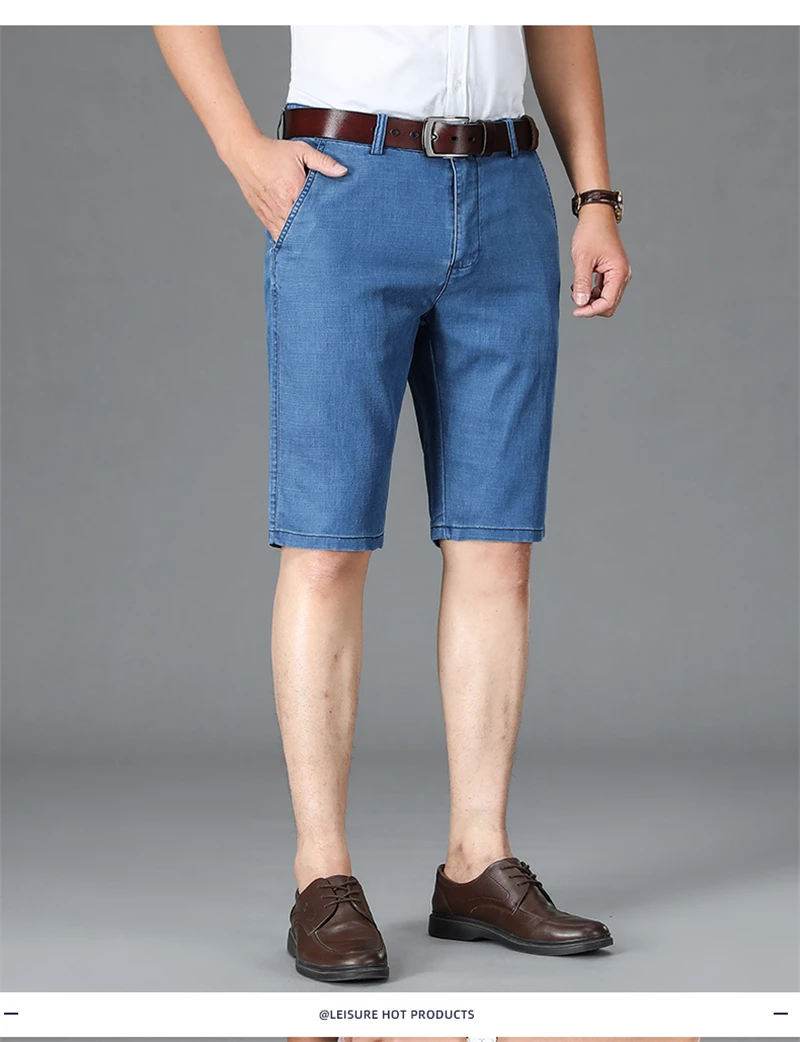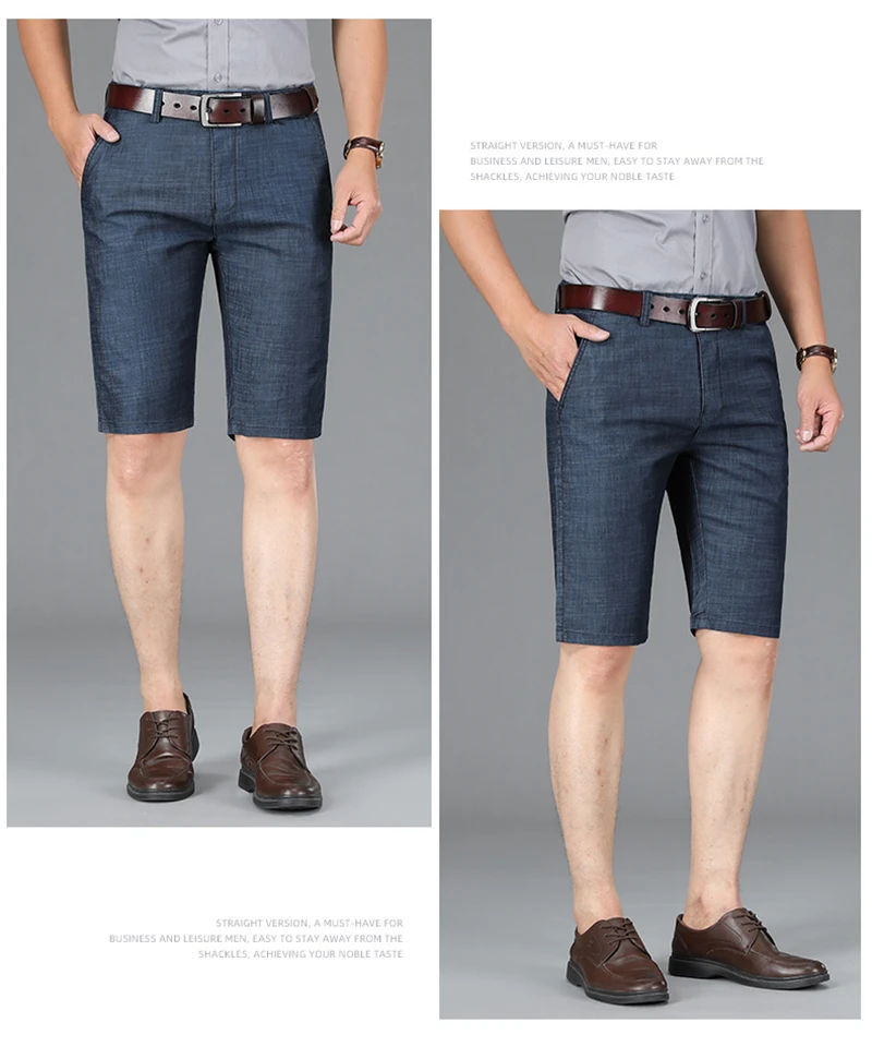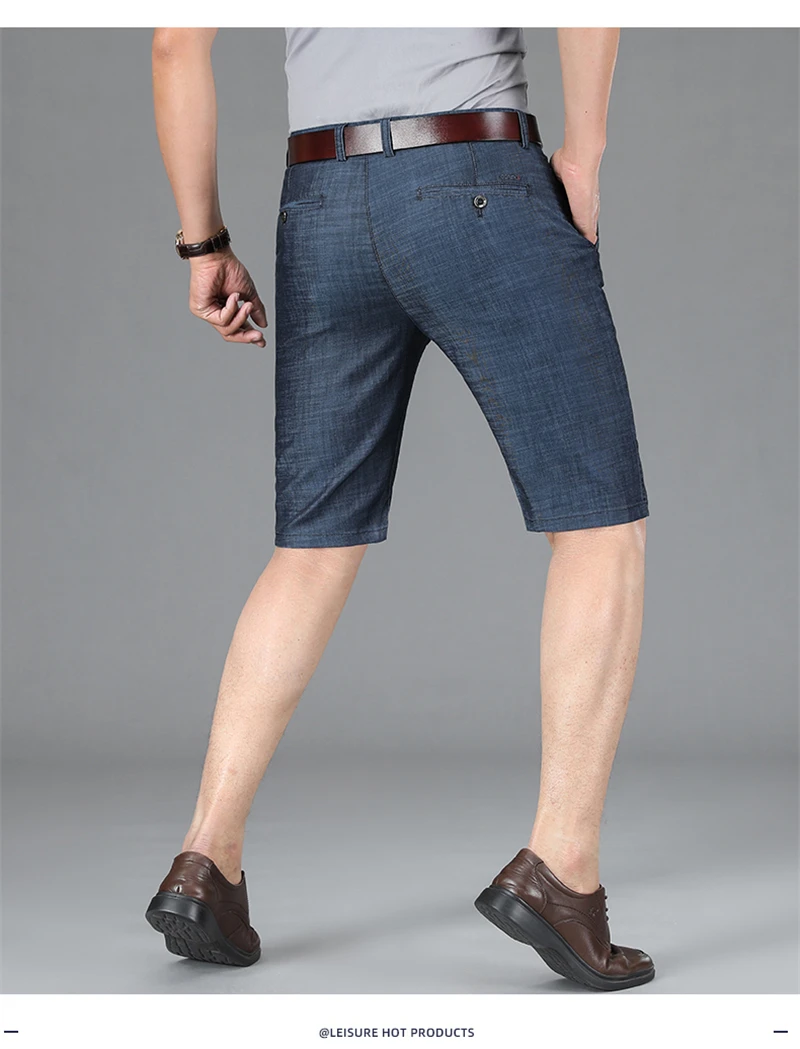 Summer Men’s Lyocell fabric High Quality Short Jeans Business Classic Elastic Denim Shorts Male Brand Clothes Large size 40 42