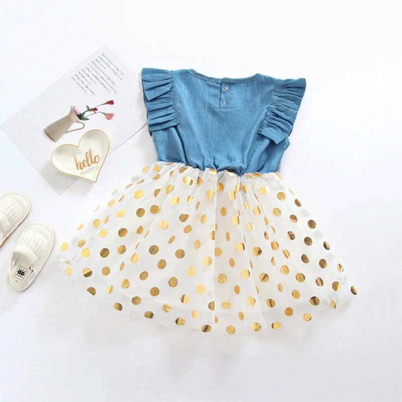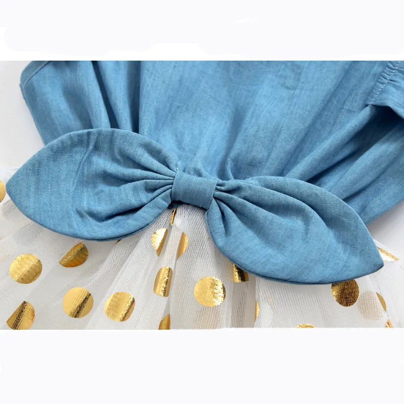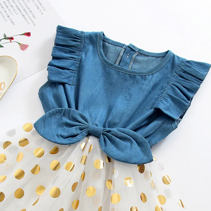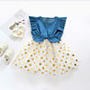 Summer New Fashion Toddler Baby Girls Sleeveless Dot Print Denim Bow Dress Tulle Dresses Clothes Wholesale Free Ship Z6