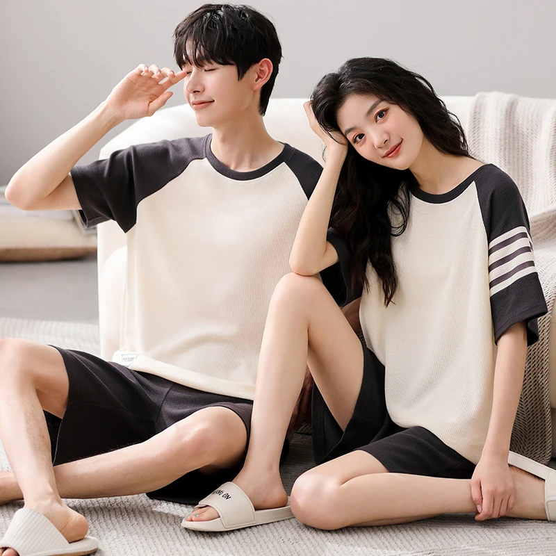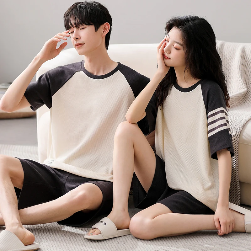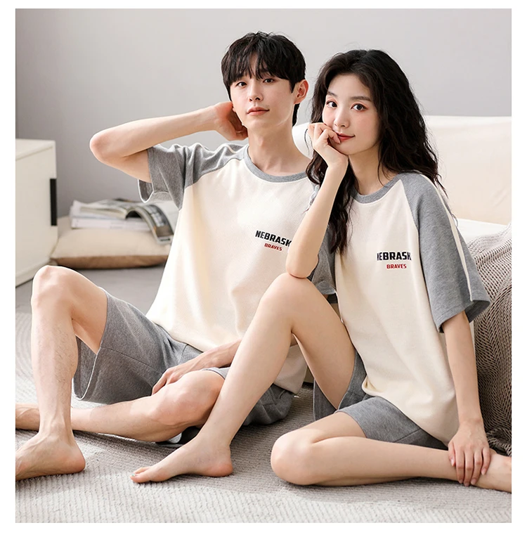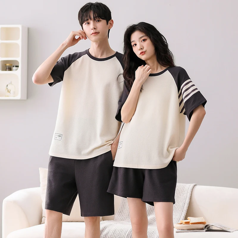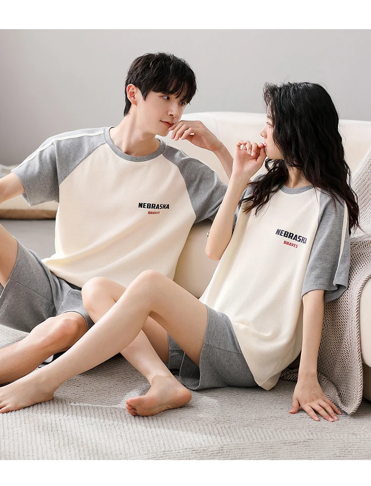 Summer Pajamas Set Lovers 100%Cotton Short Sleeve Sleepwear Casual Women Men Pijamas Home Clothes