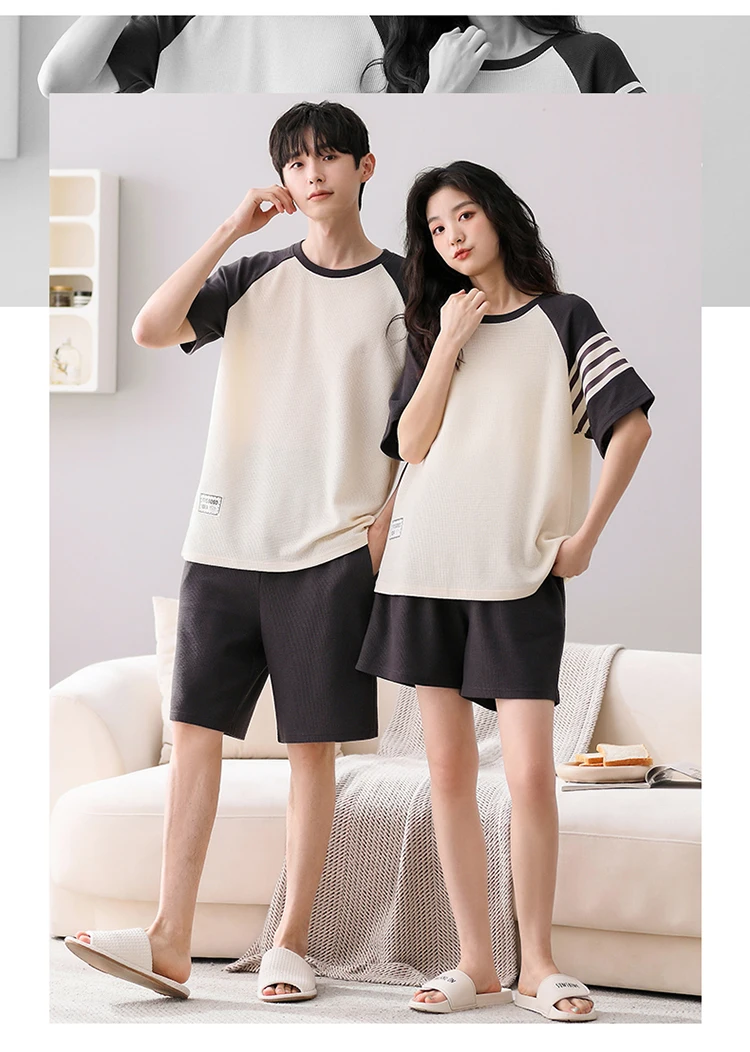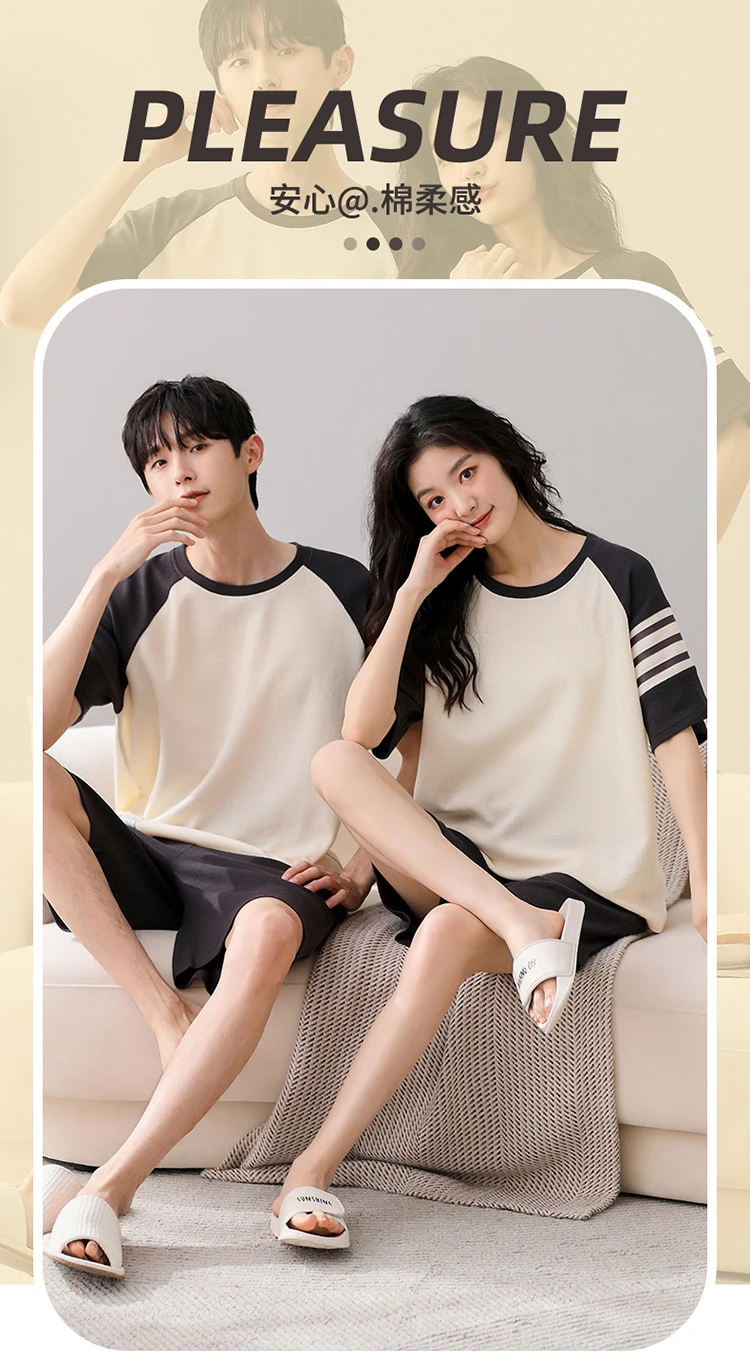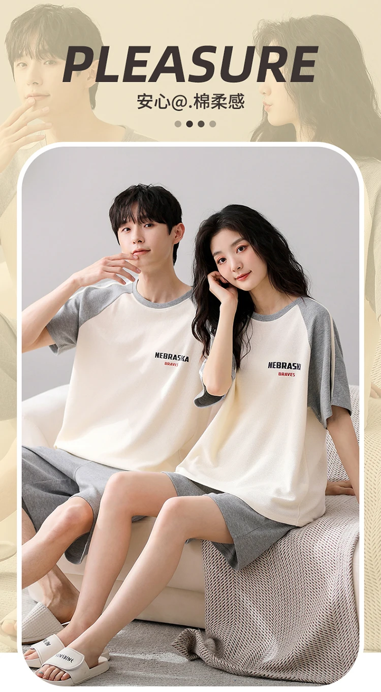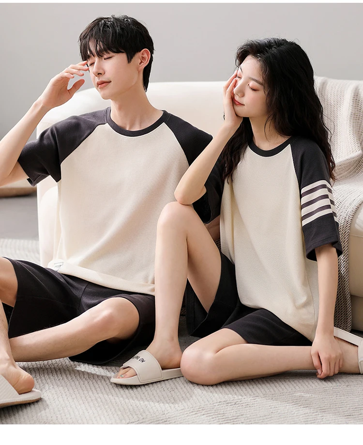 Summer Pajamas Set Lovers 100%Cotton Short Sleeve Sleepwear Casual Women Men Pijamas Home Clothes