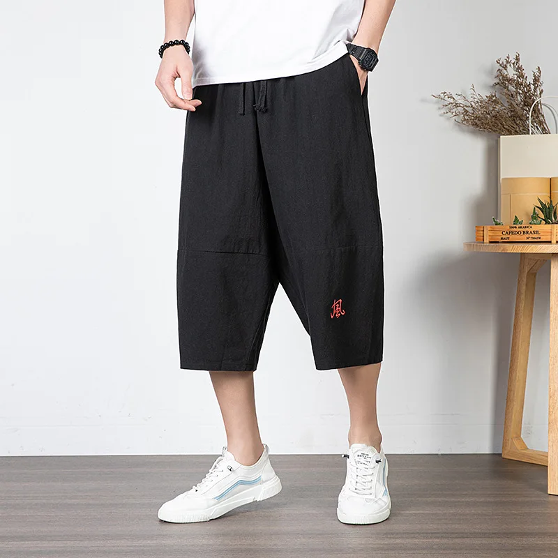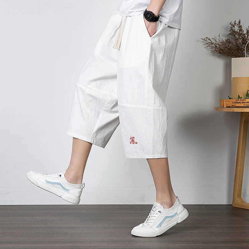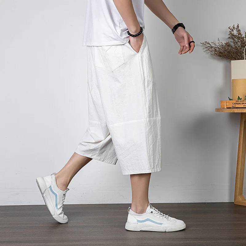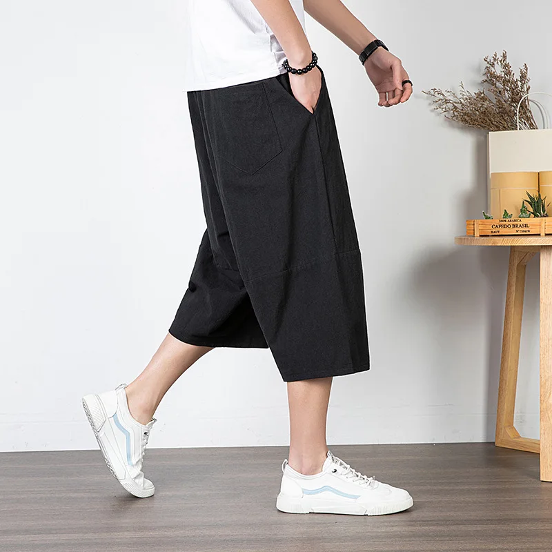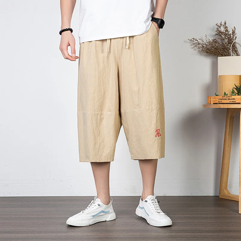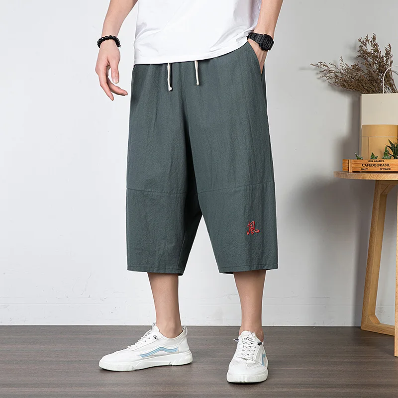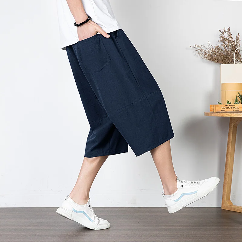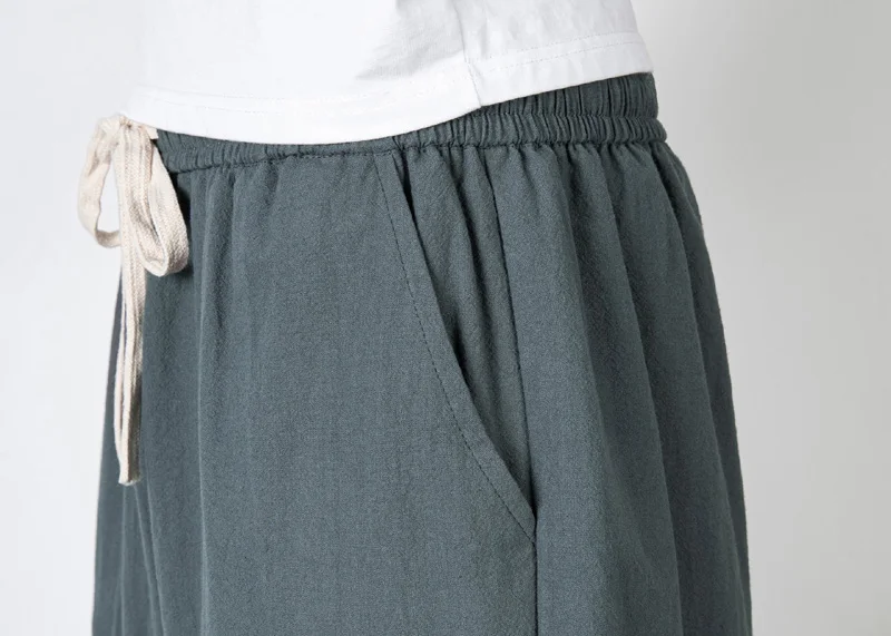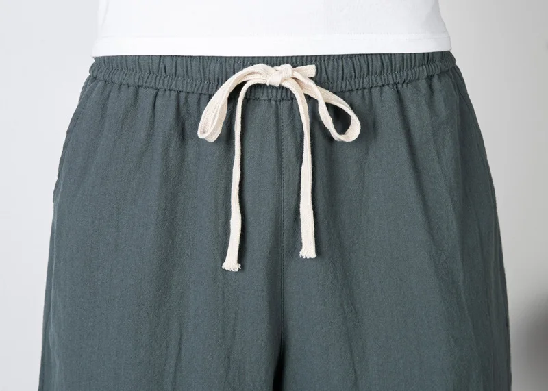 Summer plus men casual home Pants cotton linen Chinese style trousers large size 8XL wide leg Comfortable straight Pant blue