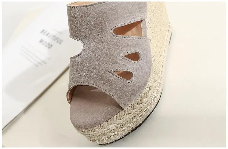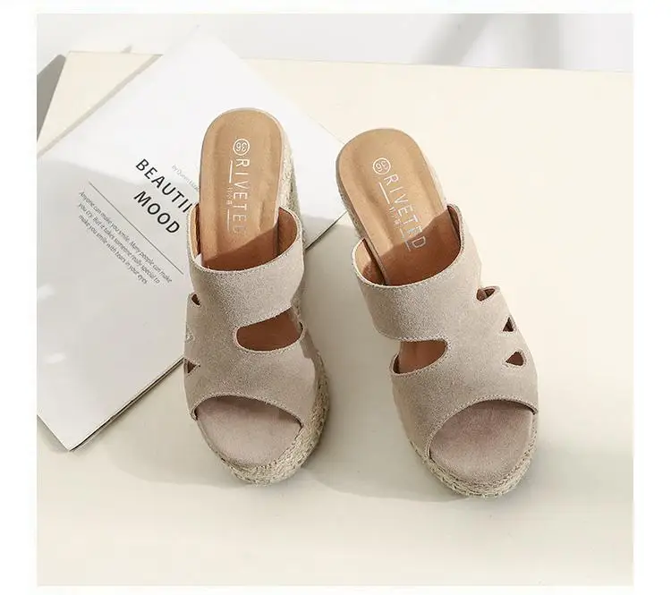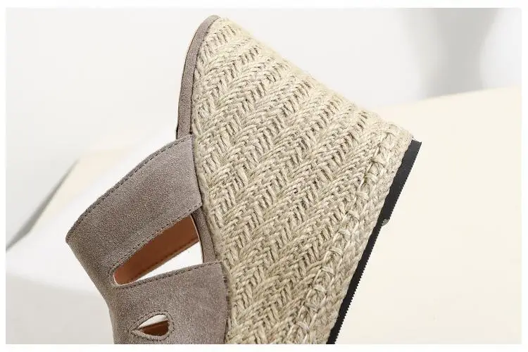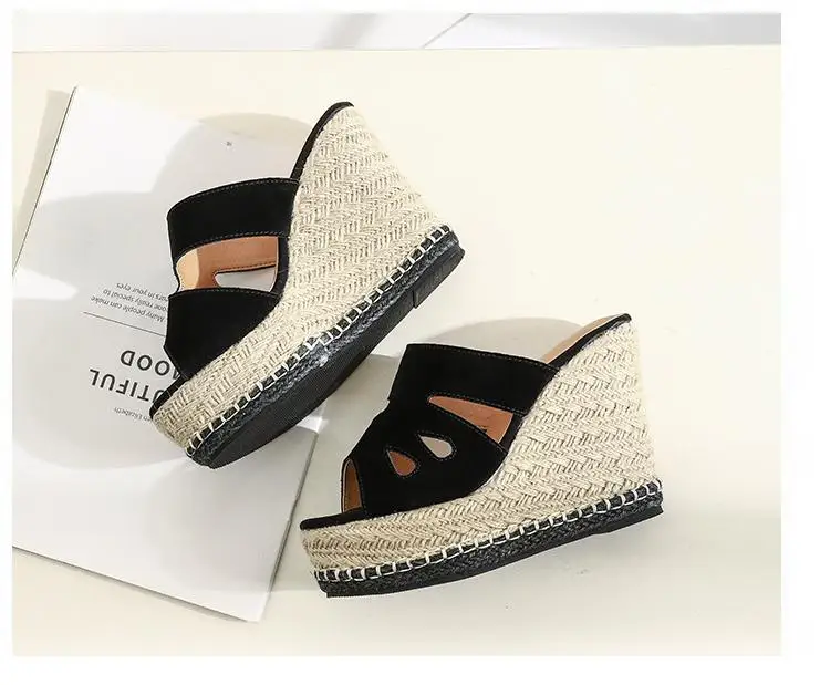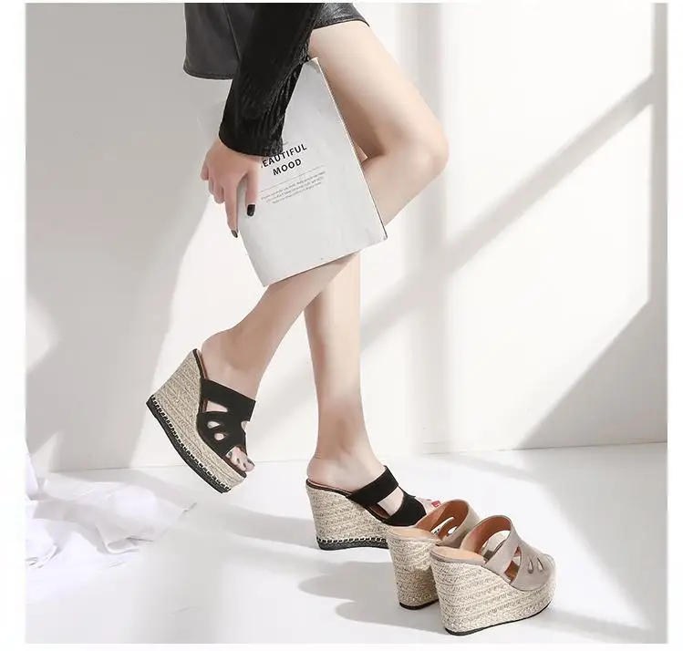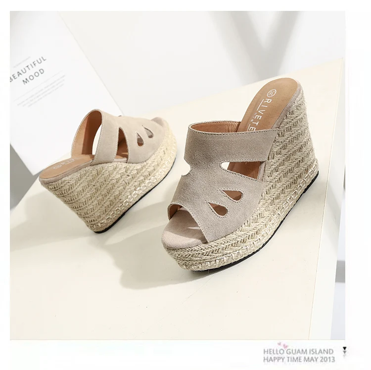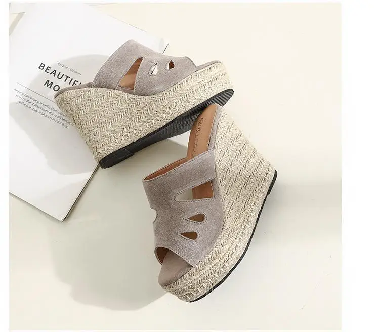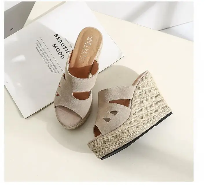 Summer Sandals Women High Heel Platform Straw Heel Open Toe Women Sandals Wedges Platform Slides