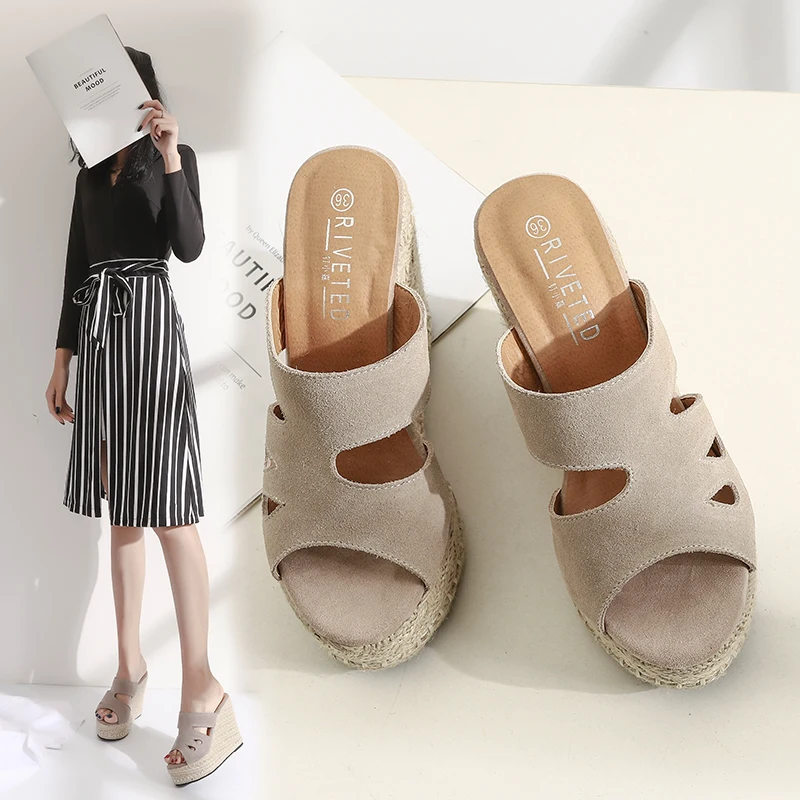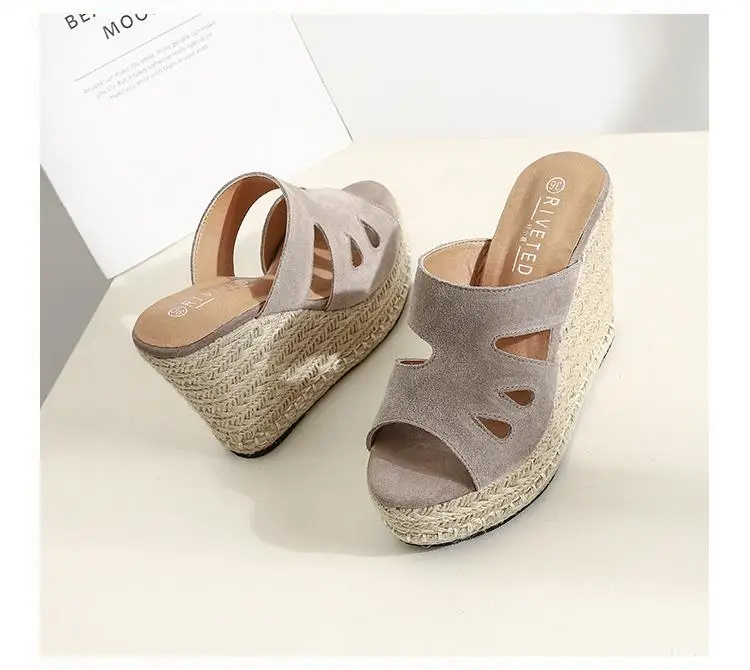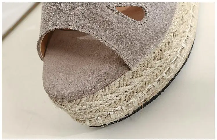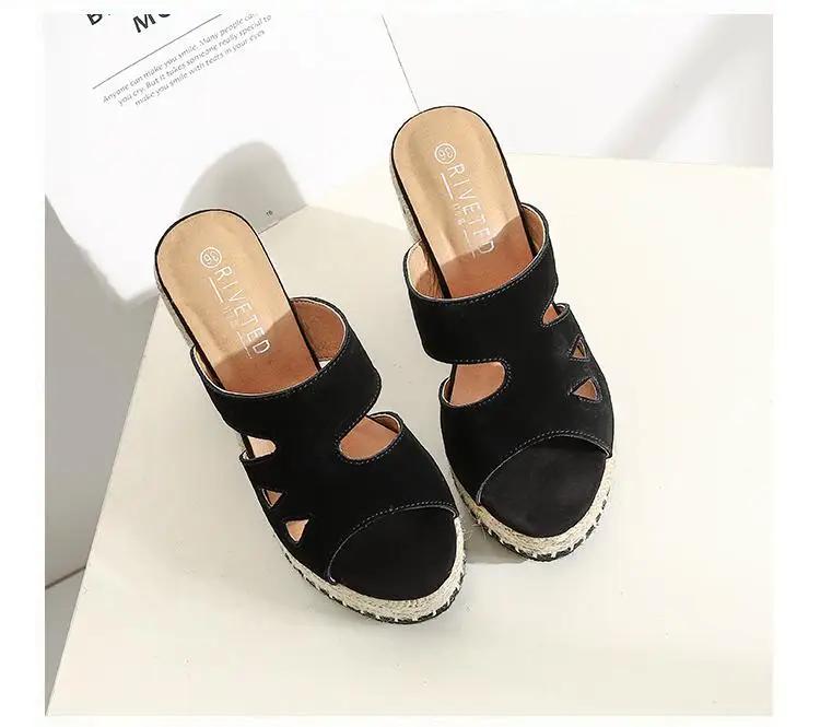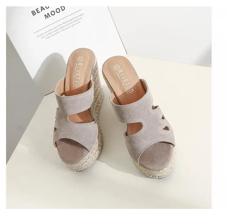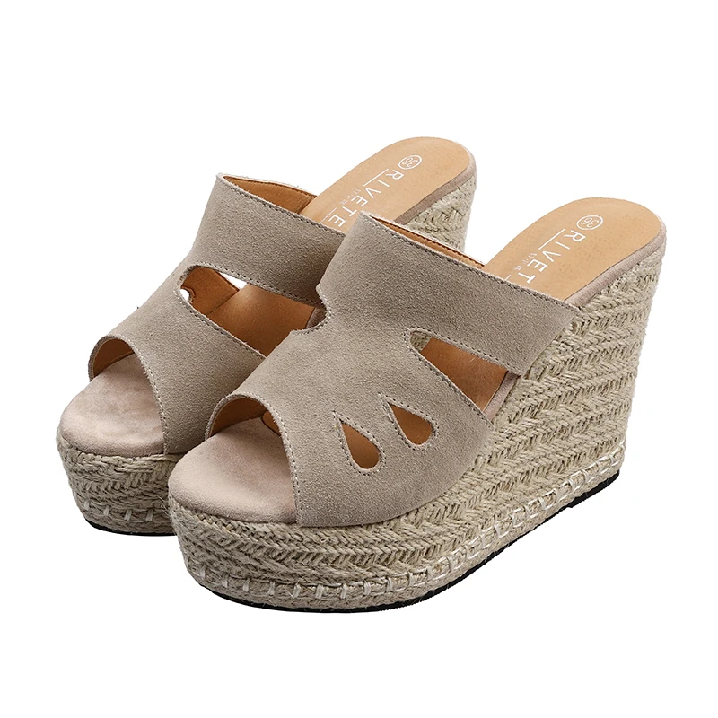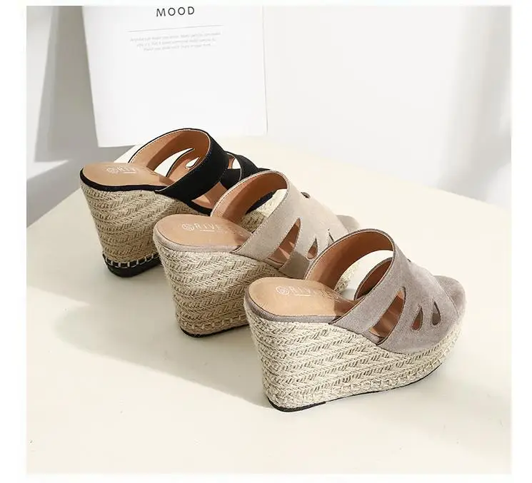 Summer Sandals Women High Heel Platform Straw Heel Open Toe Women Sandals Wedges Platform Slides