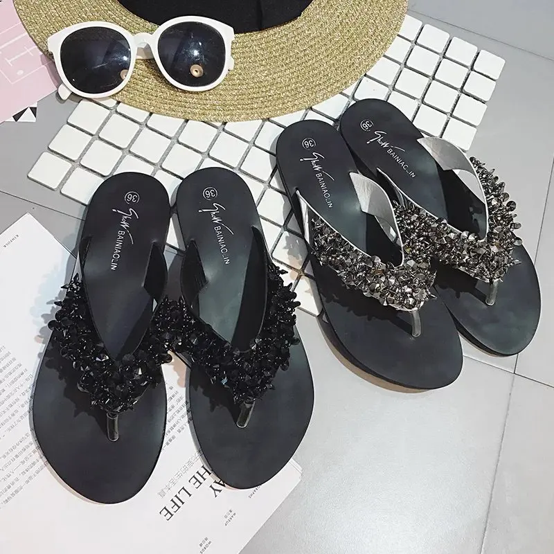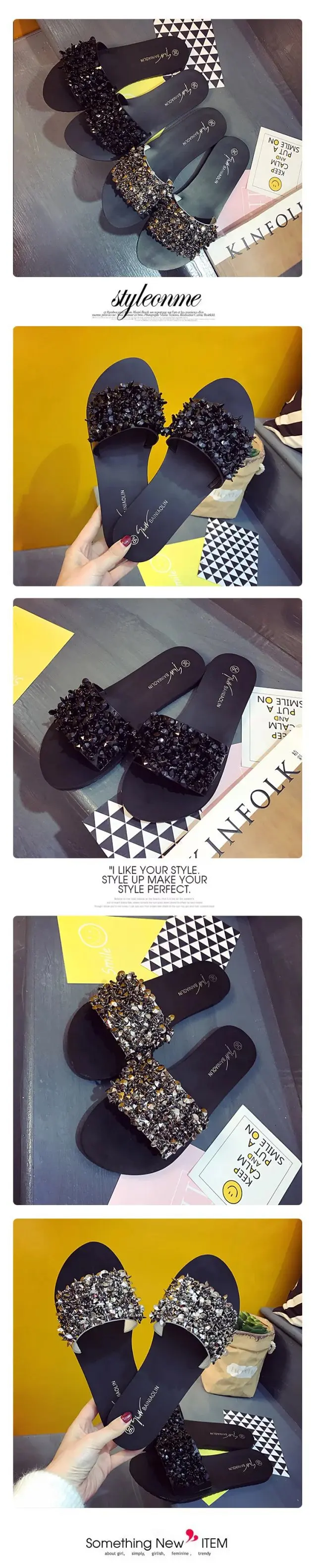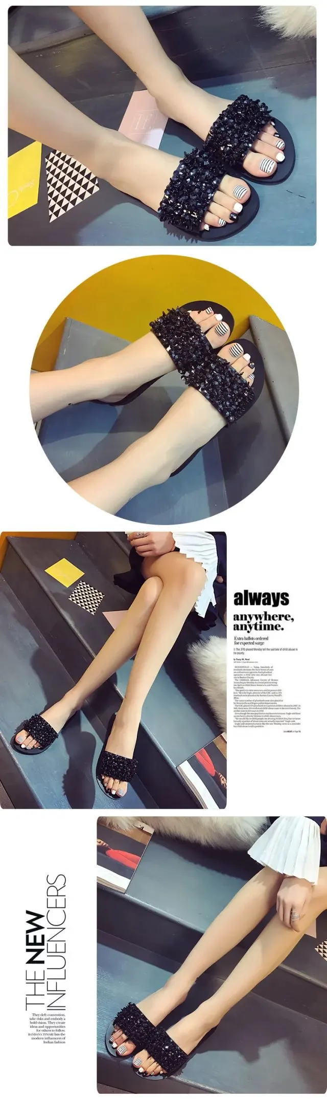 Summer Shoes Woman Rivet Glitter Designer Platform Sandals Women Bling Bling Flip Flops Black/Silver Beach Slippers