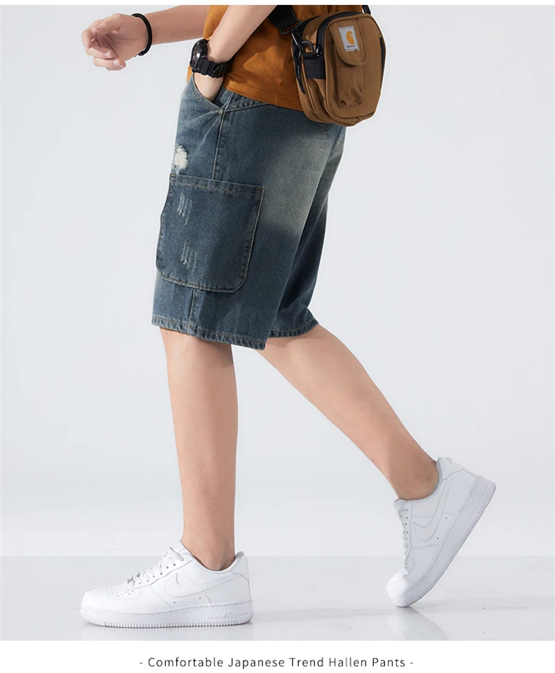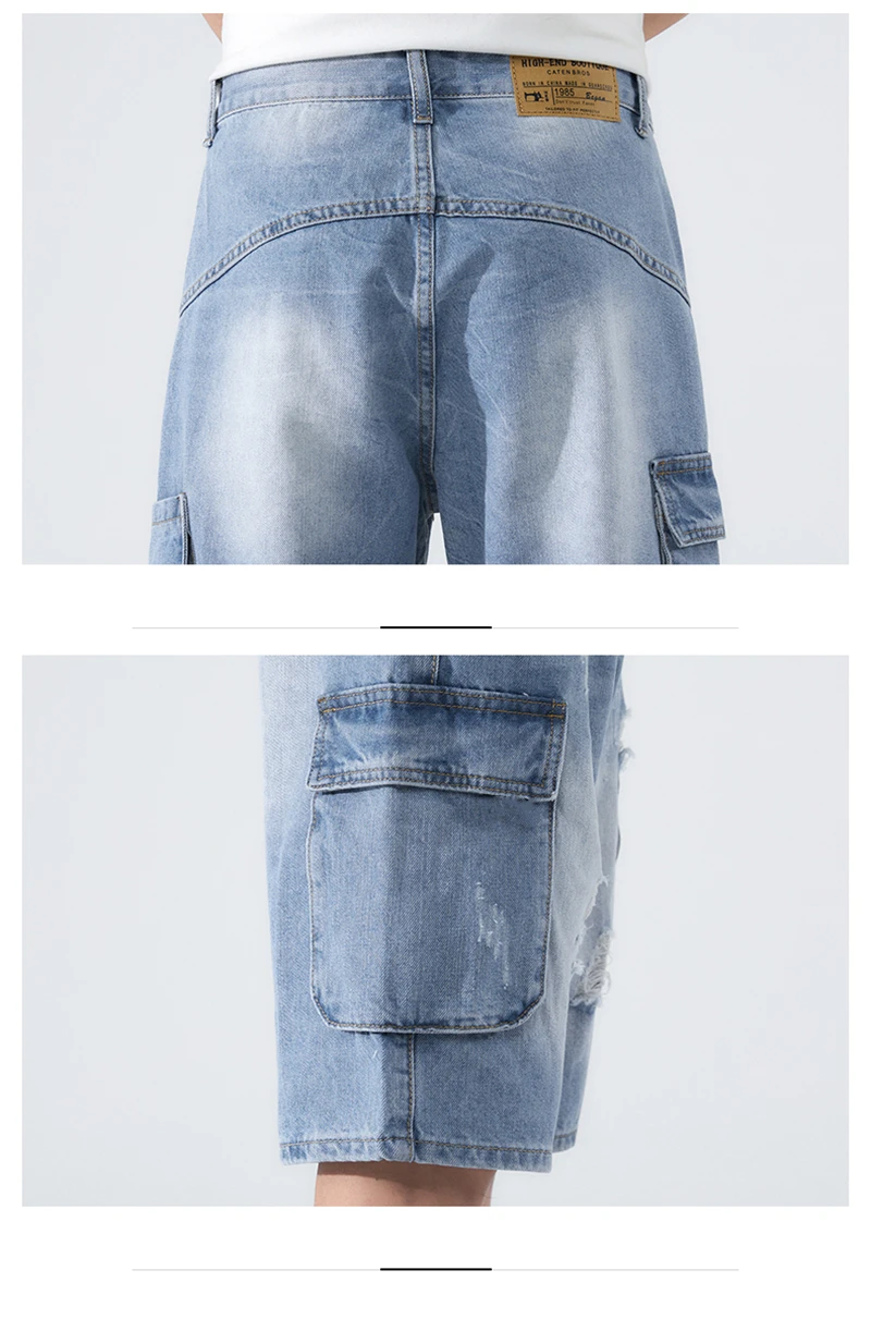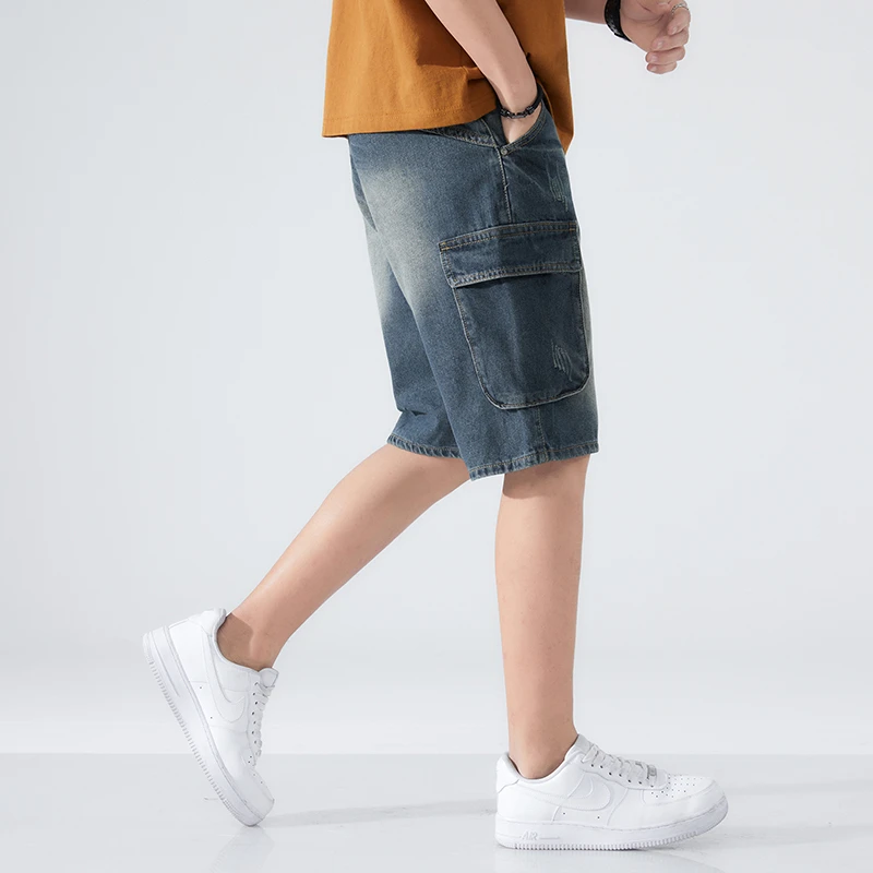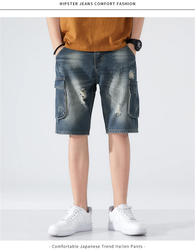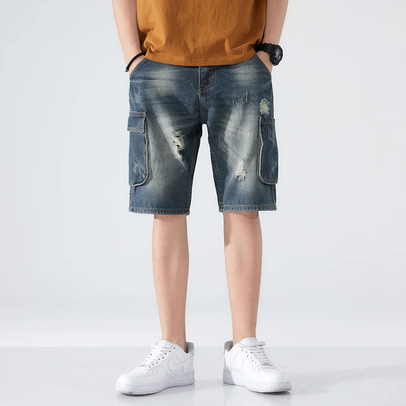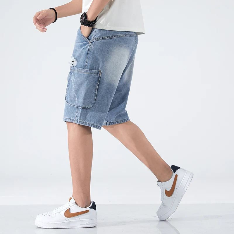 Summer Shorts Men Jeans Dark Blue Hip Hop Denim Shorts Side Pockets Desinger High Quality Loose Fit Distressed Oversize 42