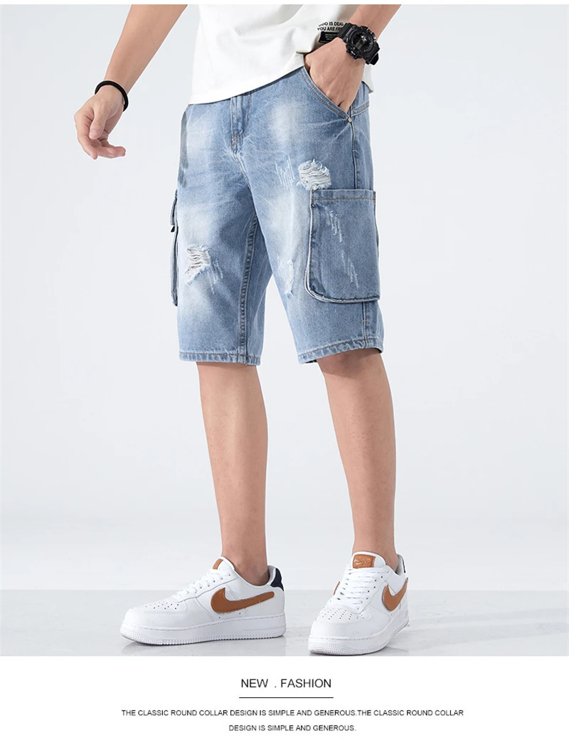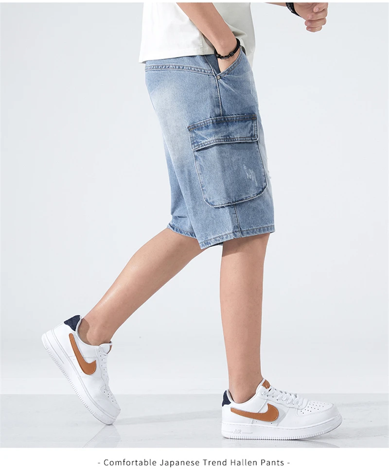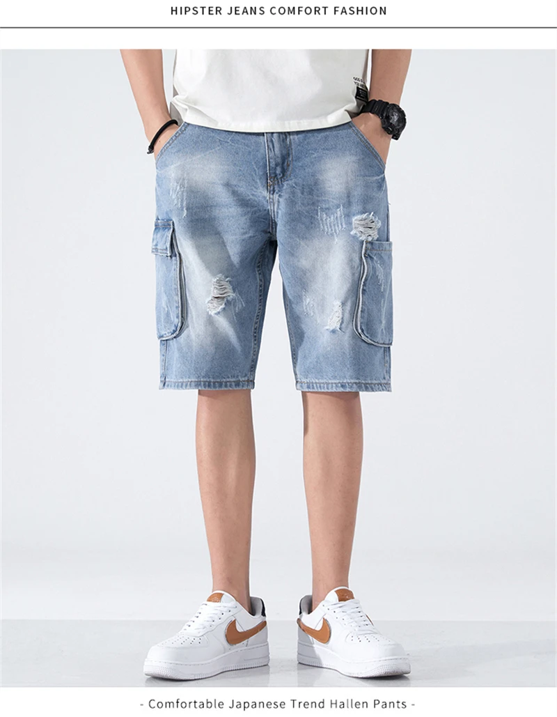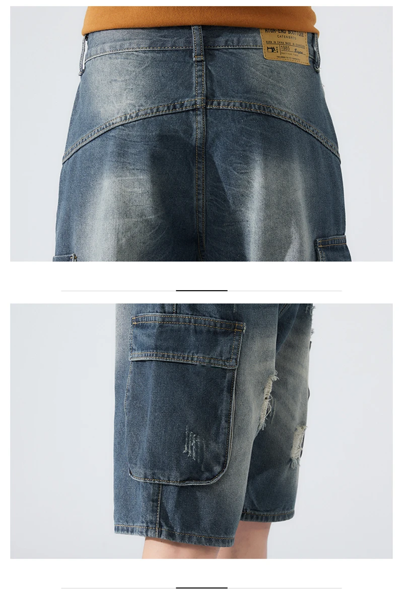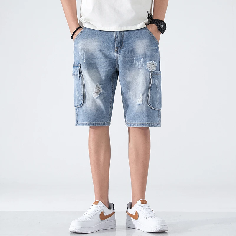 Summer Shorts Men Jeans Dark Blue Hip Hop Denim Shorts Side Pockets Desinger High Quality Loose Fit Distressed Oversize 42