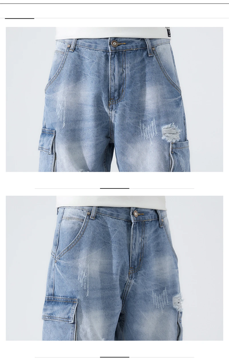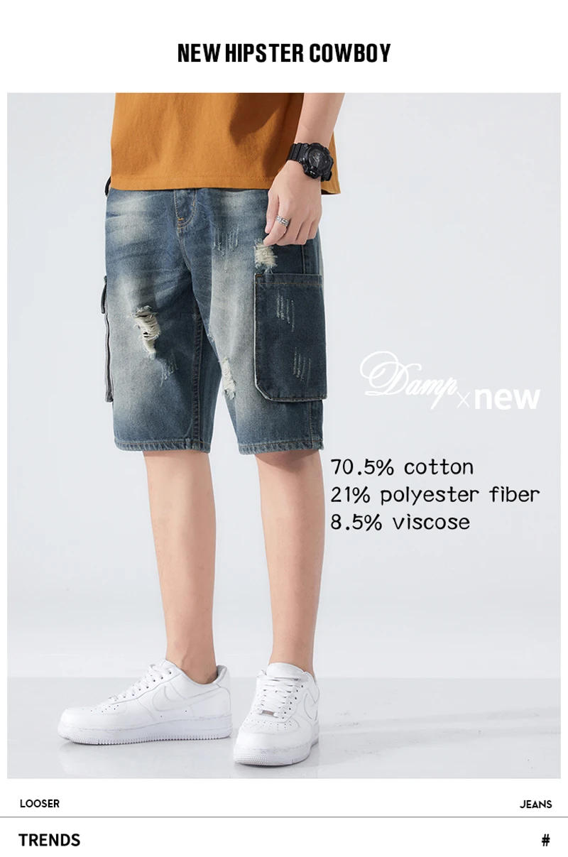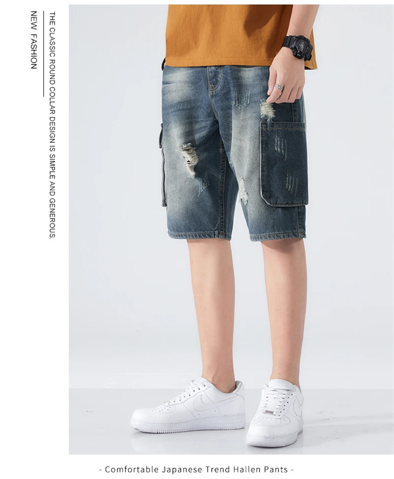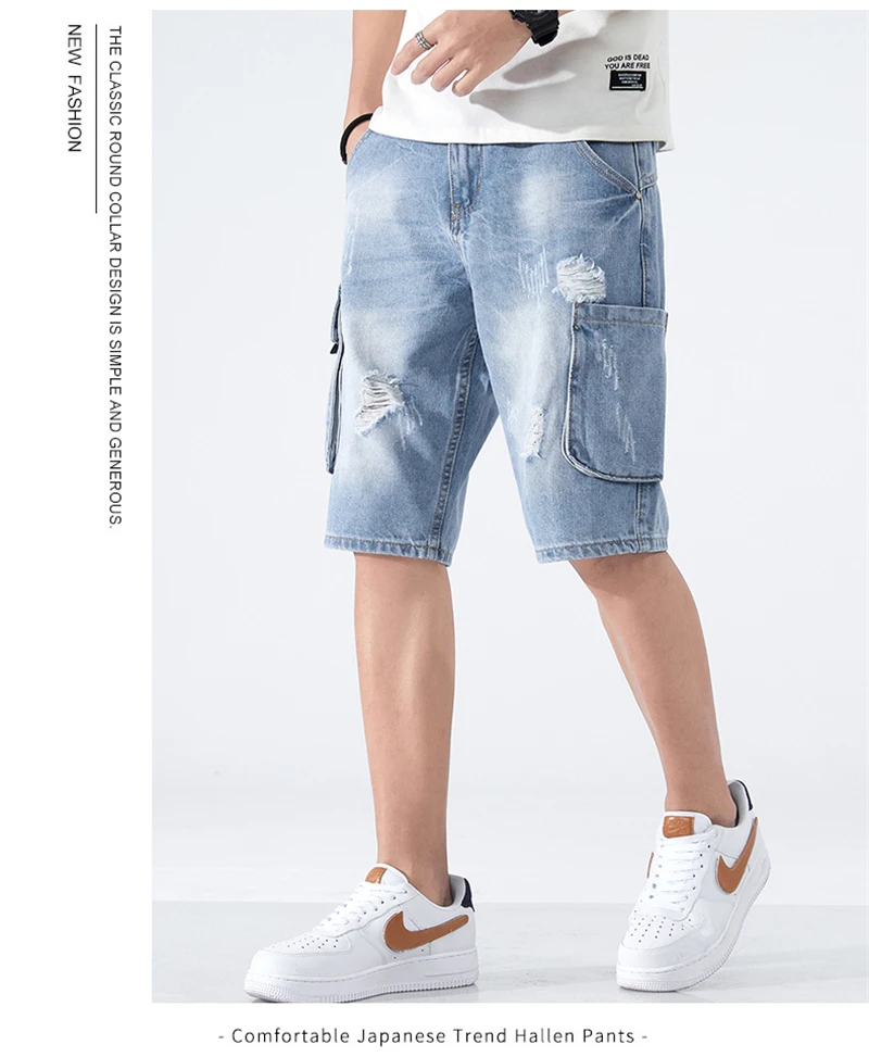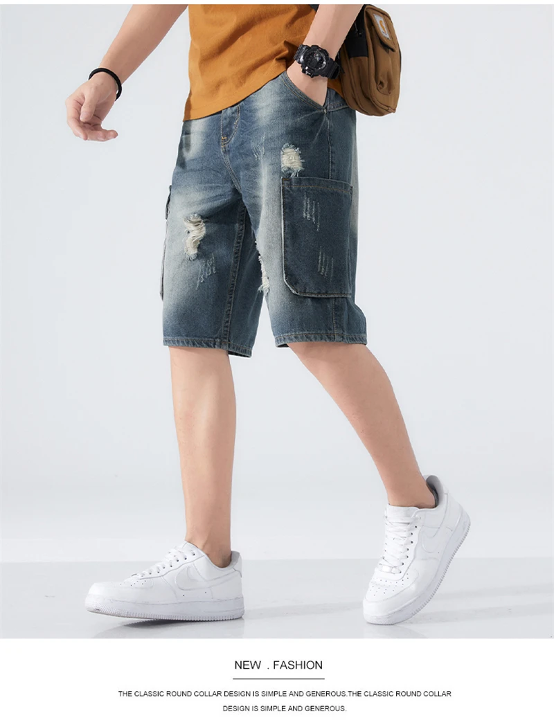 Summer Shorts Men Jeans Dark Blue Hip Hop Denim Shorts Side Pockets Desinger High Quality Loose Fit Distressed Oversize 42