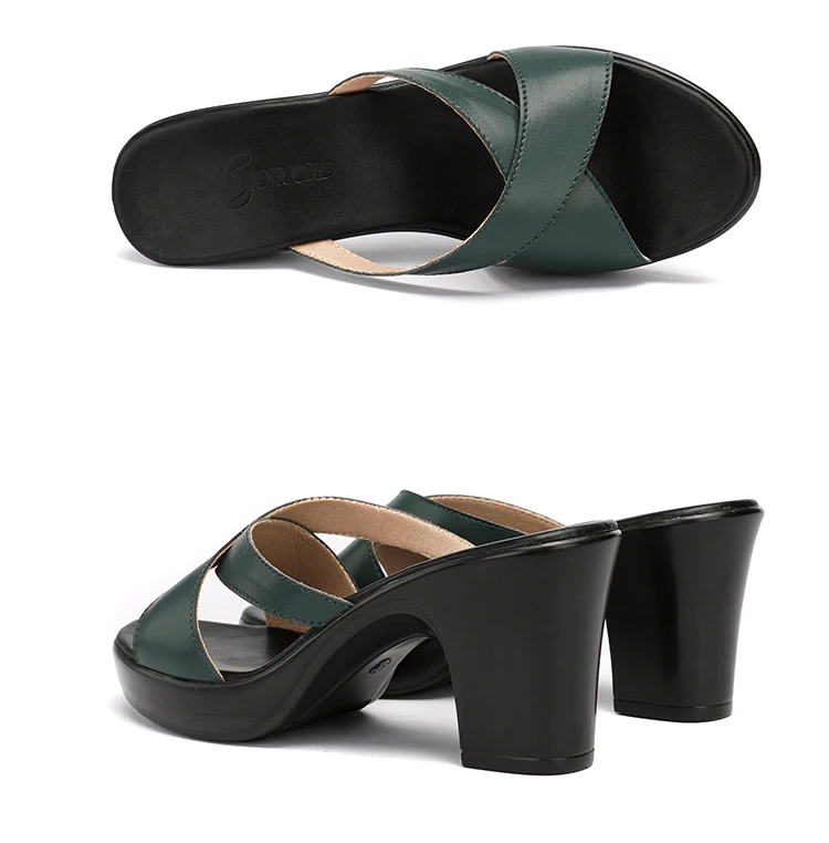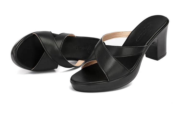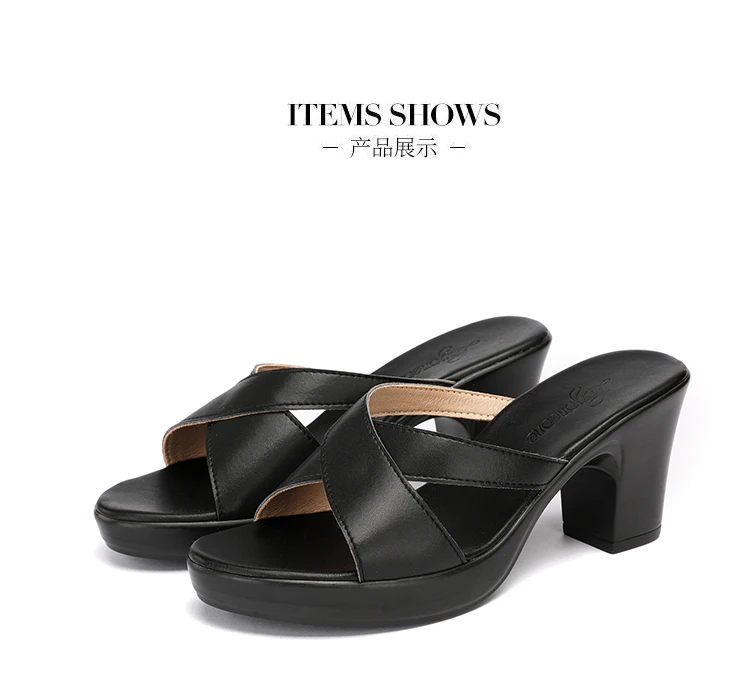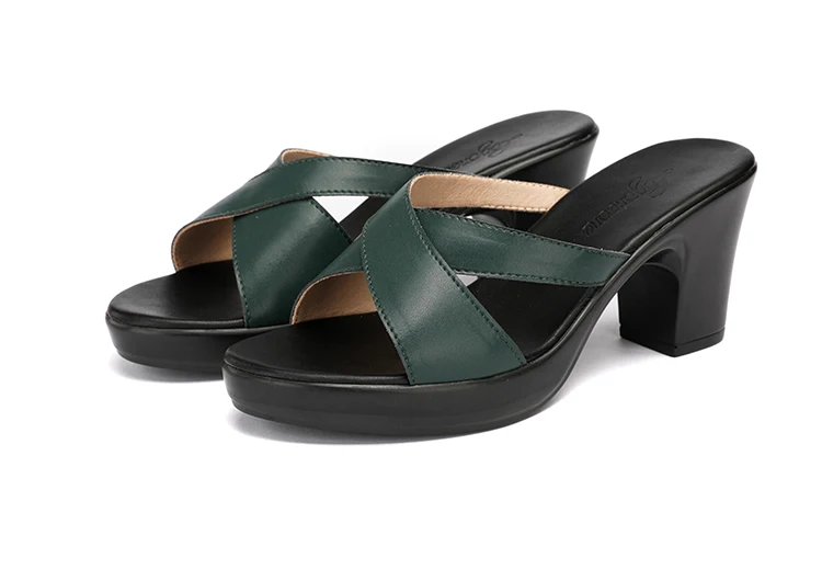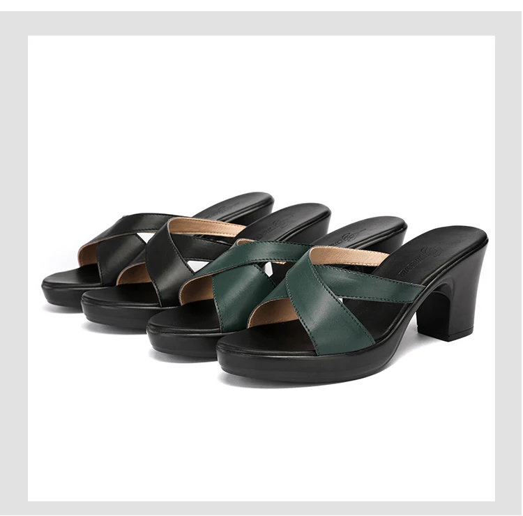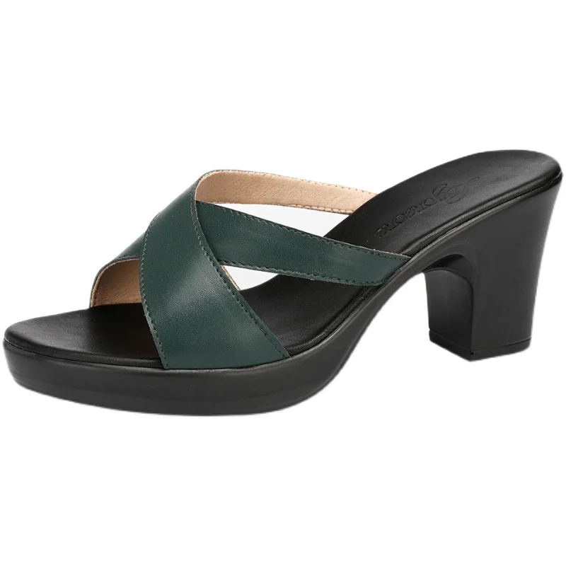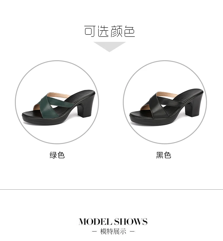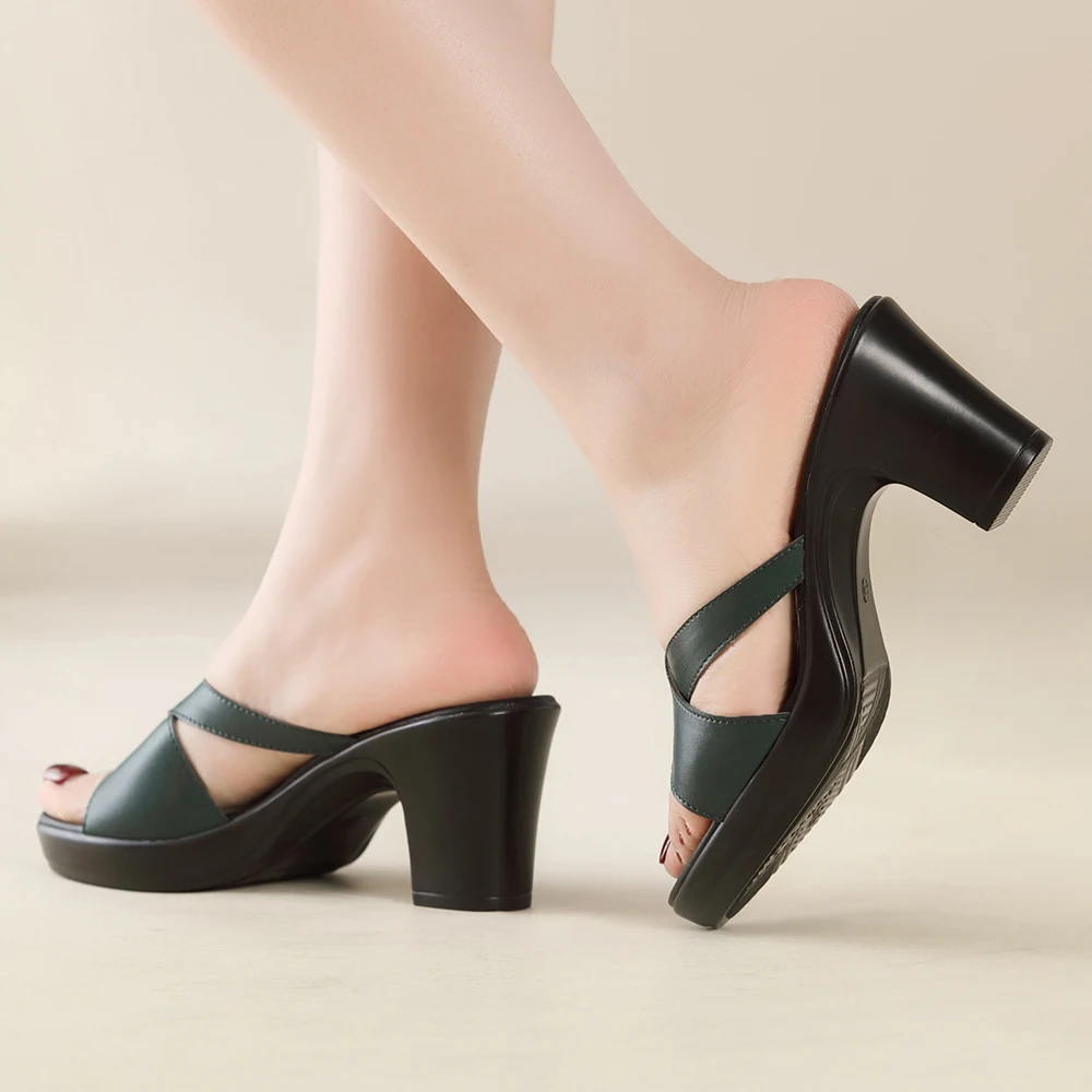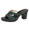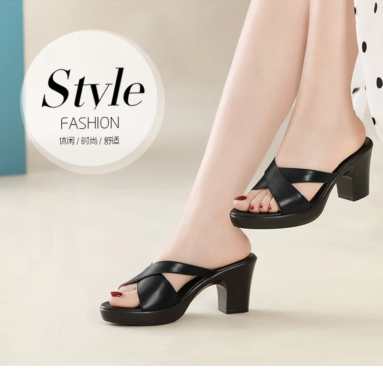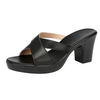 Summer Slippers Outside Women High Heels Shoes Female Waterproof Non-slip Sandles Leather Mother Shoes
