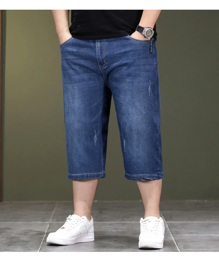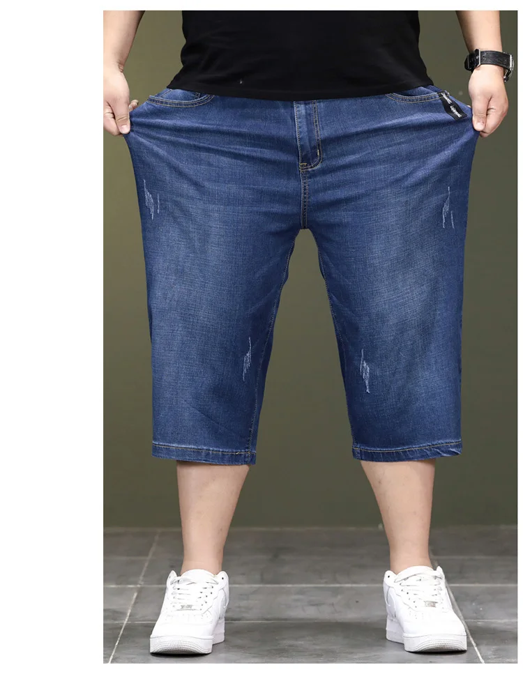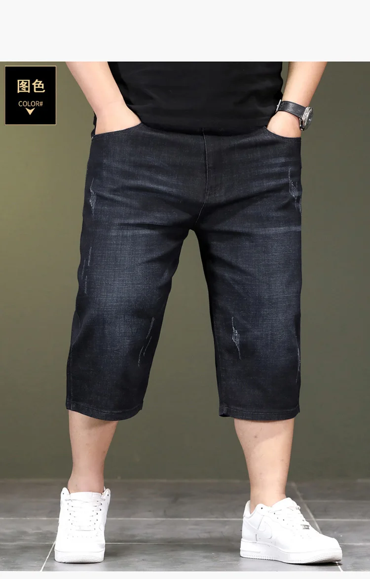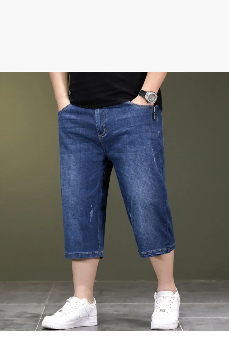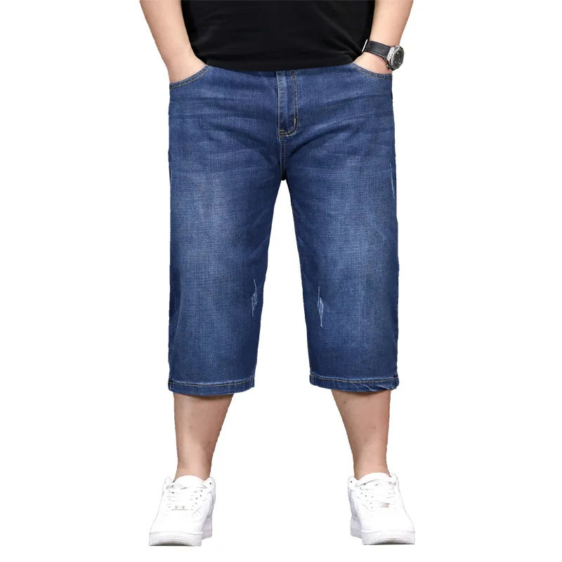 Summer thin large size High-waisted denim shorts deep crotch loose middle-aged man 7-point middle trousers Blue shorts 48 46
