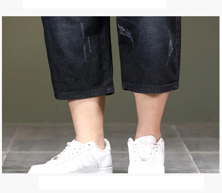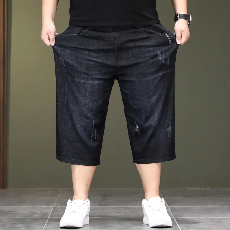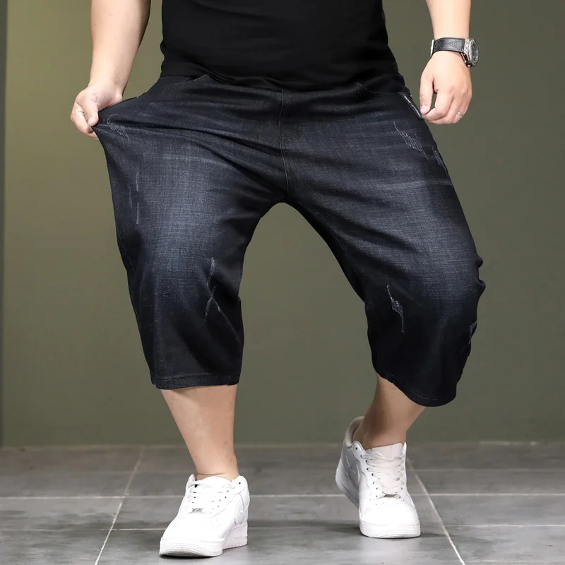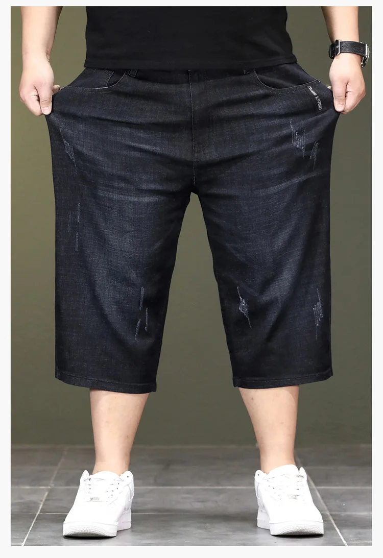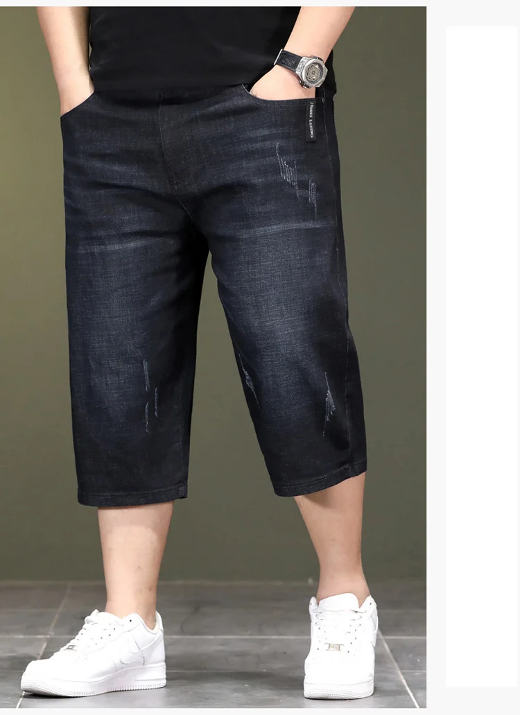 Summer thin large size High-waisted denim shorts deep crotch loose middle-aged man 7-point middle trousers Blue shorts 48 46
