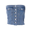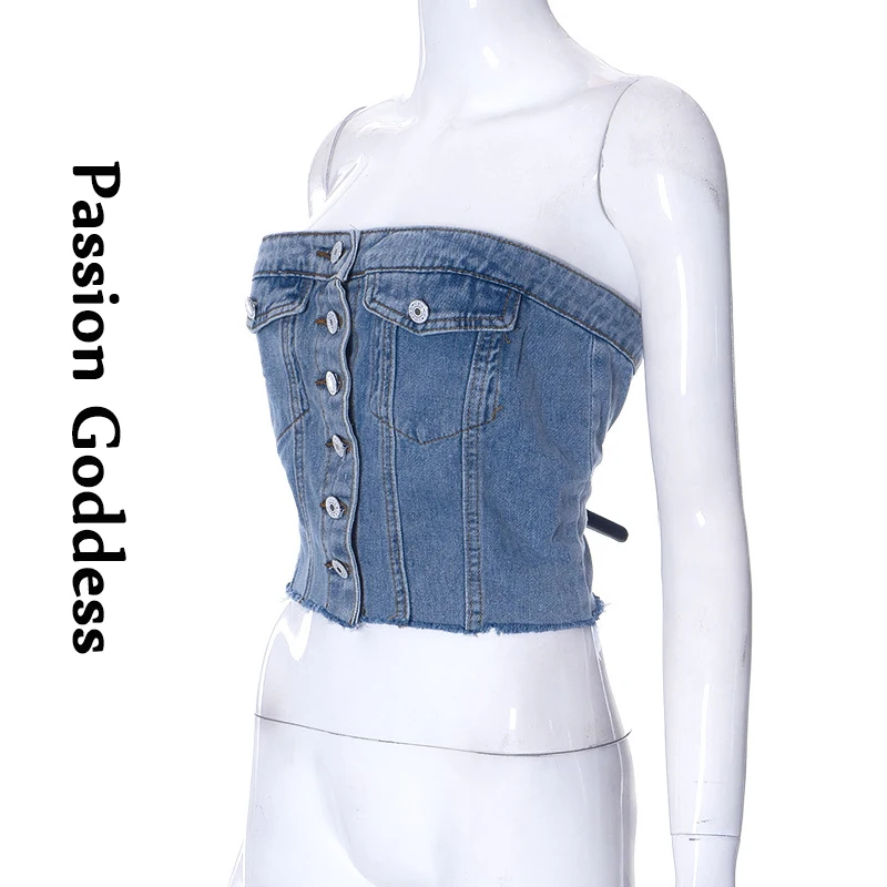 Summer Women Denim Corset Top Single Breasted Corsets Bustiers Crown Girdle Back Pleats Low-cut Corset Tops Curve Shaper Street