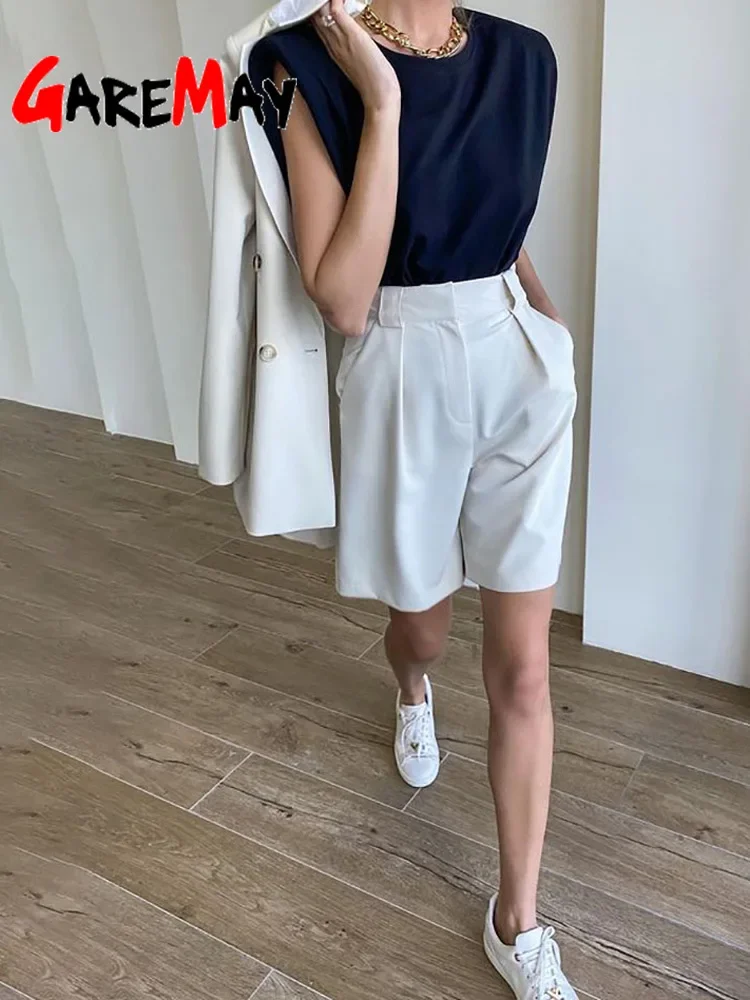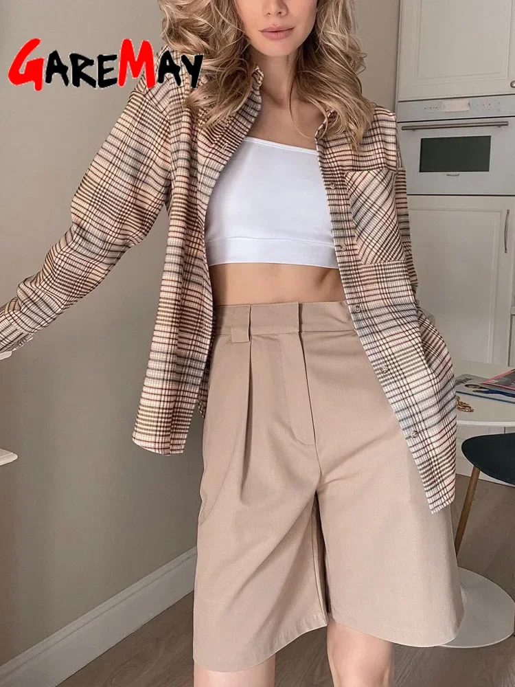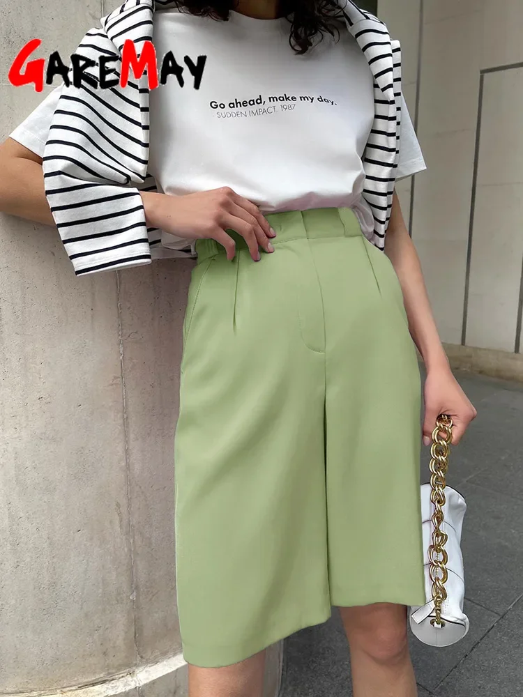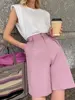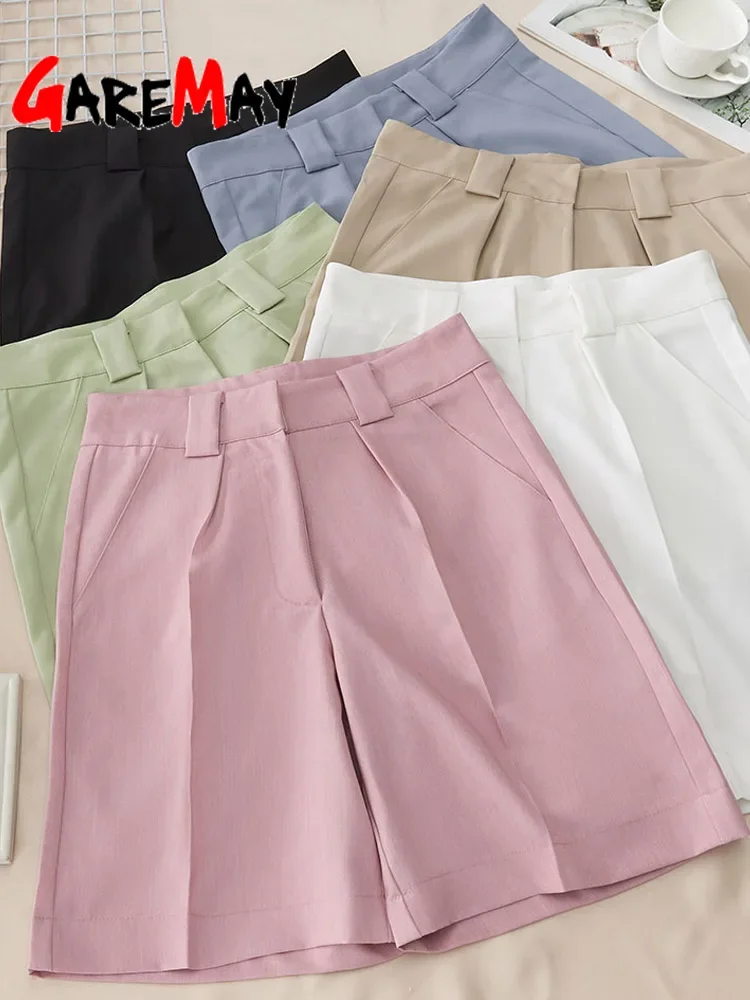 Summer Women’s Shorts 2024 Casual Loose Wide Leg Long Shorts Pockets Office Solid Knee-length Oversize Shorts for Women