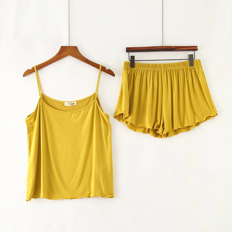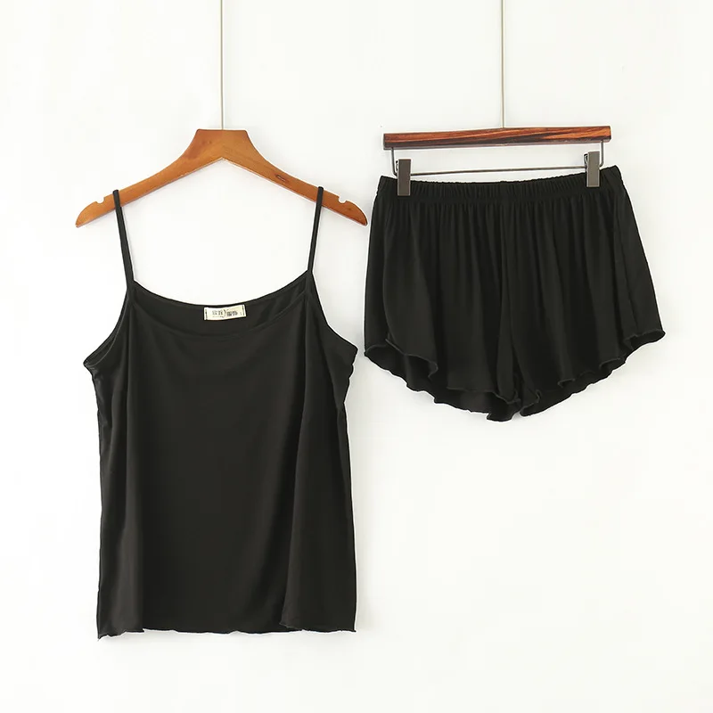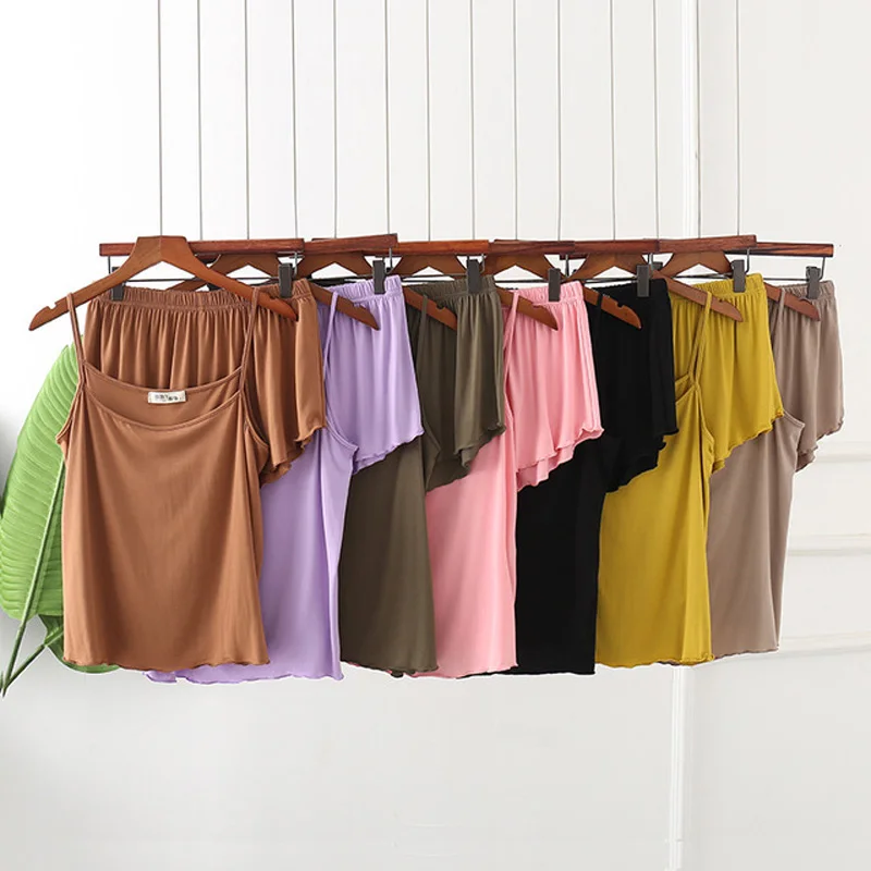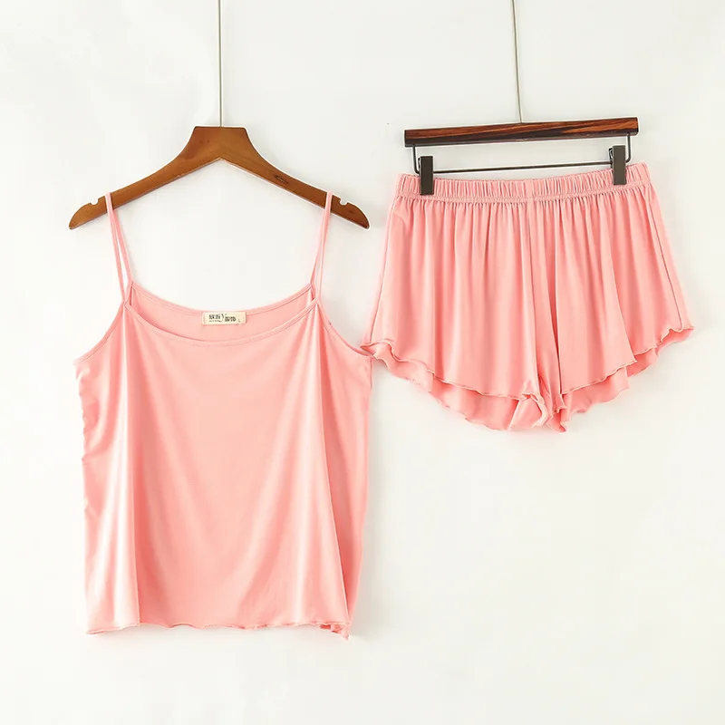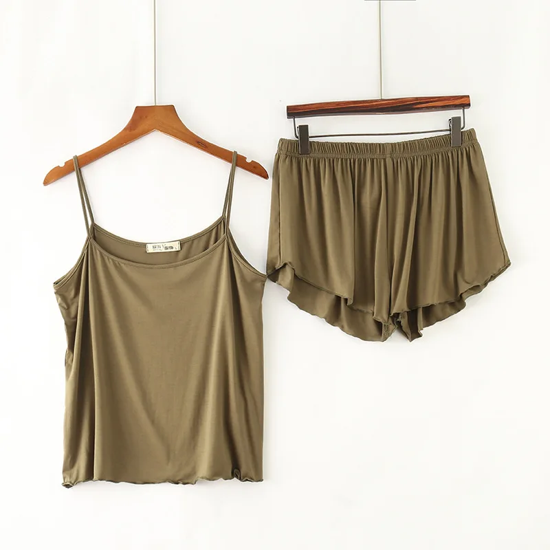 Summer Women’s Sleepwear Sexy Modal Pajama Set Pyjamas Sleeveless Soild Color Cami Tops and Shorts Lingerie
