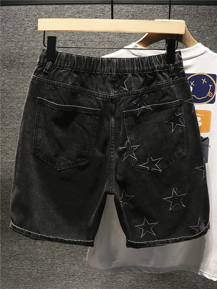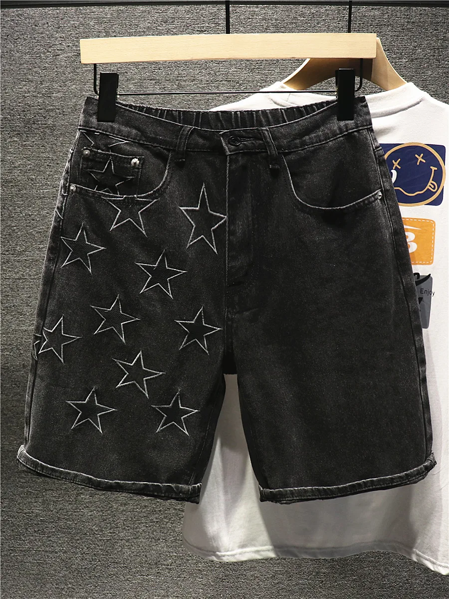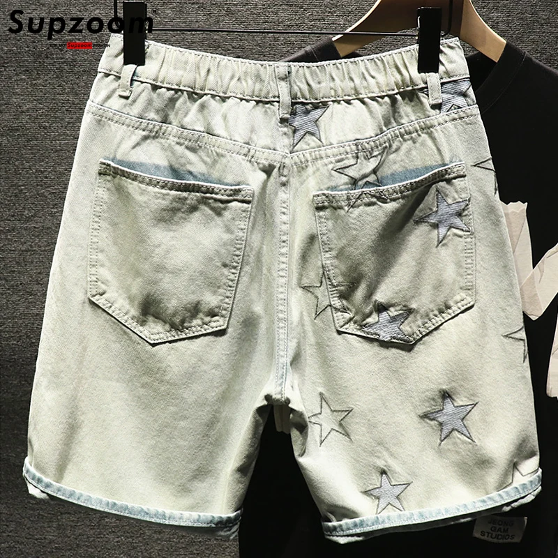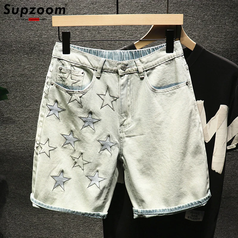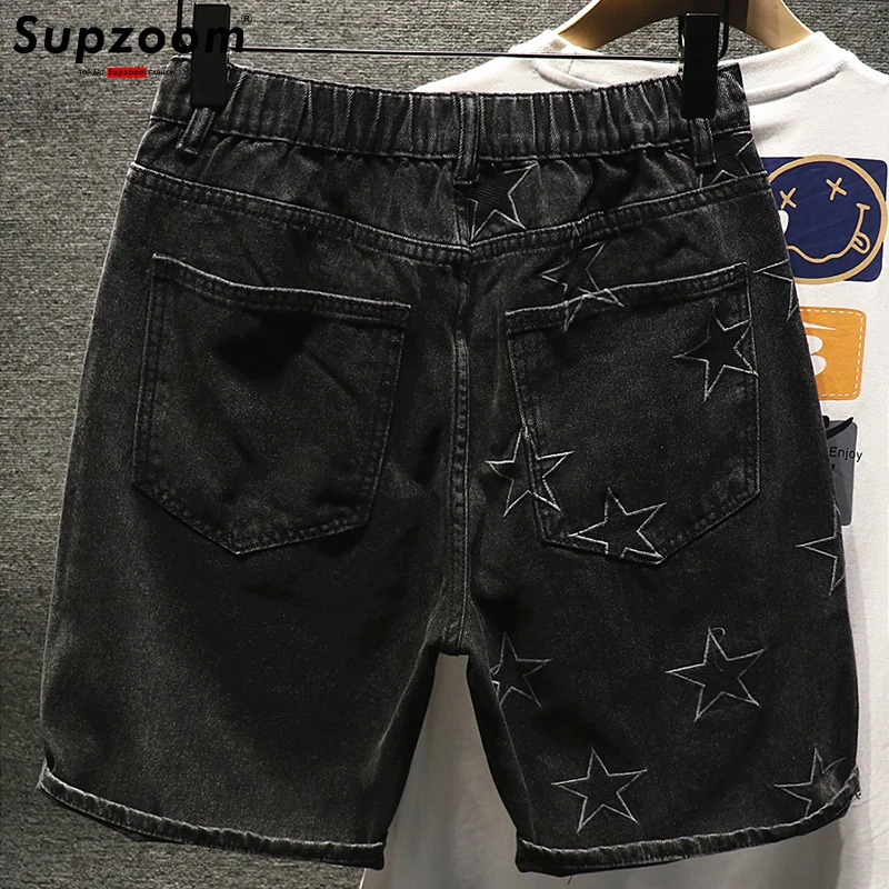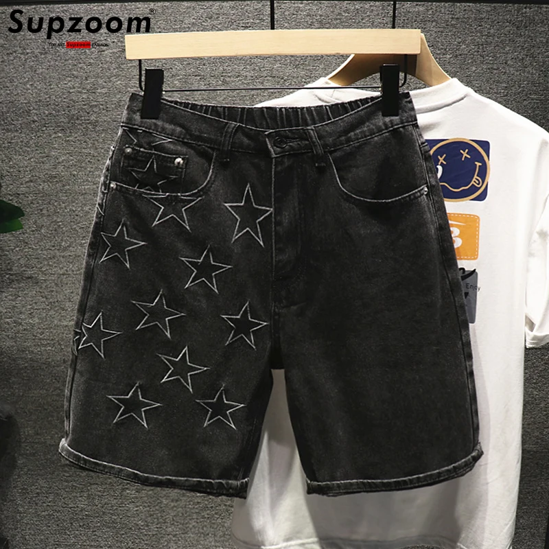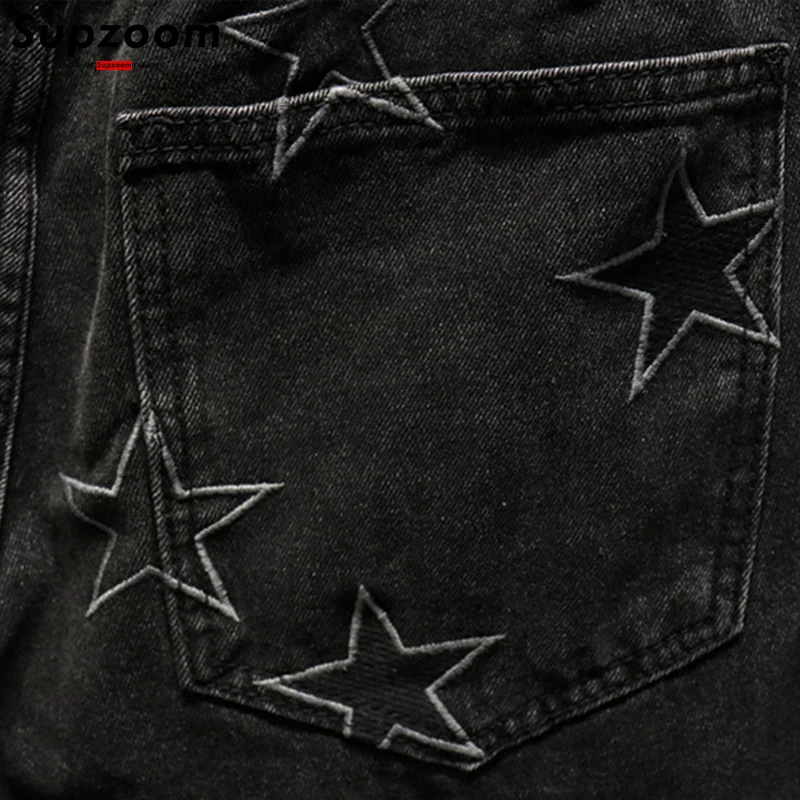 Supzoom New Arrival Fashion Summer Casual Cargo High Street Vibe Style Black Washed Star Embroidered Side Denim Jeans Shorts Men