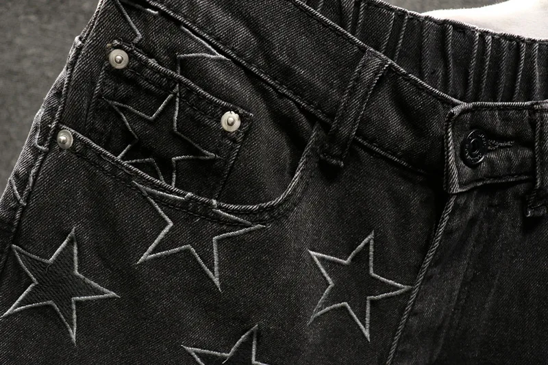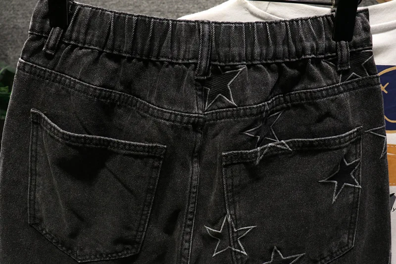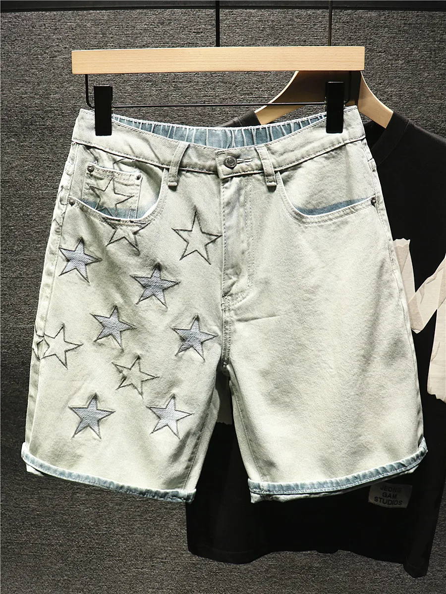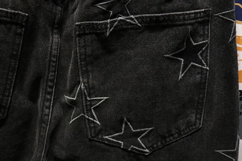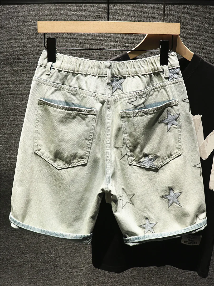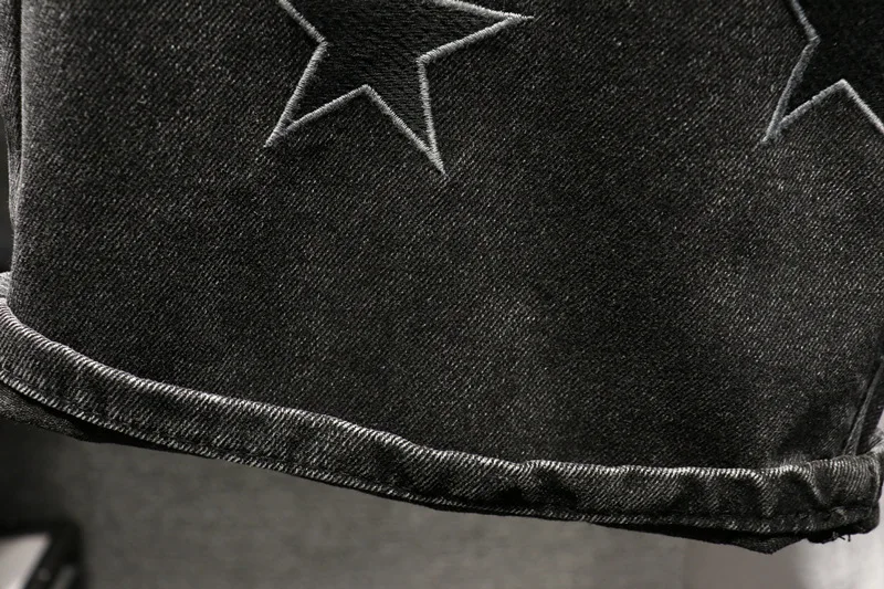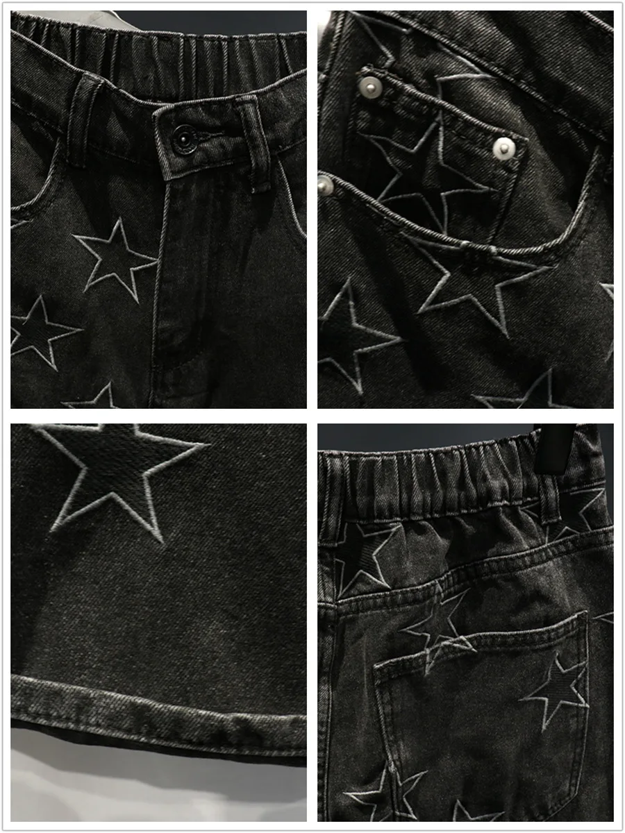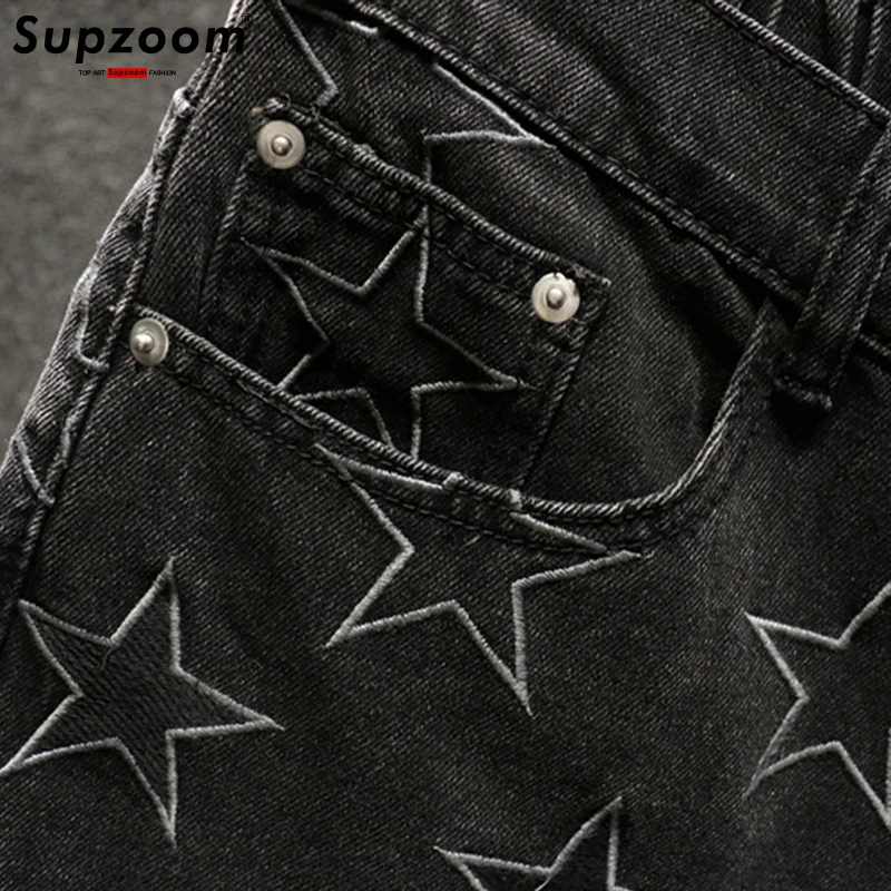 Supzoom New Arrival Fashion Summer Casual Cargo High Street Vibe Style Black Washed Star Embroidered Side Denim Jeans Shorts Men