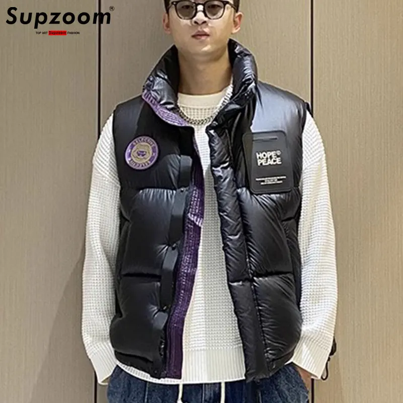 Supzoom Top Fashion New Arrival Letters Leather Stand Collar Autumn And Winter For Men And Women Casual Warm Thickened Down Vest