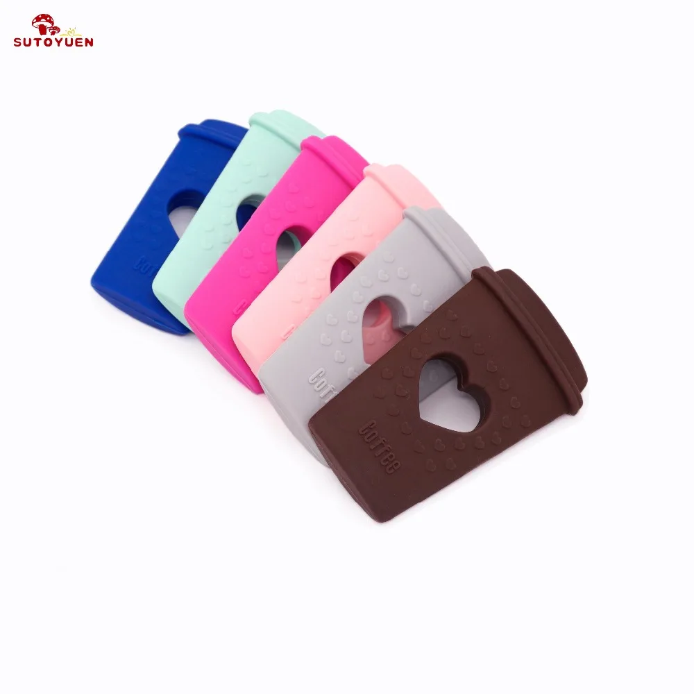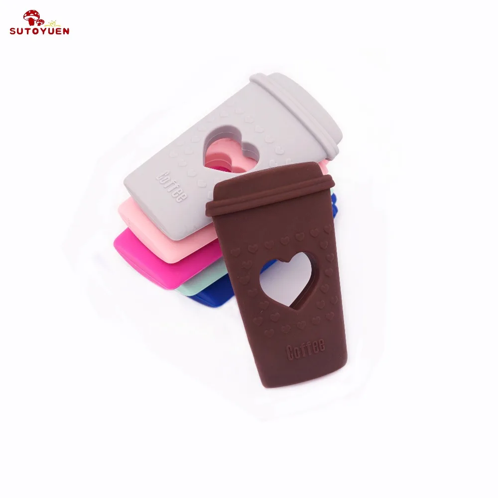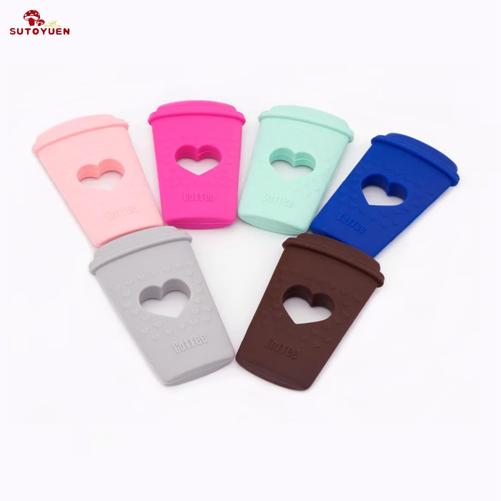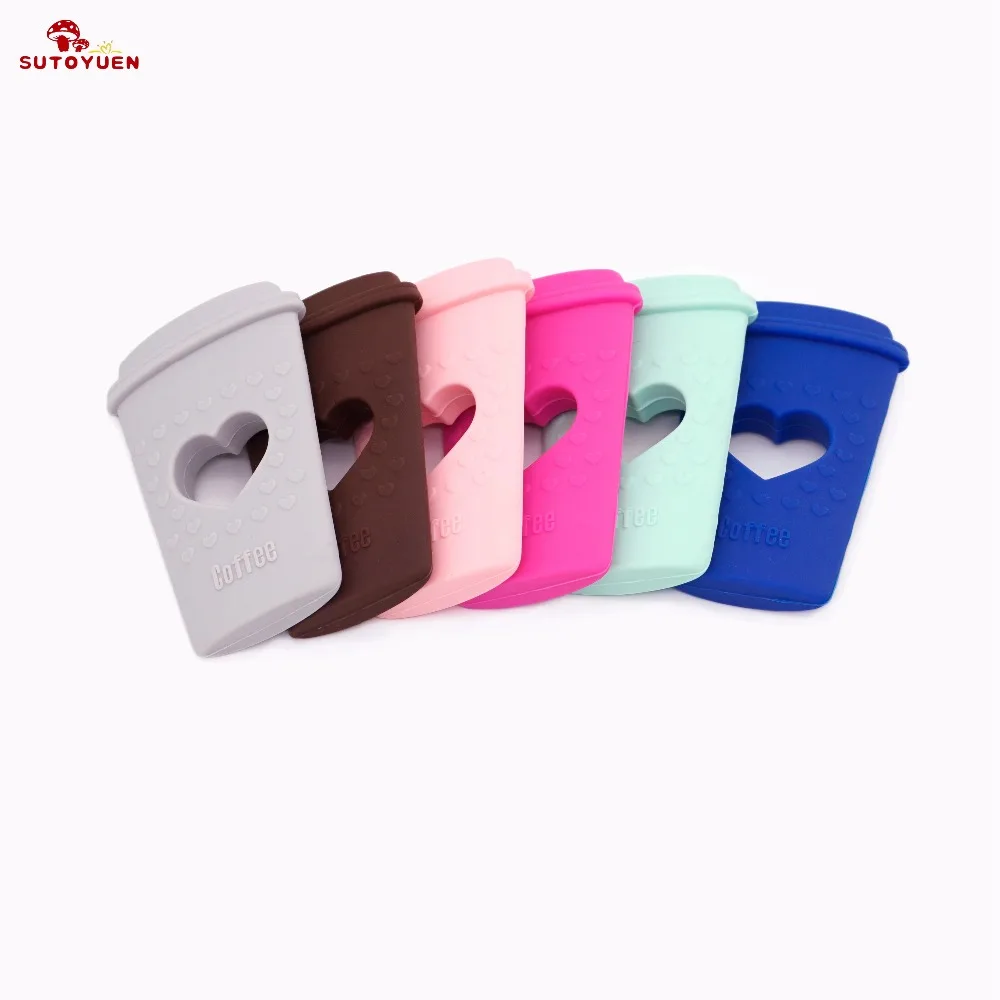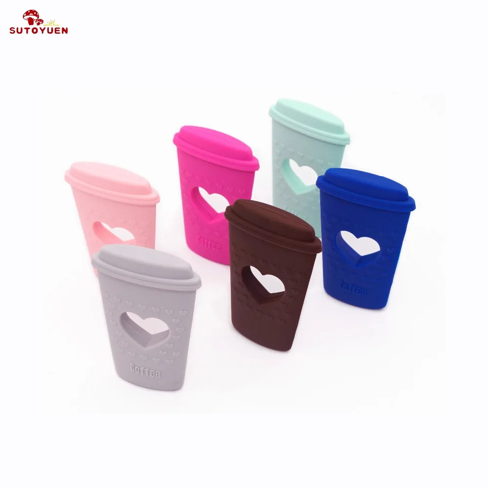 Sutoyuen 5pc BPA Free Coffee Cup Shape Baby Chewable Accessories Silicone Teething Jewelry Charms Pendant Baby Teether