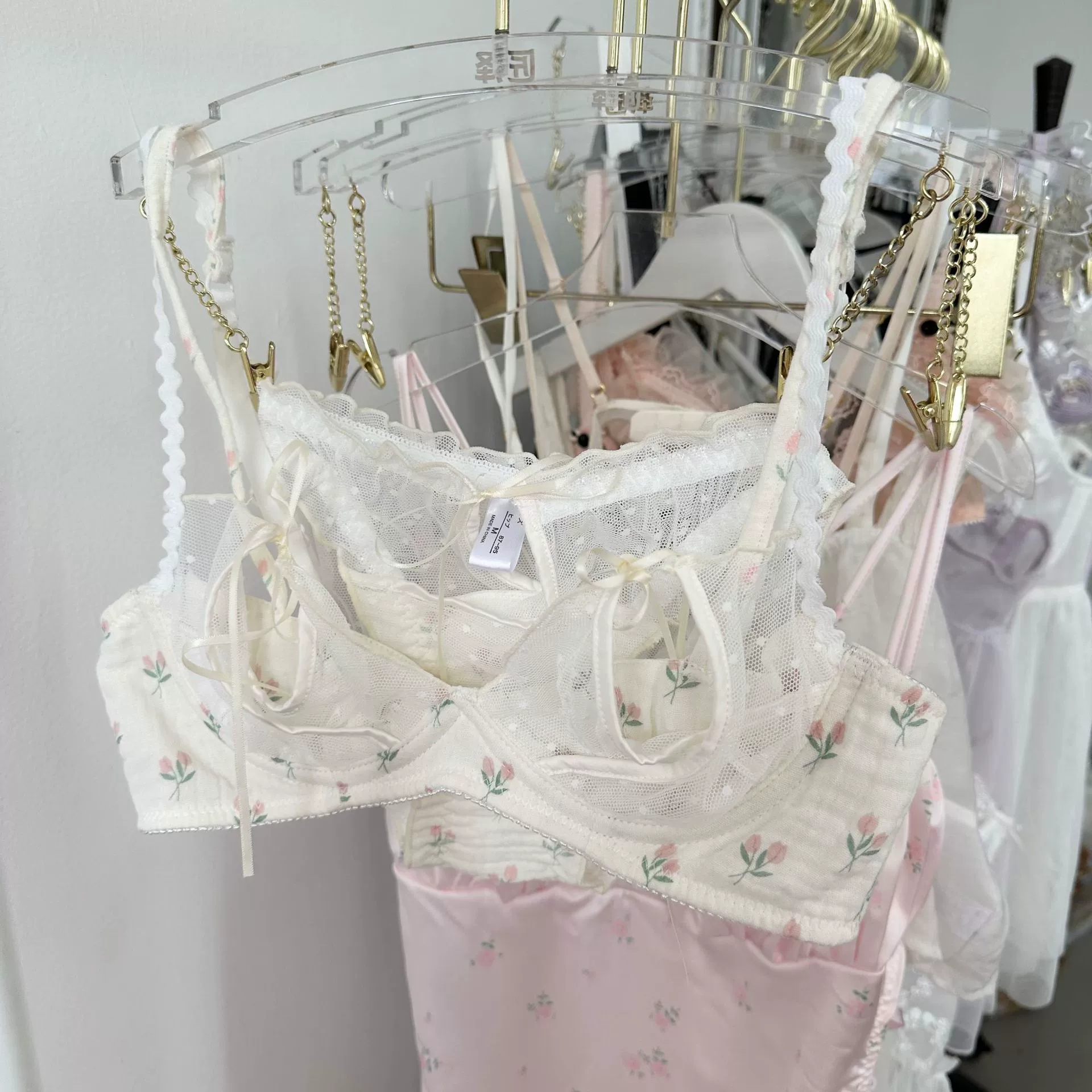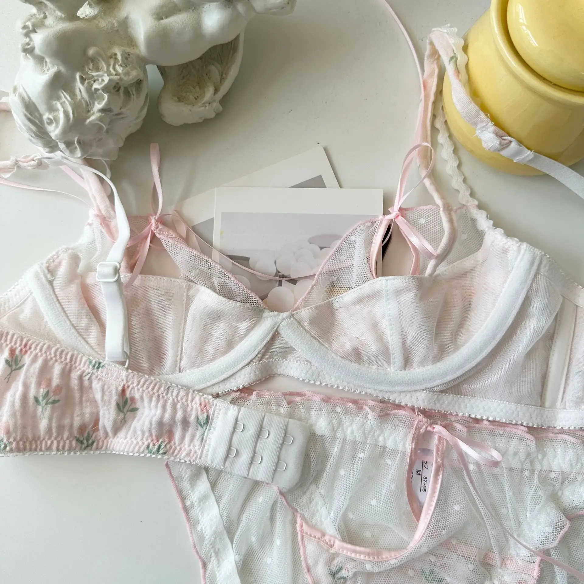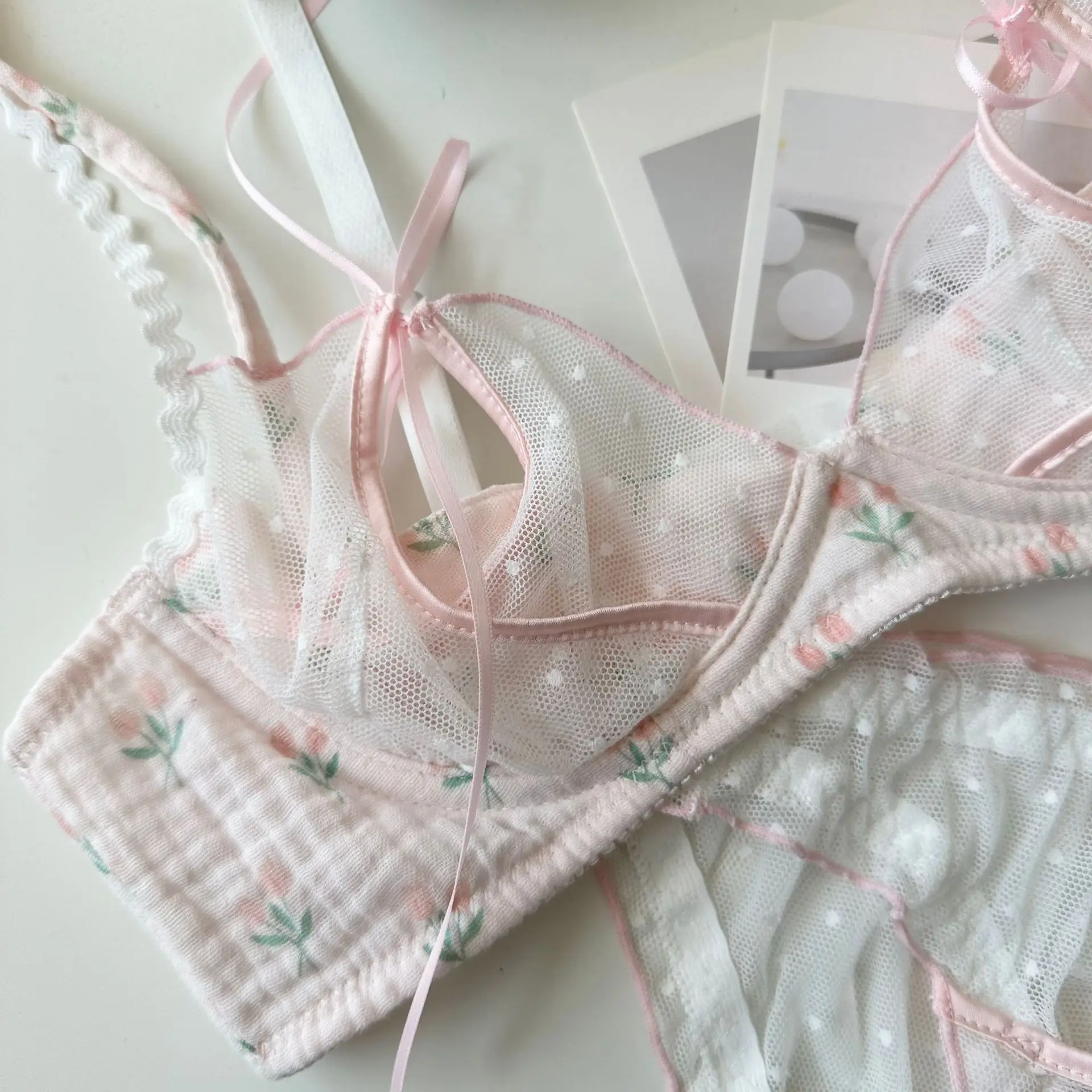 Sweet and lovely bras girl tulip gentle pure desire student bra set teenage daily women lingerie panty