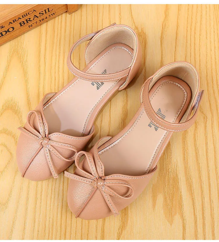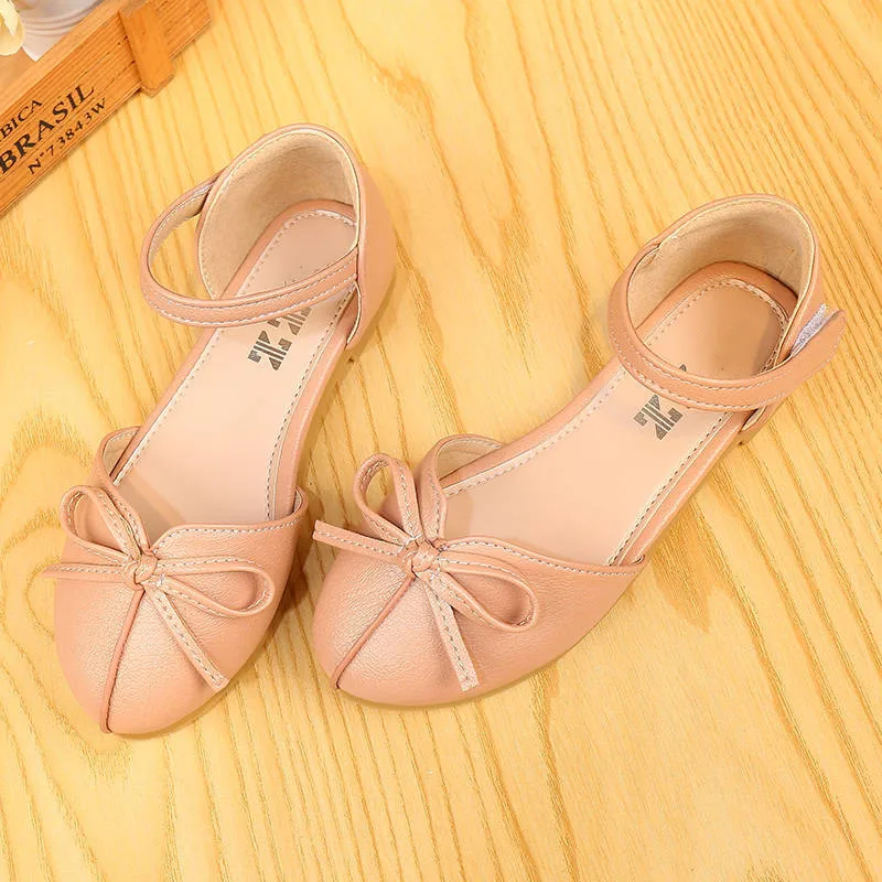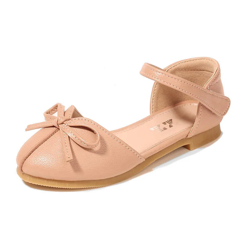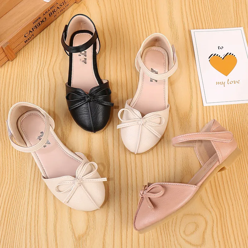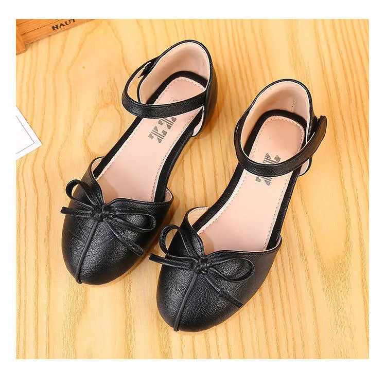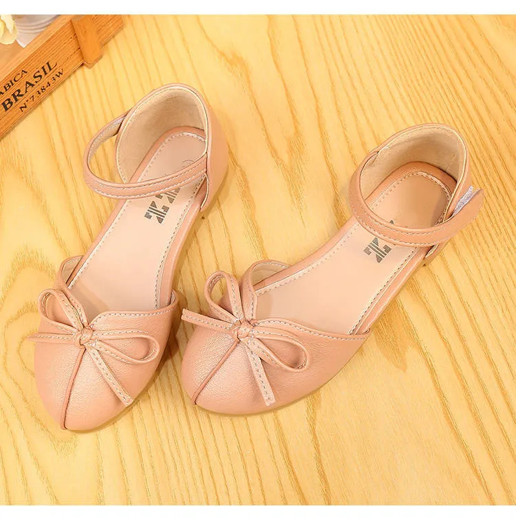 Sweet Girls Sandals Bowknot Children Princess Shoes Closed Toe Soft Bottom Leather Shoes Hook Loop Kids Flats Students Moccasins