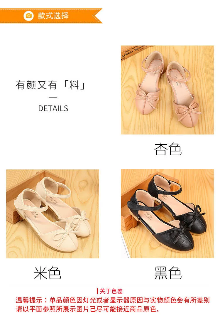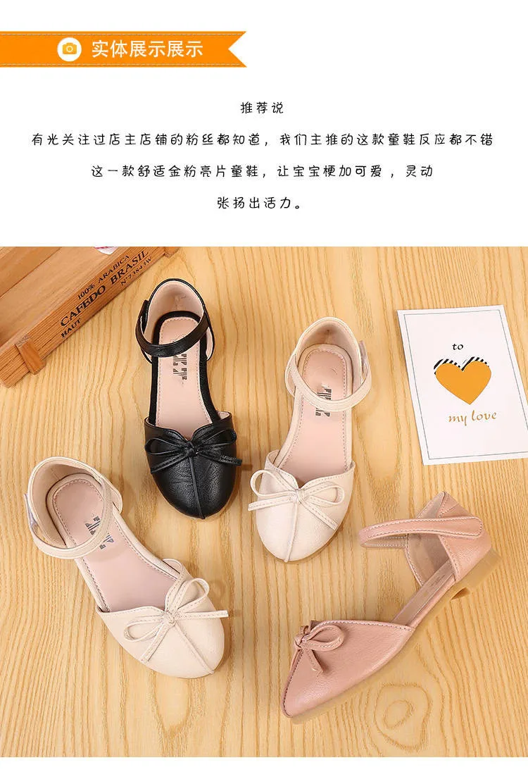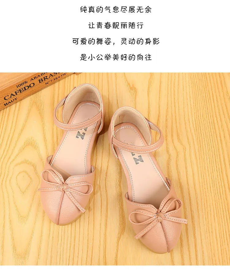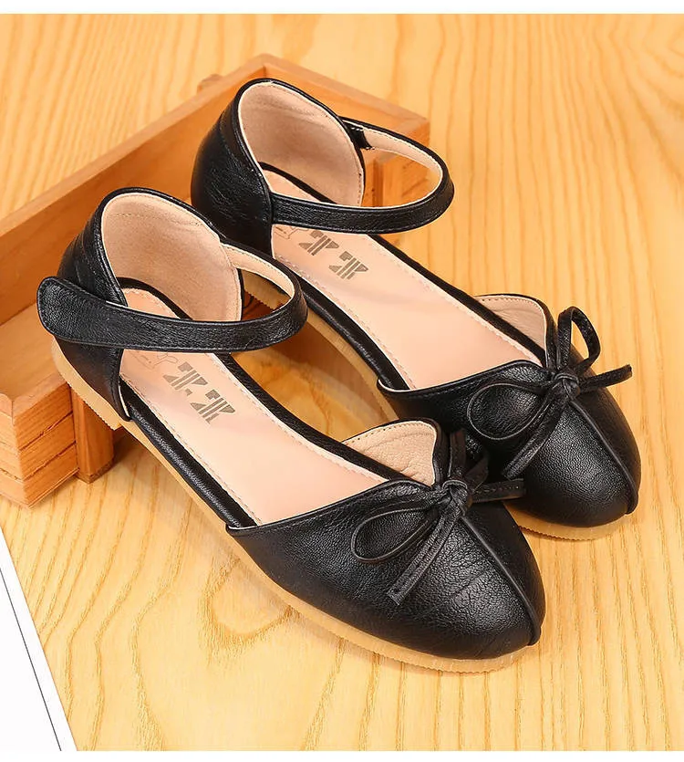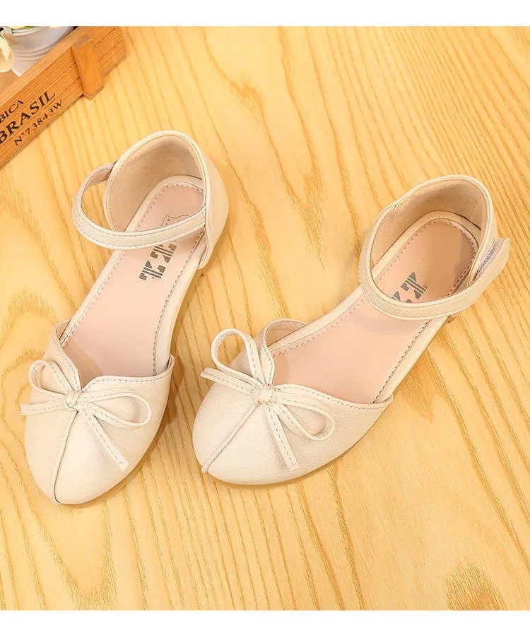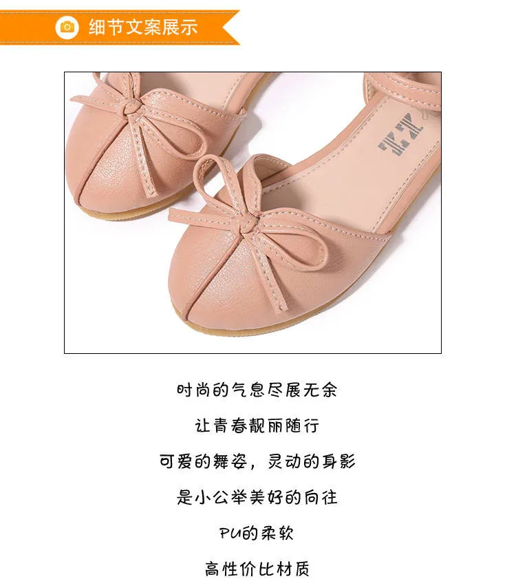 Sweet Girls Sandals Bowknot Children Princess Shoes Closed Toe Soft Bottom Leather Shoes Hook Loop Kids Flats Students Moccasins