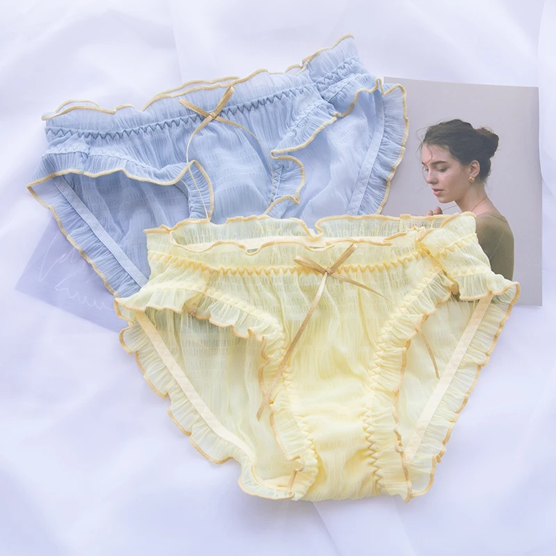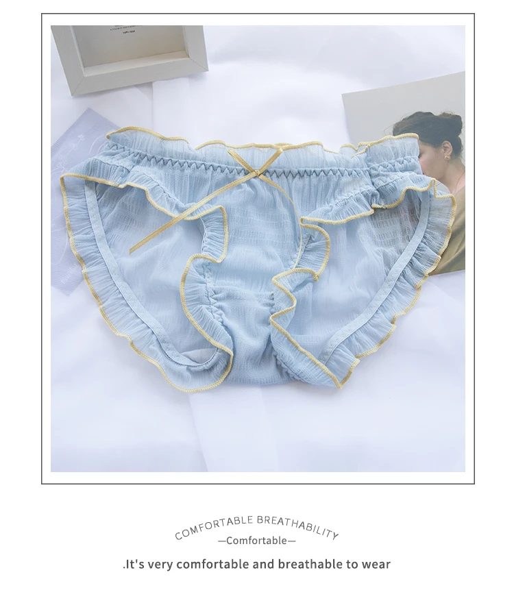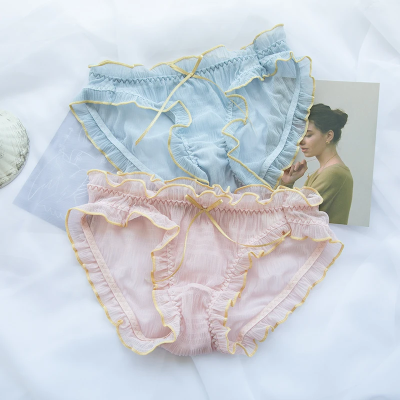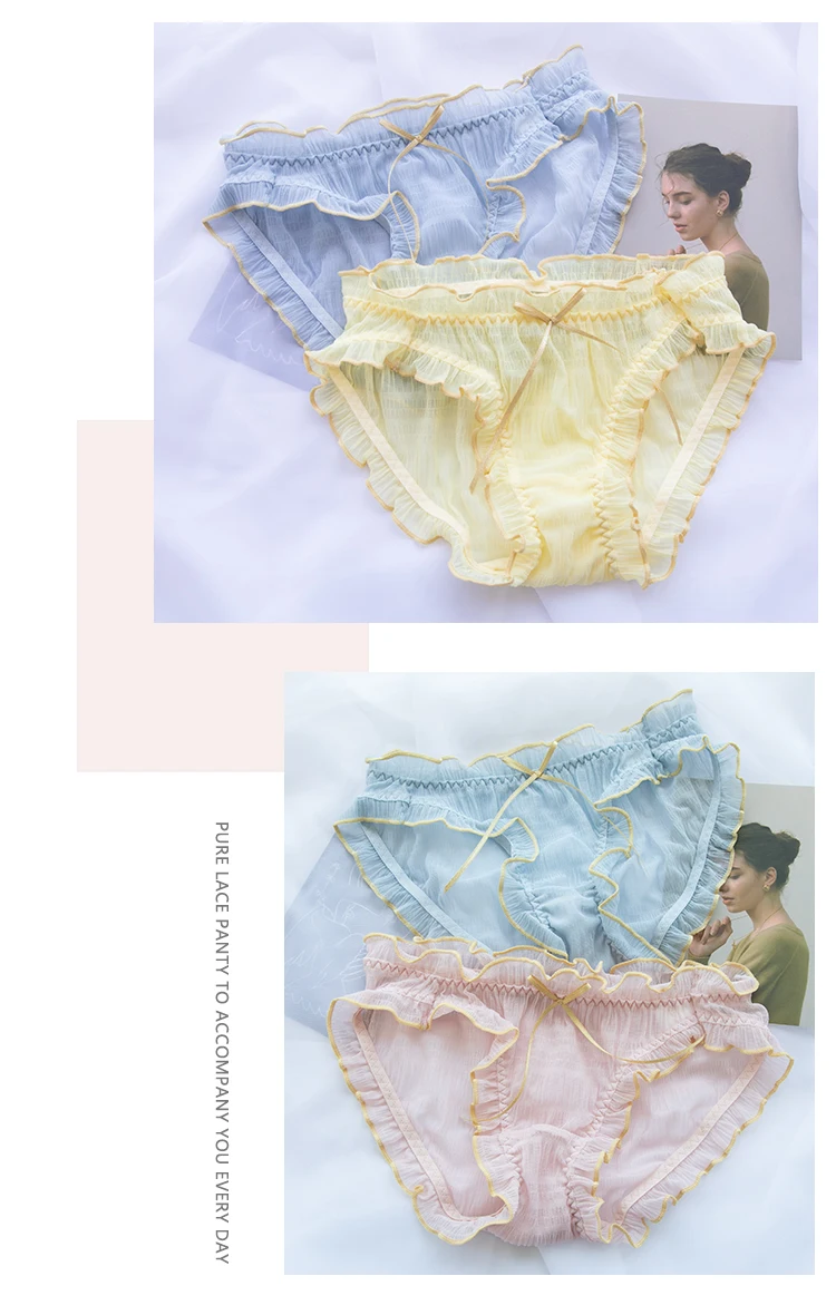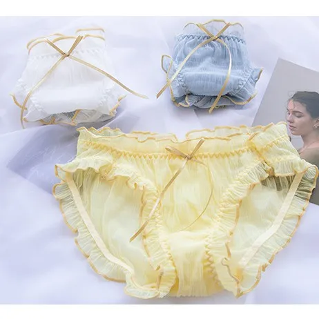 Sweet Sexy Women Lace Panties Net Yarn Transparent Underwear Summer Briefs Bows Trim Cute Girls Intimates 5 Colors