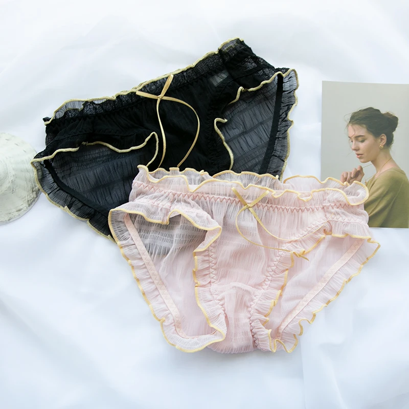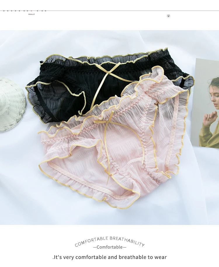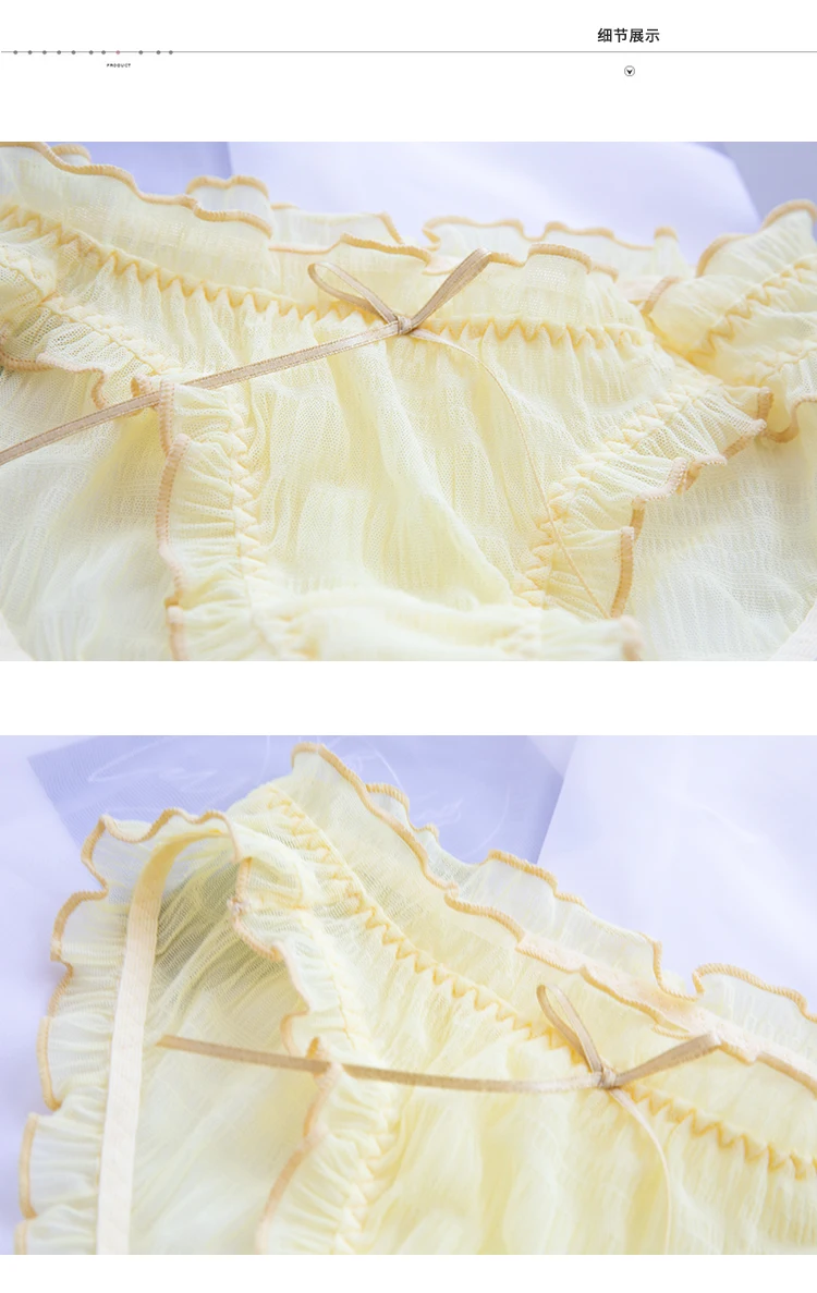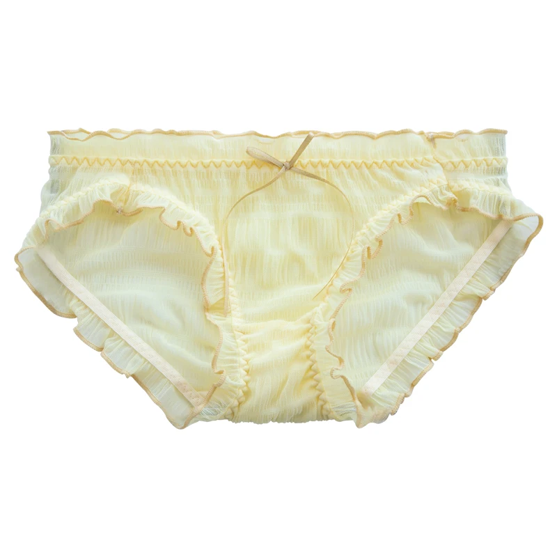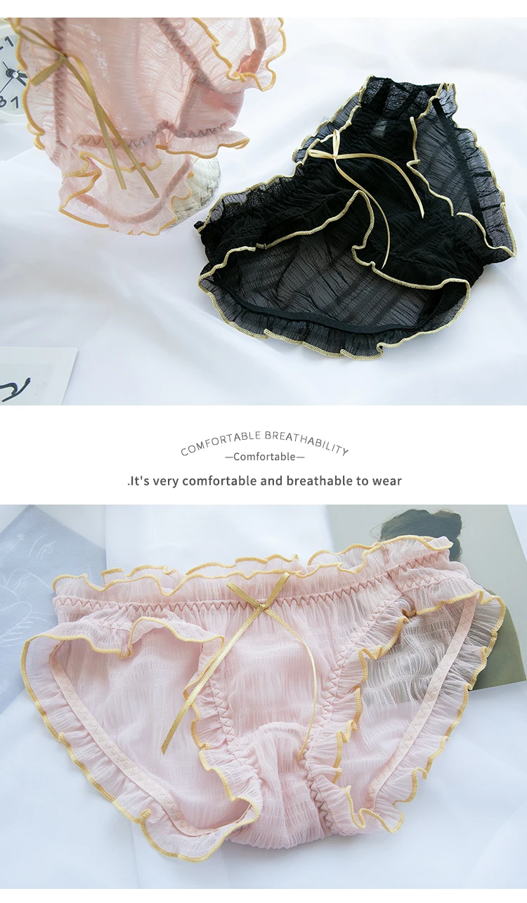 Sweet Sexy Women Lace Panties Net Yarn Transparent Underwear Summer Briefs Bows Trim Cute Girls Intimates 5 Colors