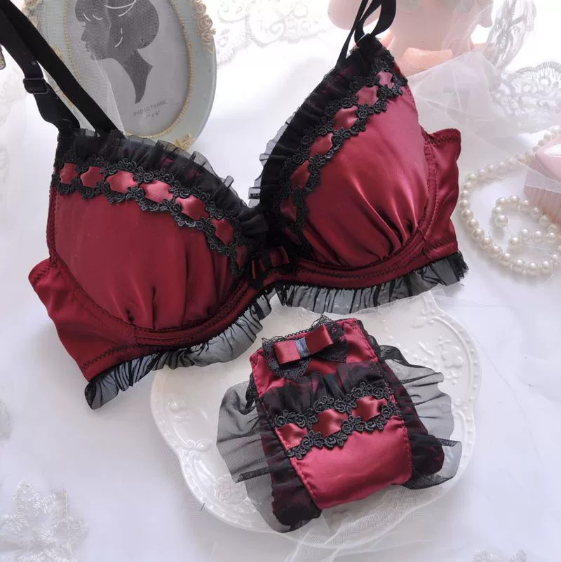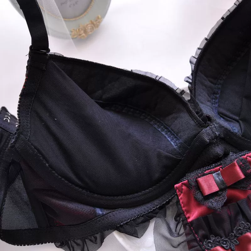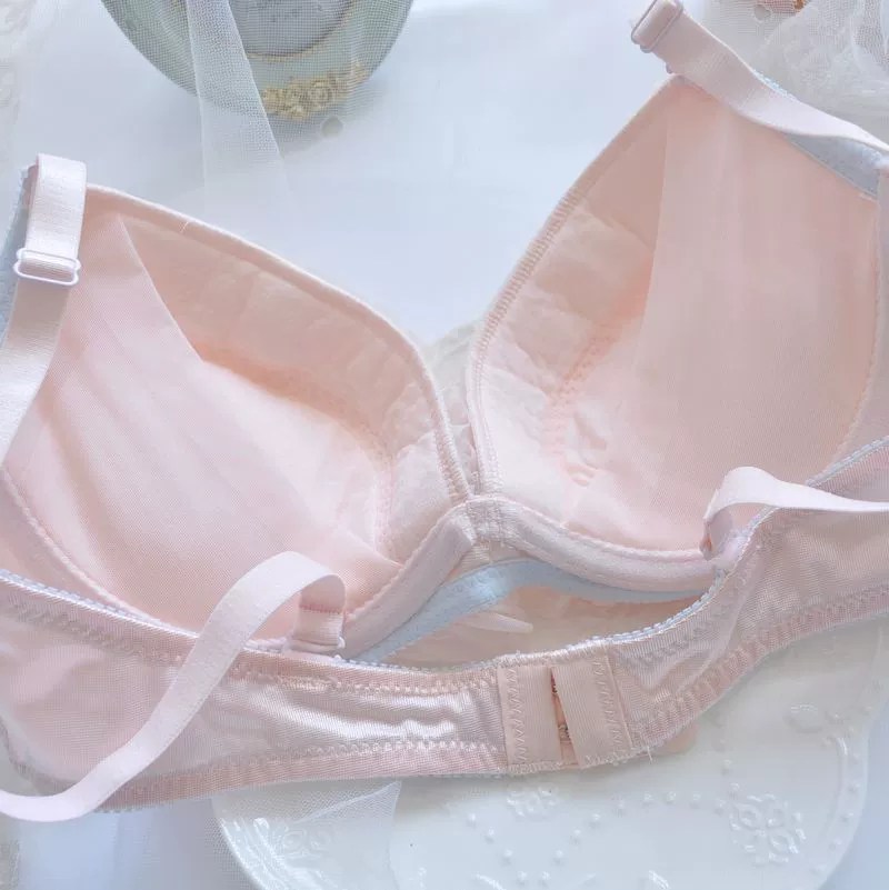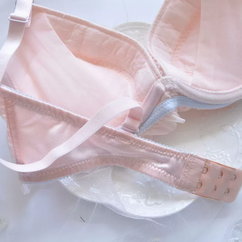 Sweet Small Fresh Deep V Thin Cup Underwear Hollow Flower Embroidery Bra Set Has Large Size A-E Cup Lingerie Panty Suit