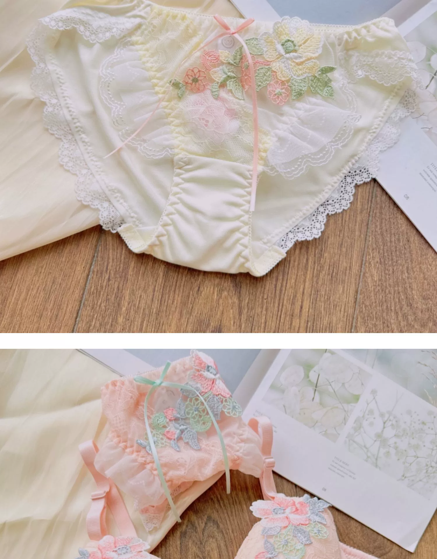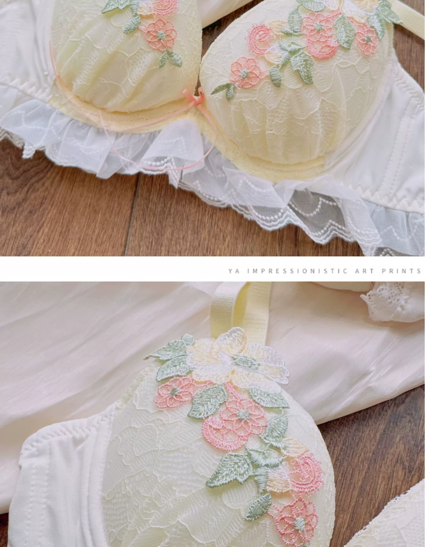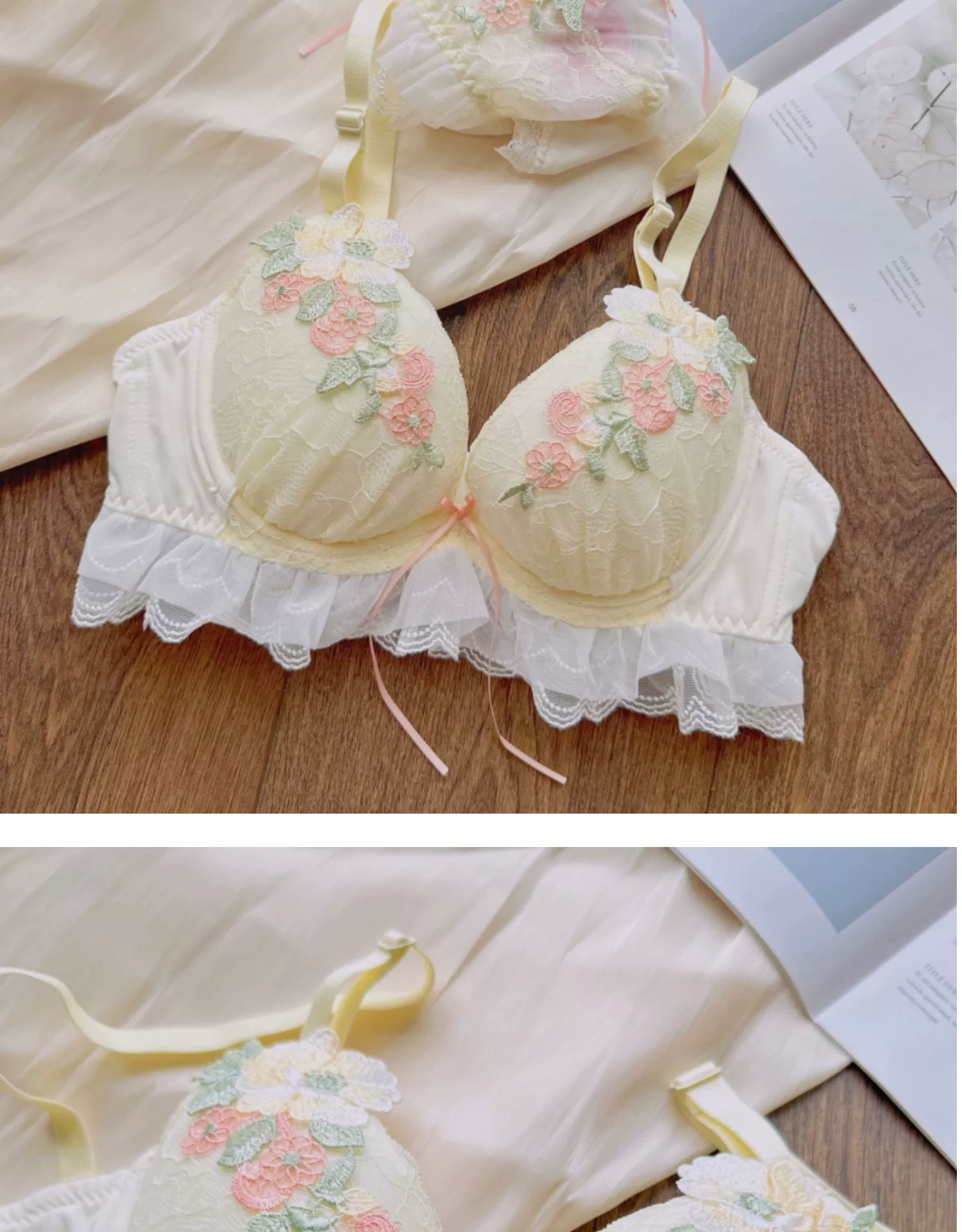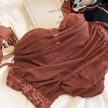 Sweet water-soluble lace lingerie deep V large steel ring thin cup bra set gathered sexy underwear