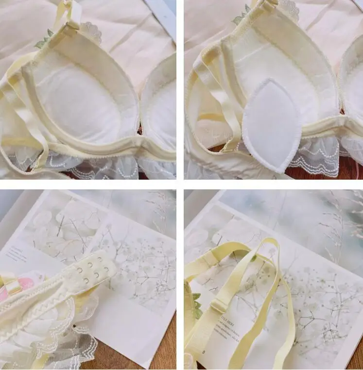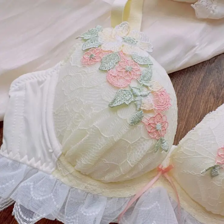 Sweet water-soluble lace lingerie deep V large steel ring thin cup bra set gathered sexy women underwear