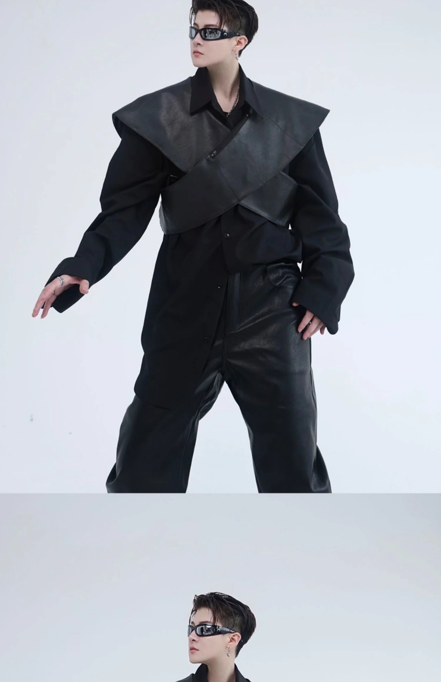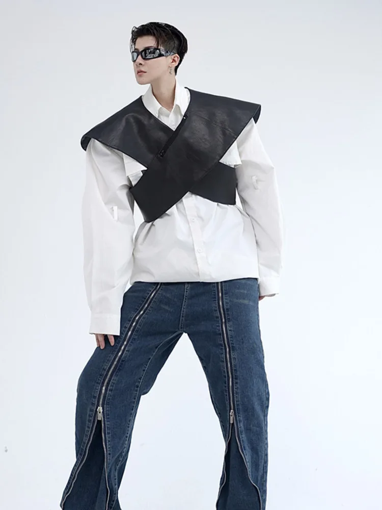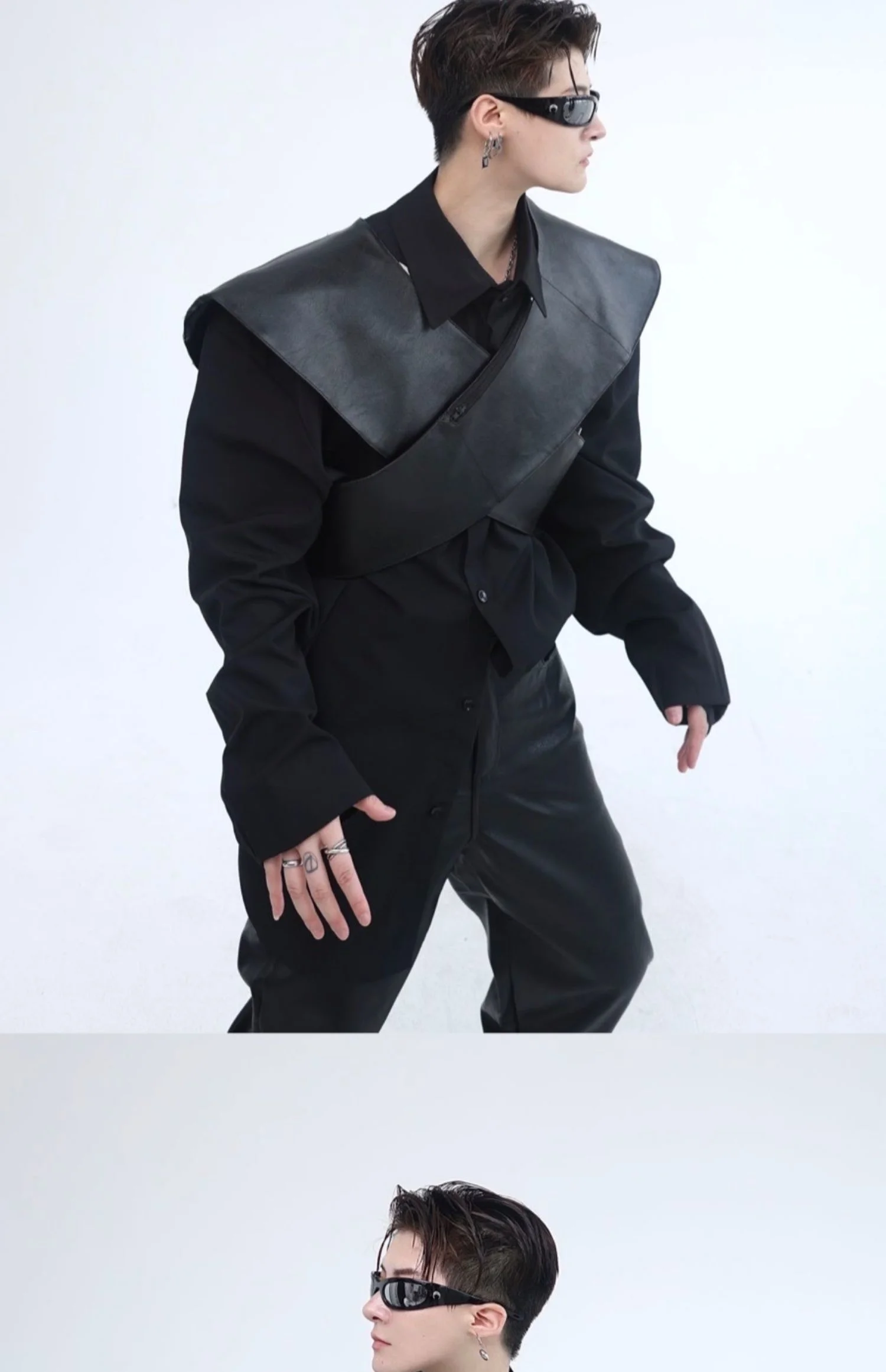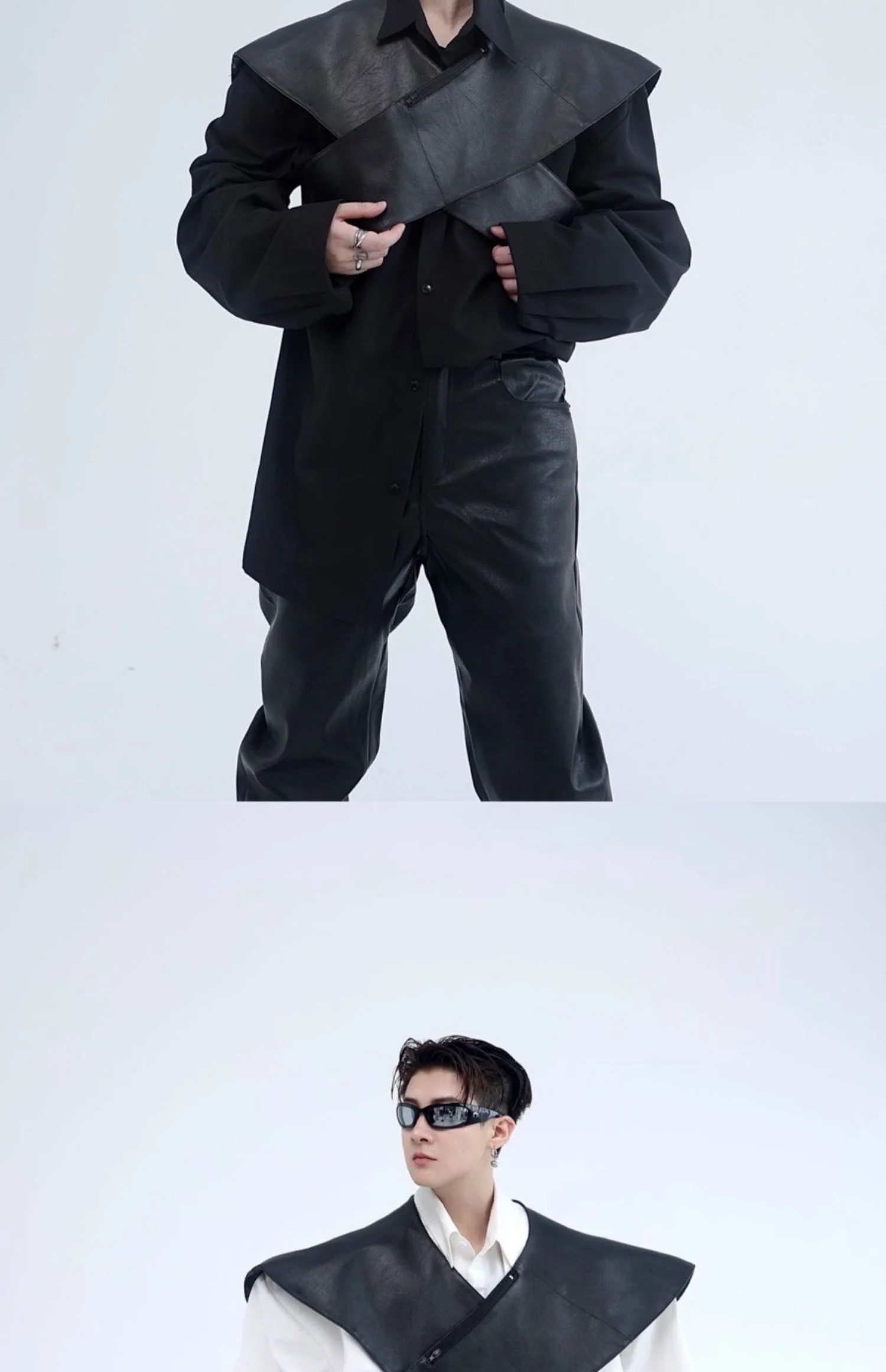 SYUHGFA Men Clothing 2024 Autumn Personalized PU Leather Waistcoat Trend Waistcoat Korean Streetwear Men’s Short Vest