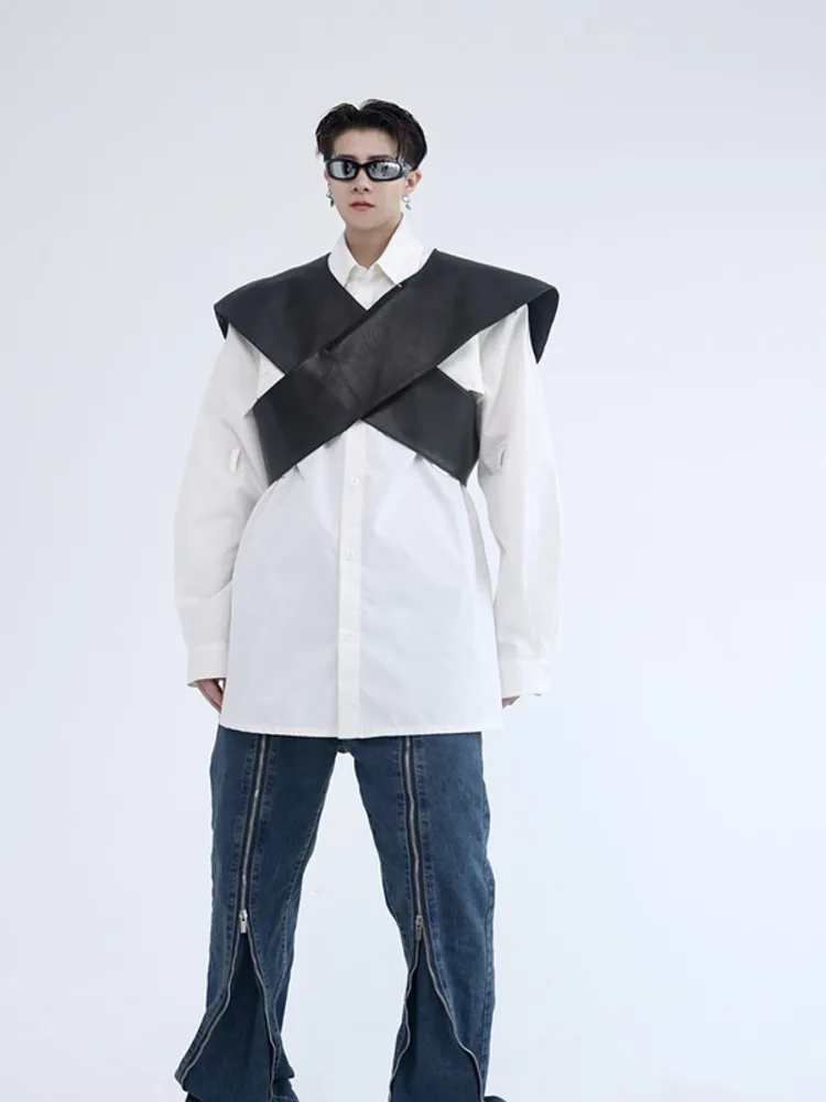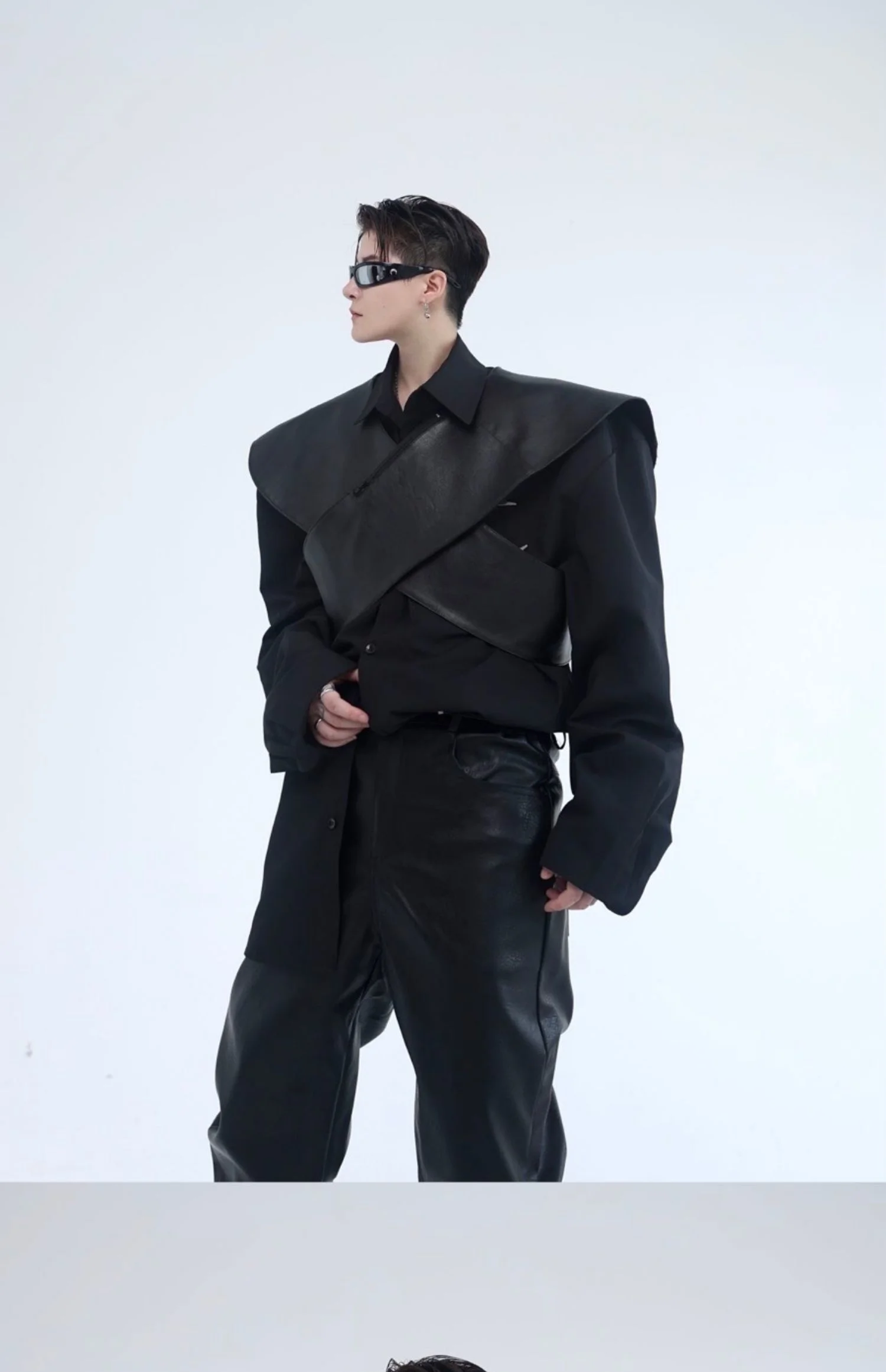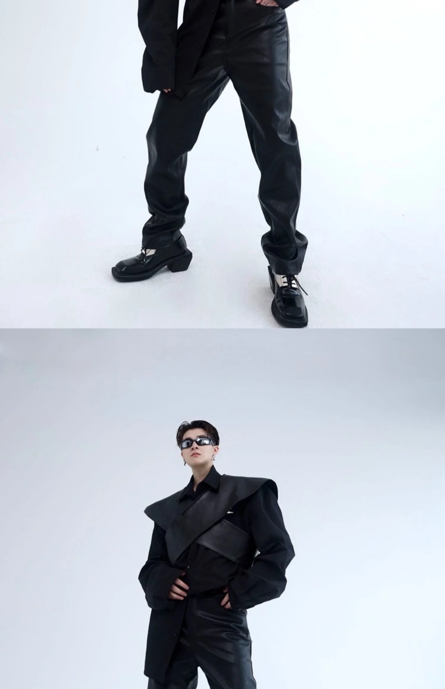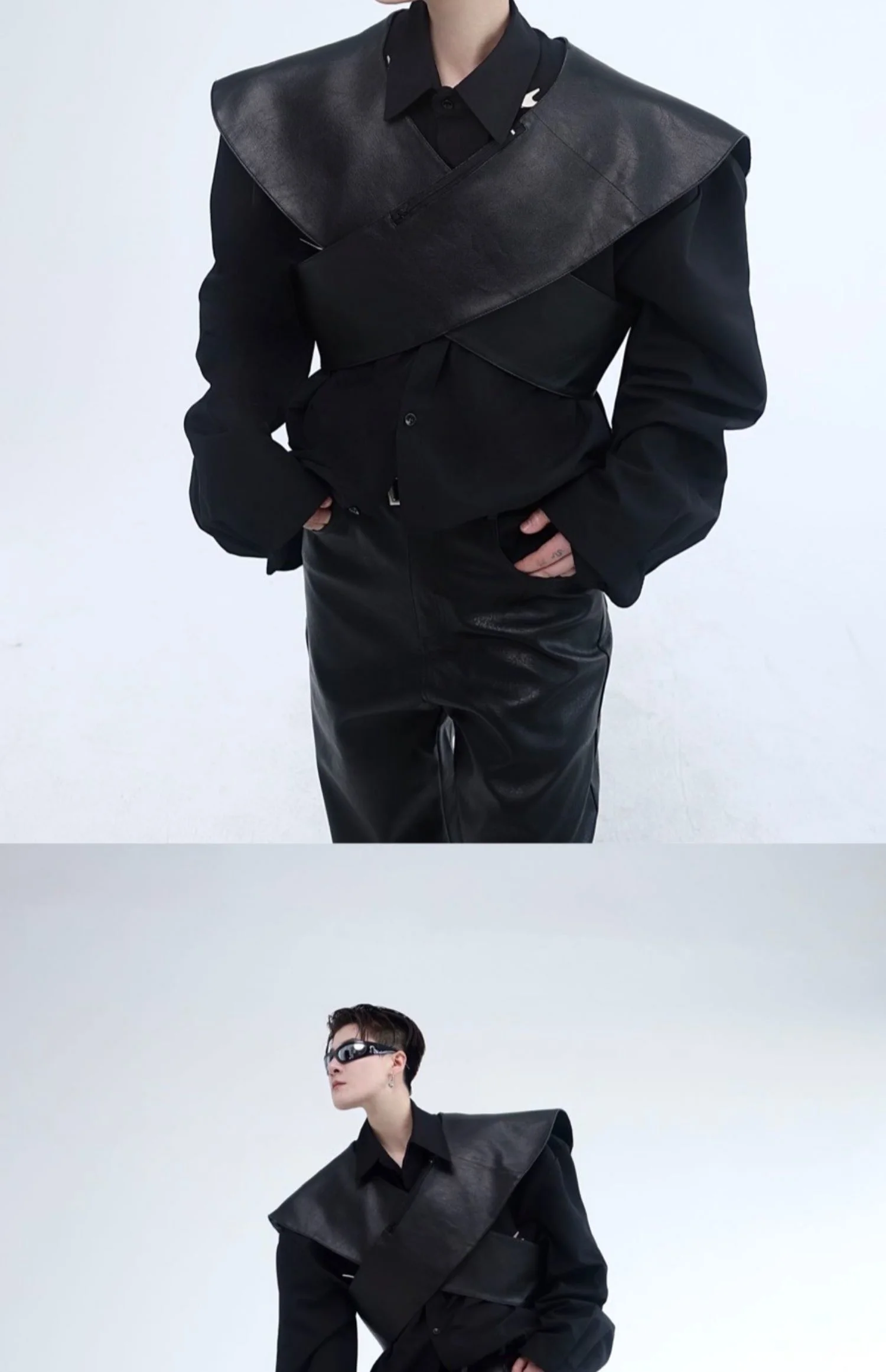 SYUHGFA Men Clothing 2024 Autumn Personalized PU Leather Waistcoat Trend Waistcoat Korean Streetwear Men’s Short Vest