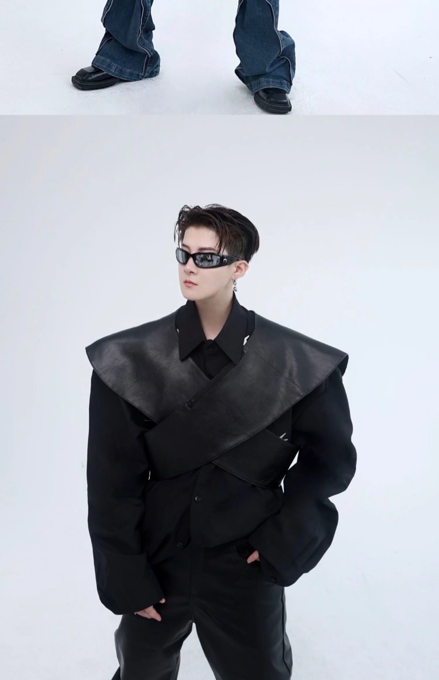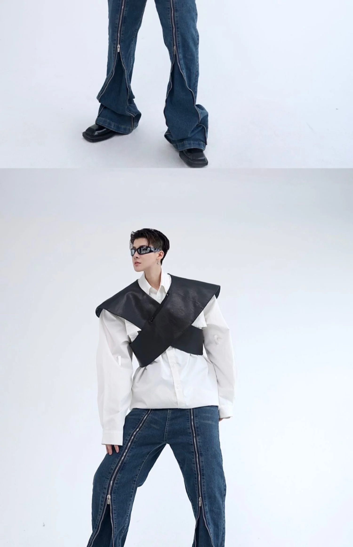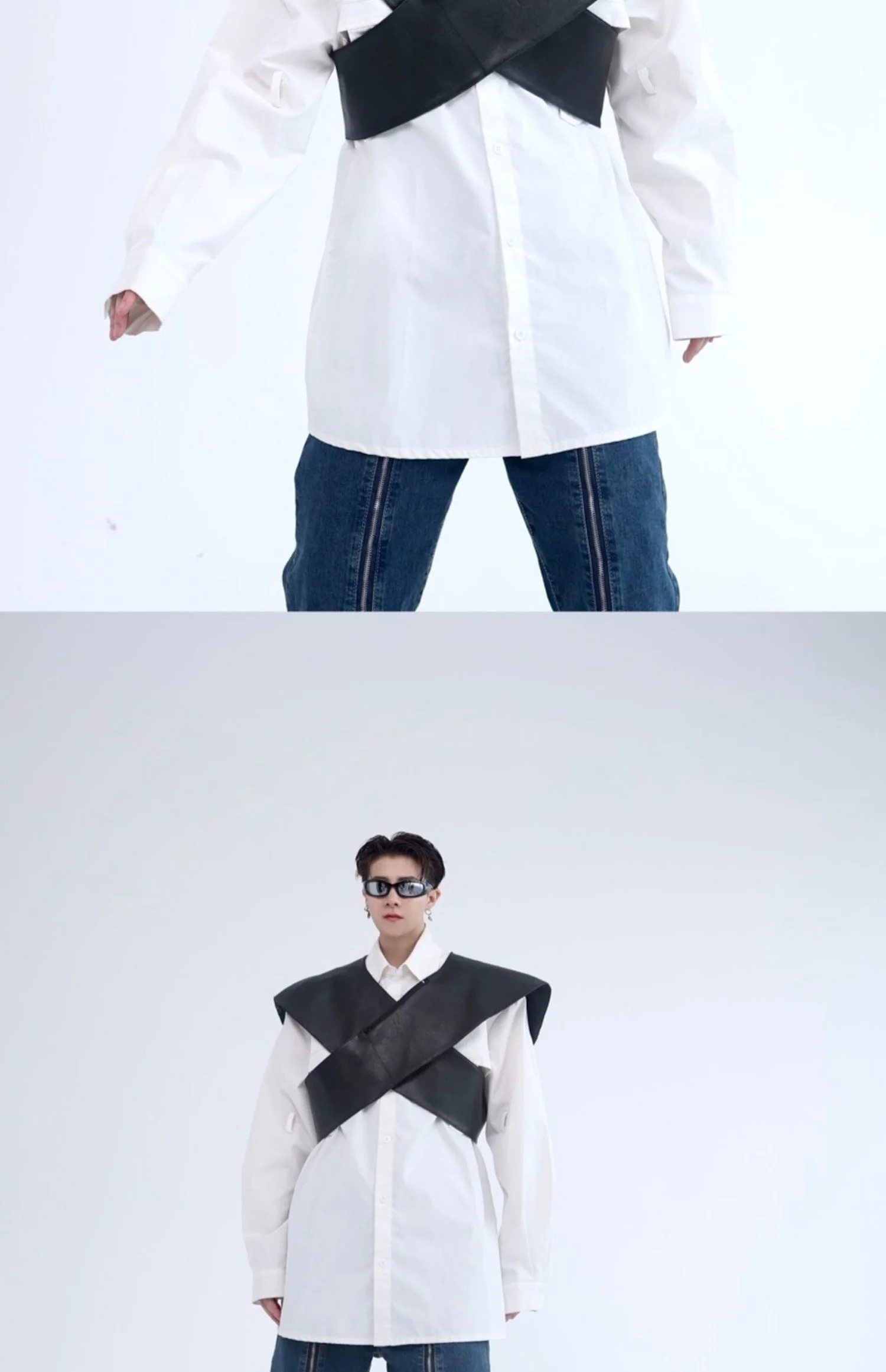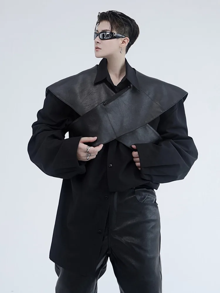 SYUHGFA Men Clothing 2024 Autumn Personalized PU Leather Waistcoat Trend Waistcoat Korean Streetwear Men’s Short Vest