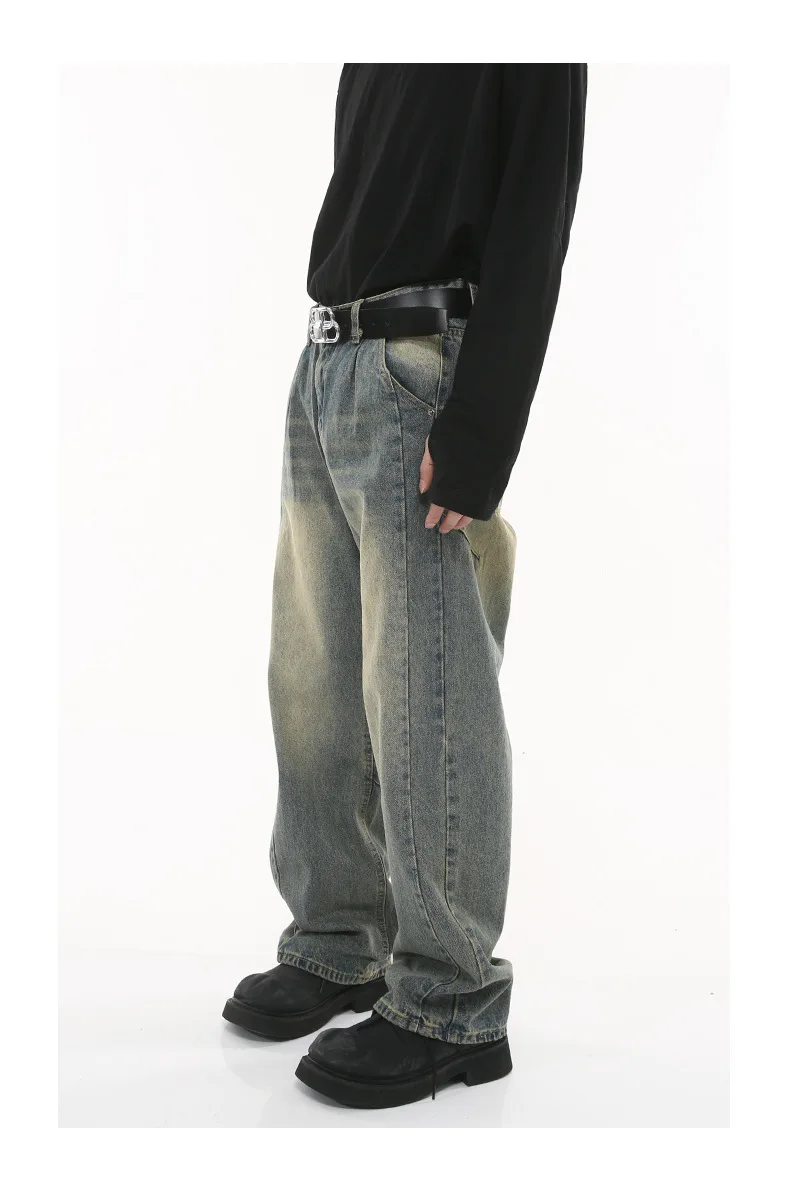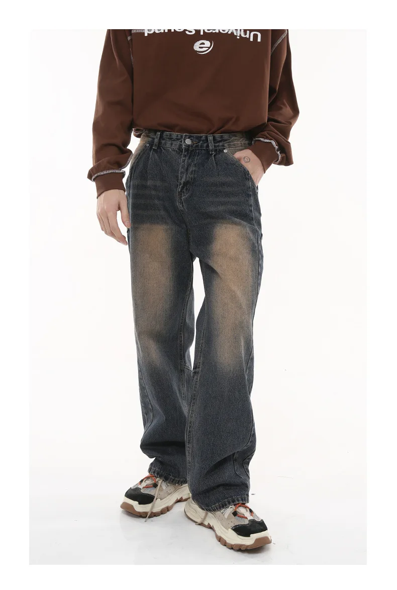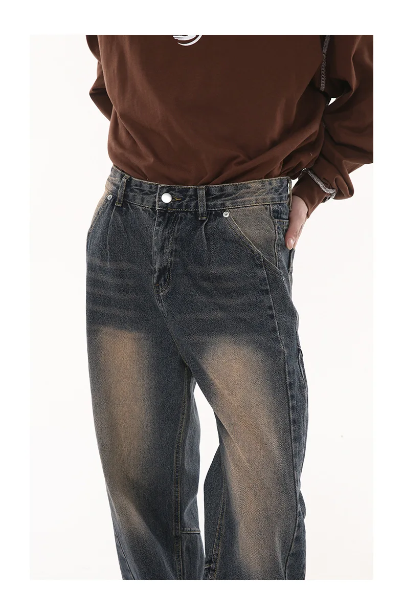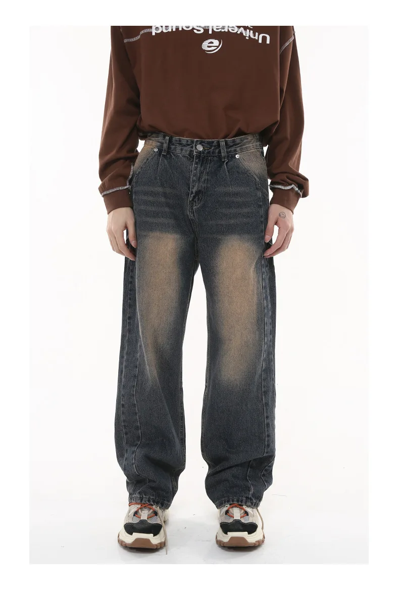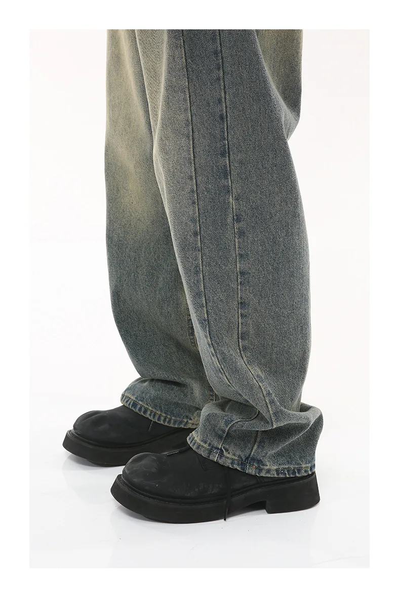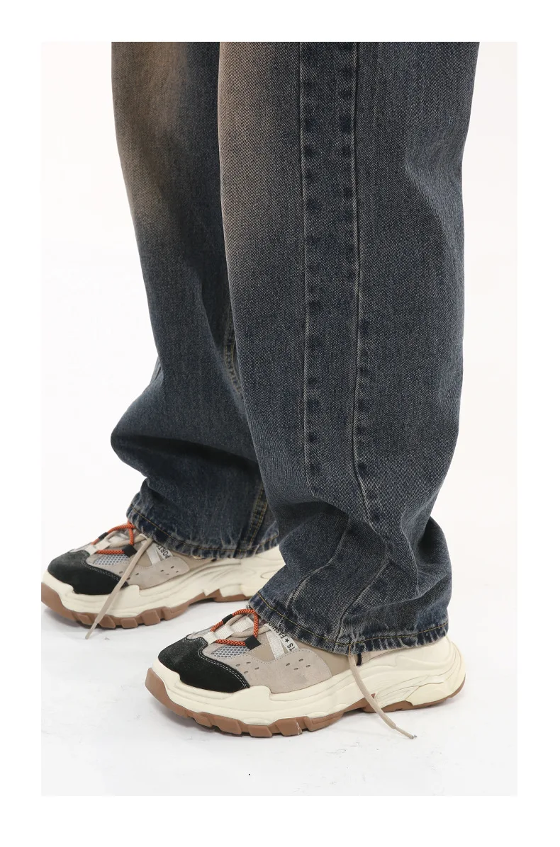 SYUHGFA Trend Men’s Baggy Jeans Vintaeg Washed Streetwear Loose Fashion Gradient Wide Leg Denim Pants Tide Harbor Style New
