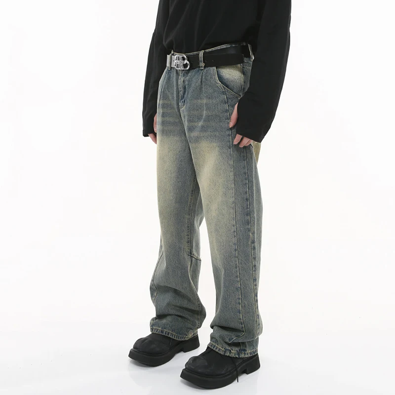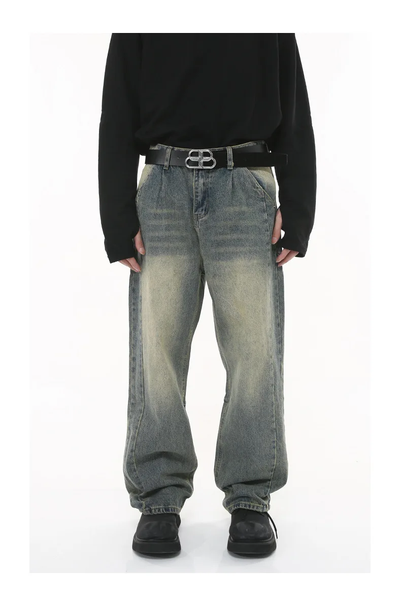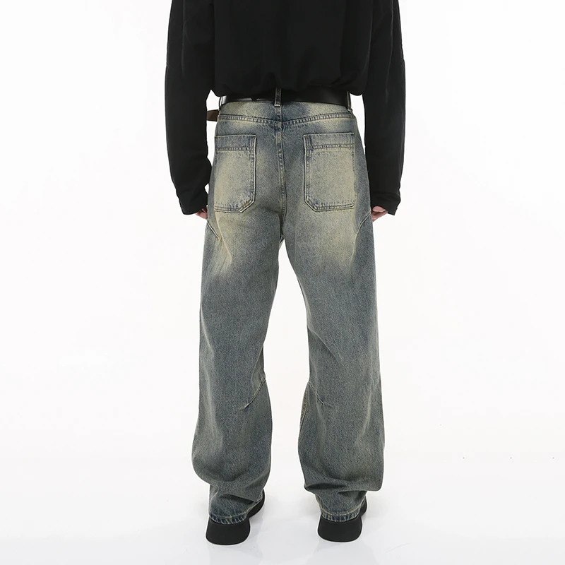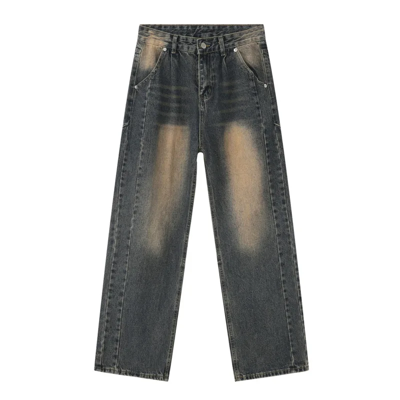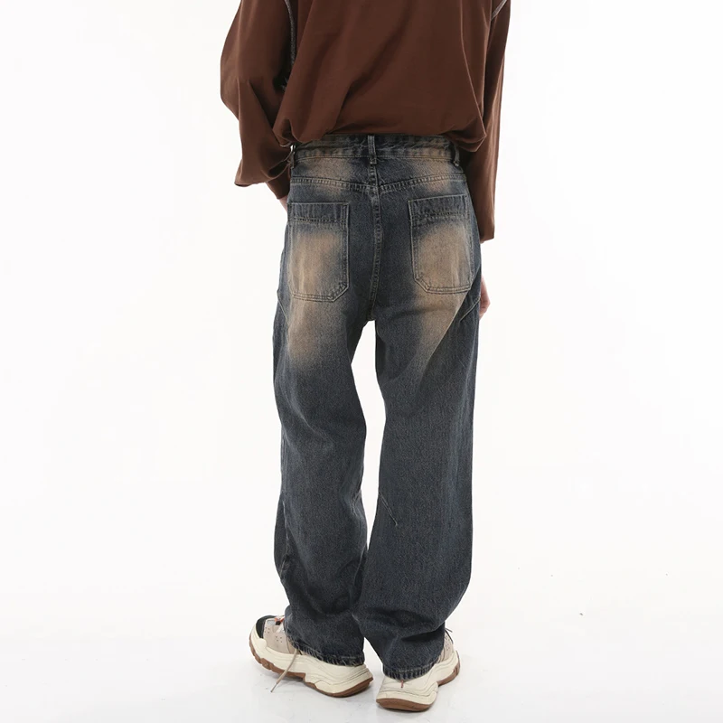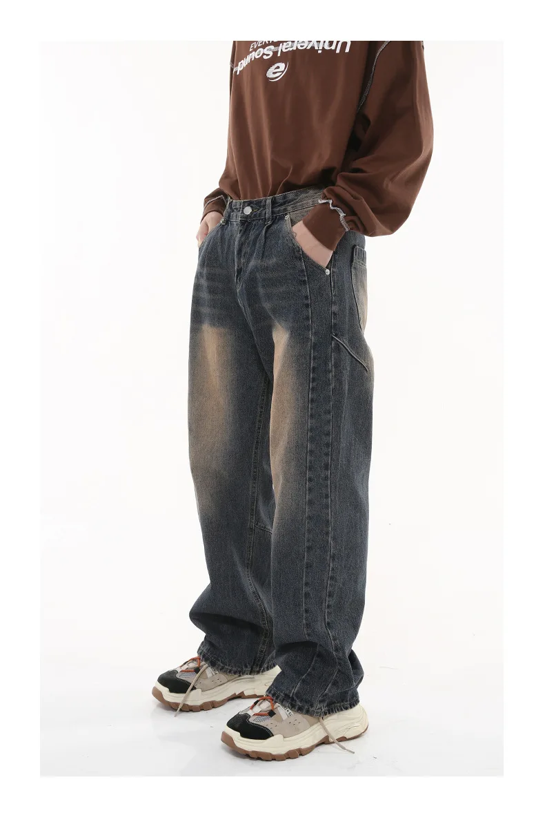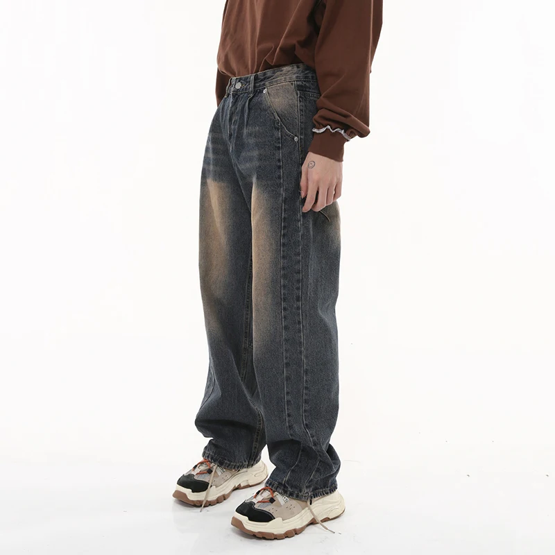 SYUHGFA Trend Men’s Baggy Jeans Vintaeg Washed Streetwear Loose Fashion Gradient Wide Leg Denim Pants Tide Harbor Style New