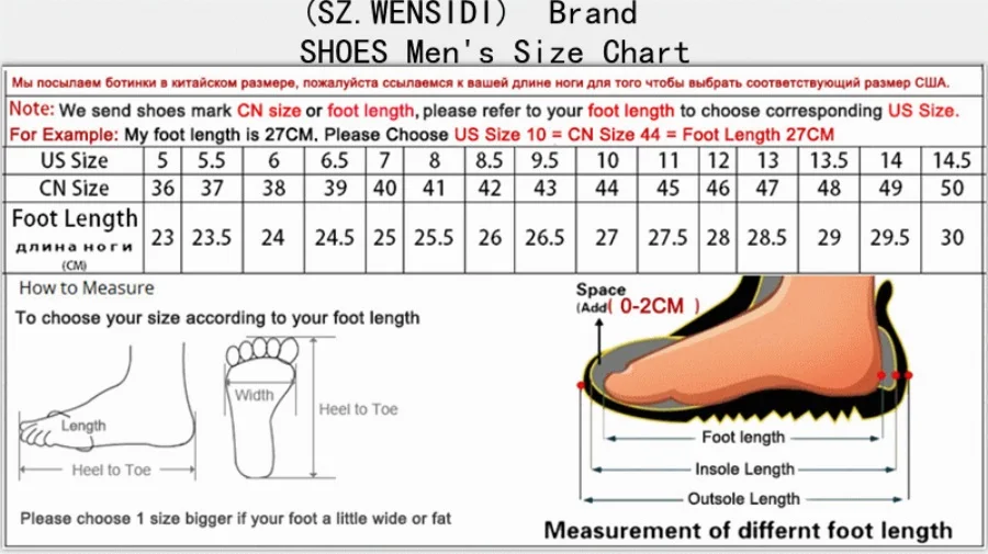 SZ.WENSIDI Brand SHOES Men’s Size Chart