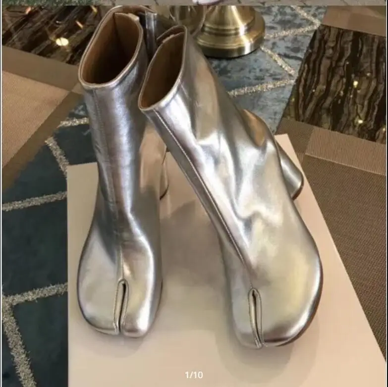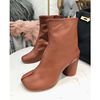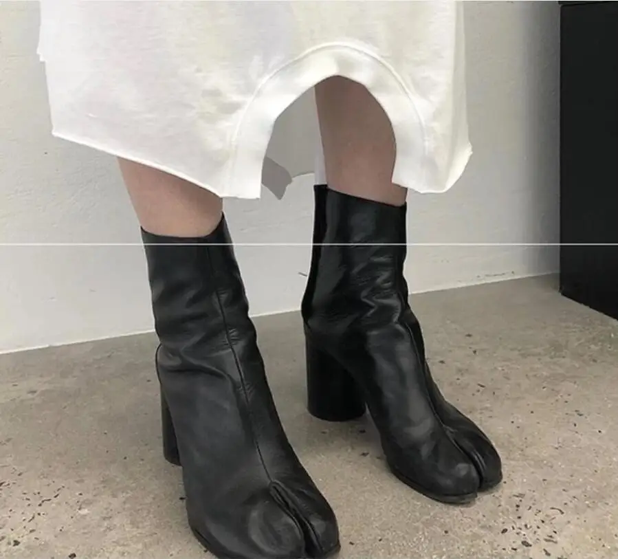 Tabi Split-toe Women Boots Soft Leather High Heels Ankle Booties Buckle Chunky Block Botas Feminina Autumn Winter Shoes Woman