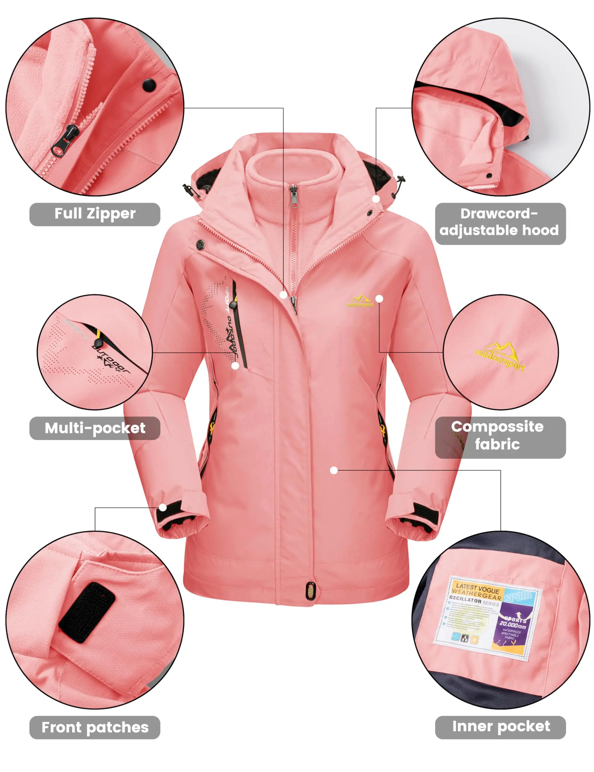 TACVASEN 3 in 1 Winter Fleece Jacket Womens Waterproof Ski Snowboard Jackets Work Rain Coat Outdoor Windbreaker Female Parka