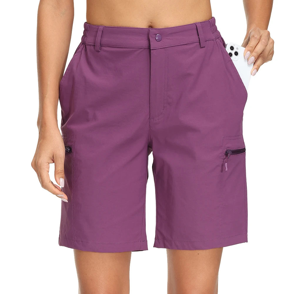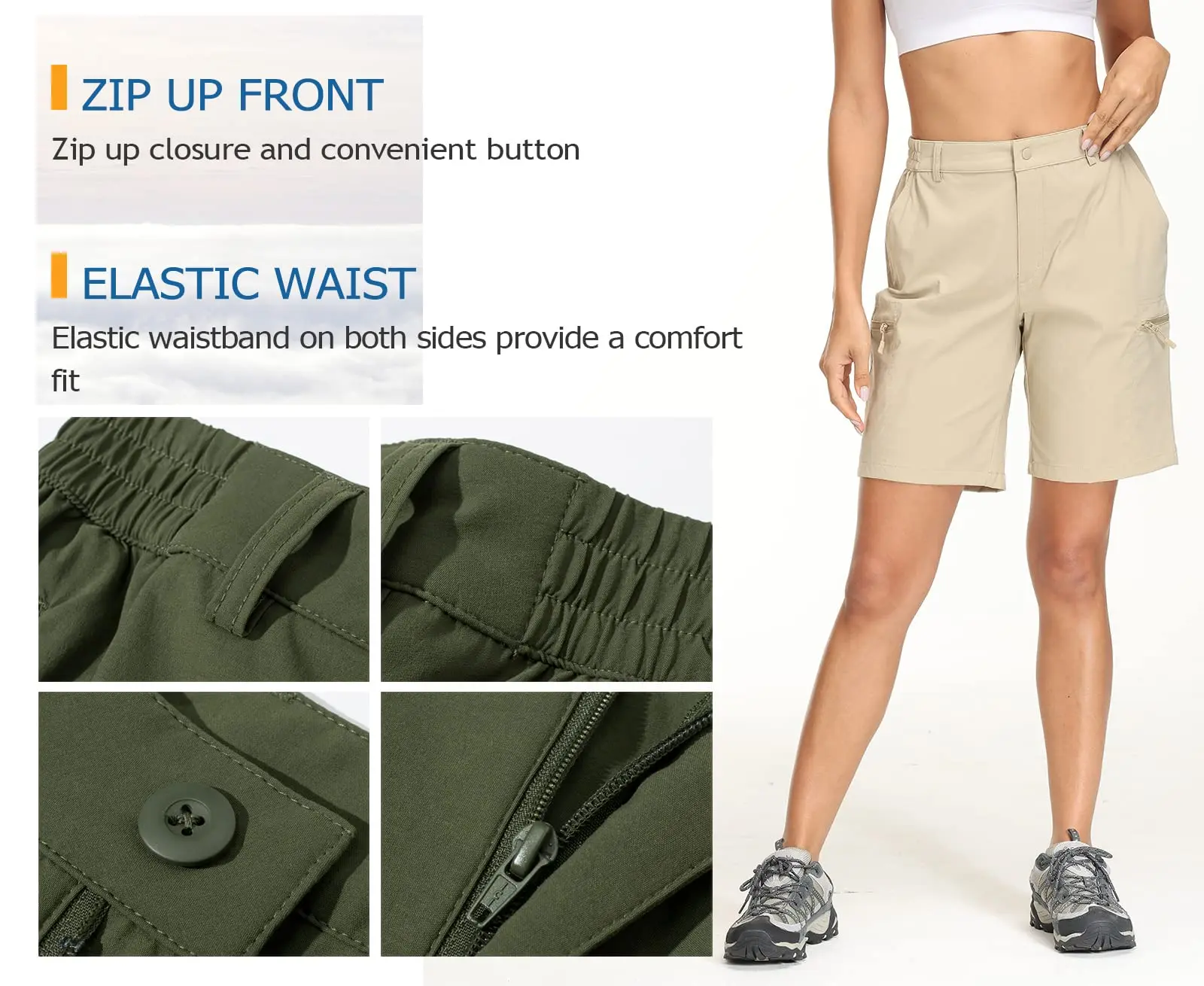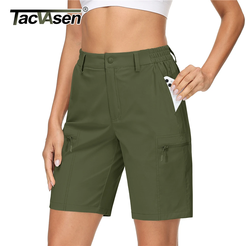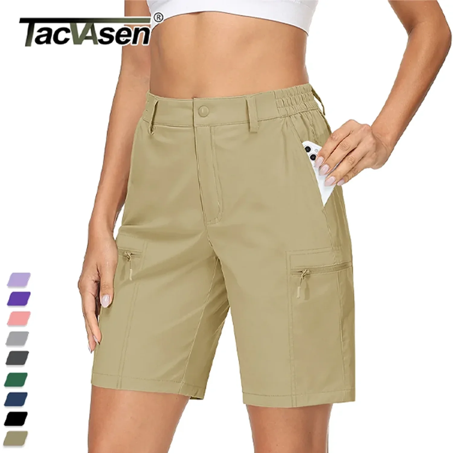 TACVASEN Quick Dry Hiking Shorts Breathable Lightweight Womens Jogging Shorts Outdoor Short Pants Zipper Pockets Cargo Workwear