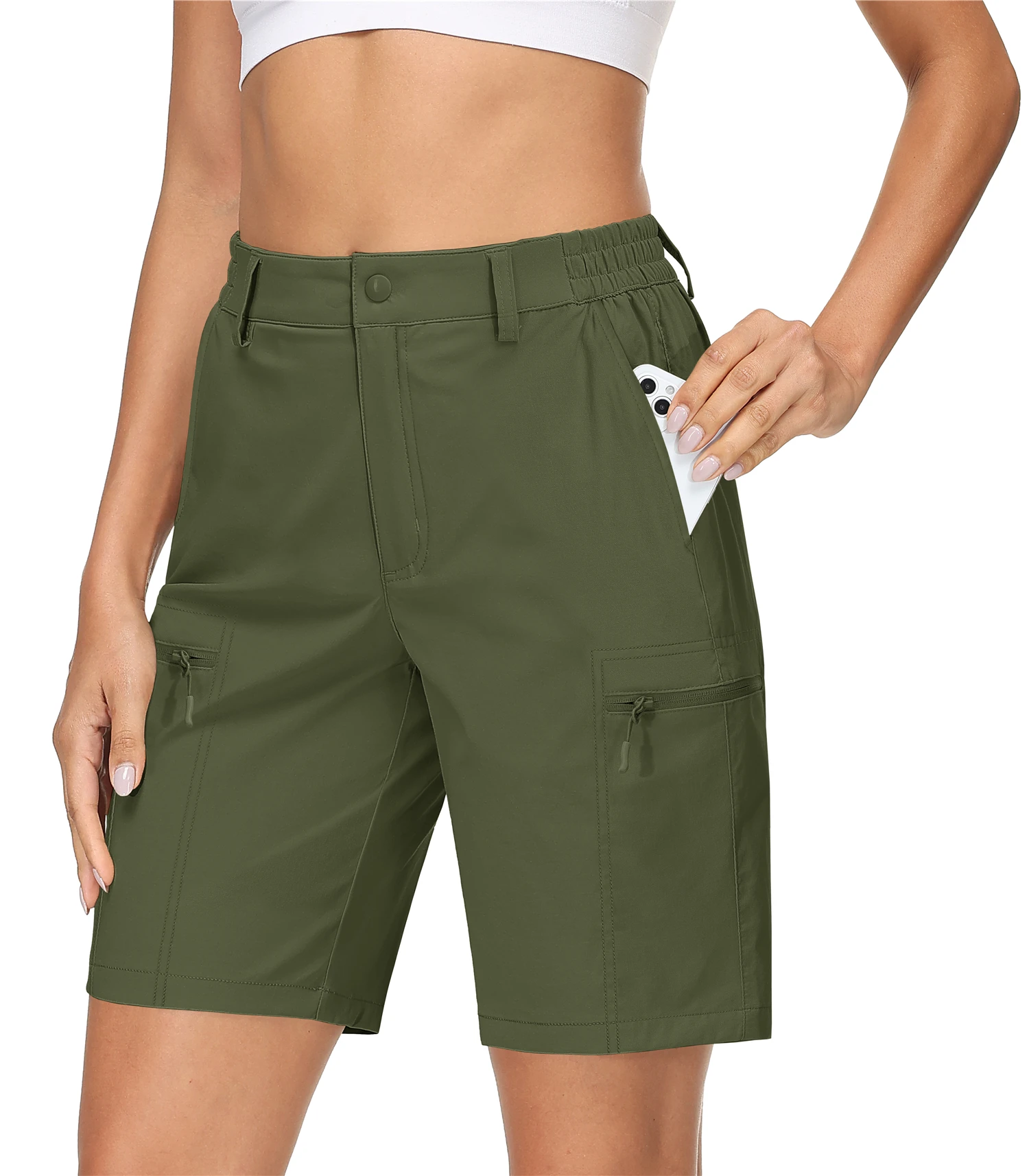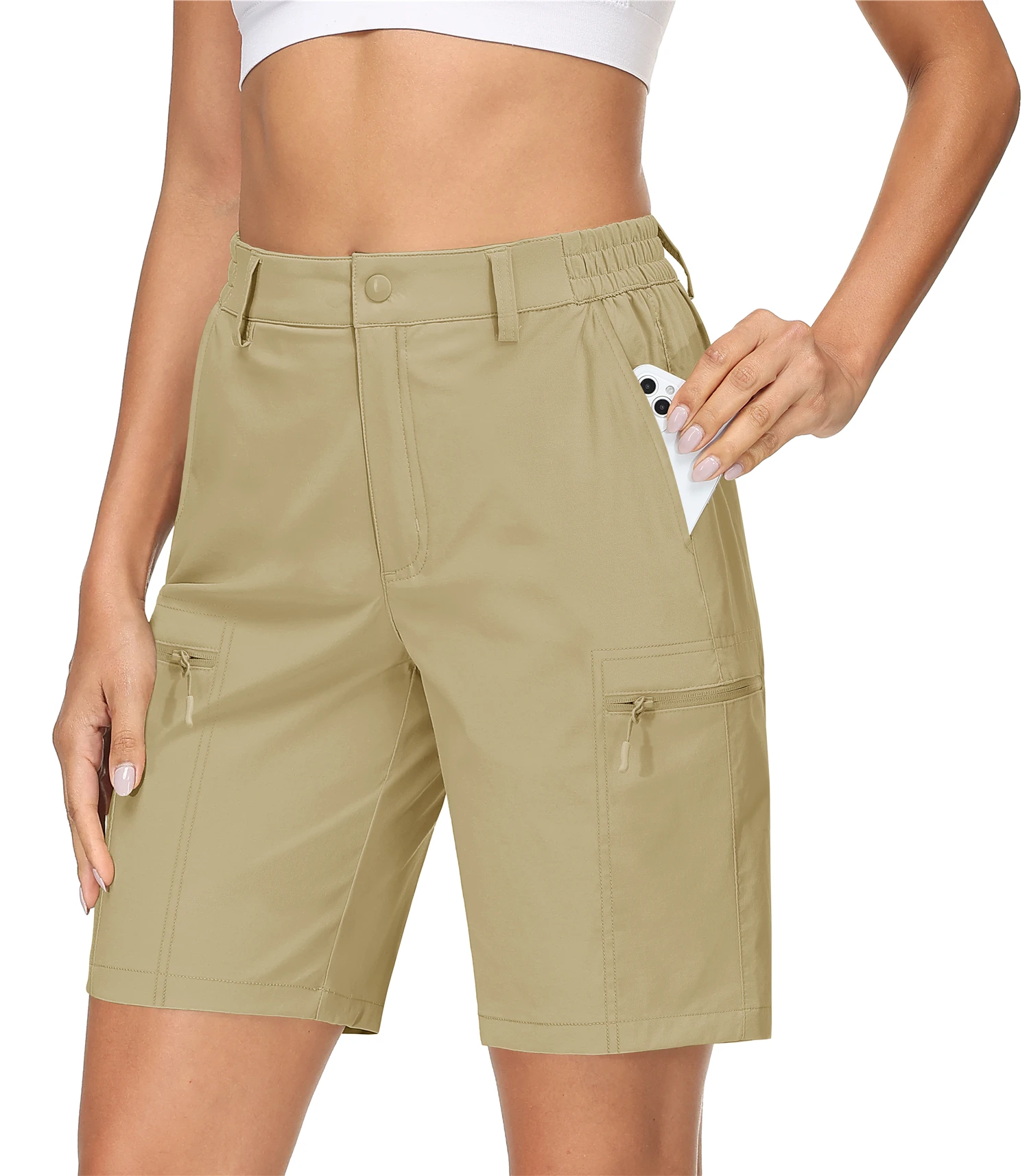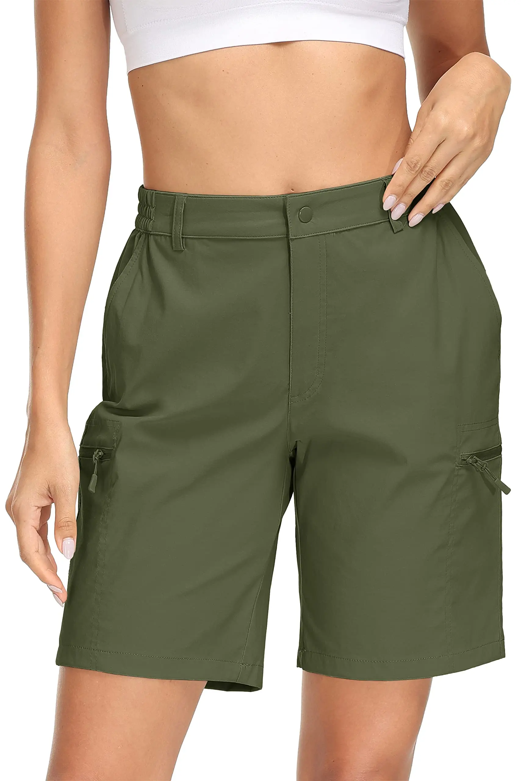 TACVASEN Quick Dry Hiking Shorts Breathable Lightweight Womens Jogging Shorts Outdoor Short Pants Zipper Pockets Cargo Workwear