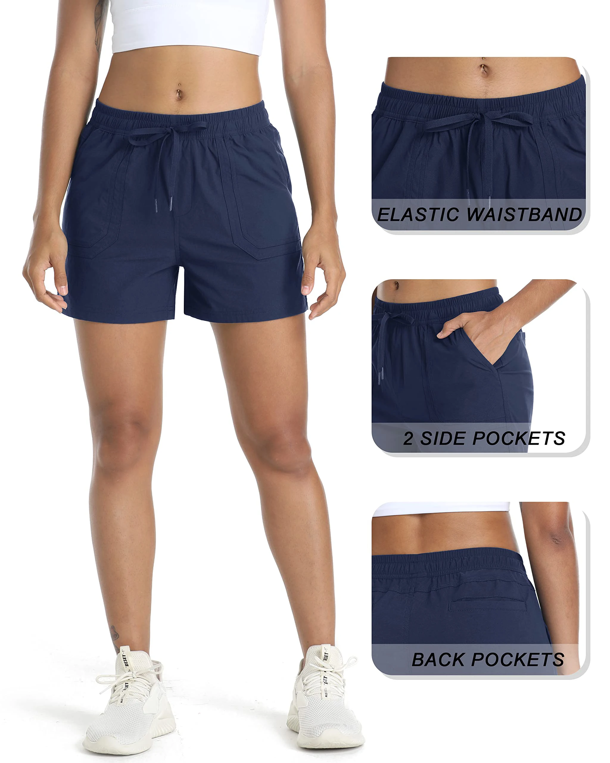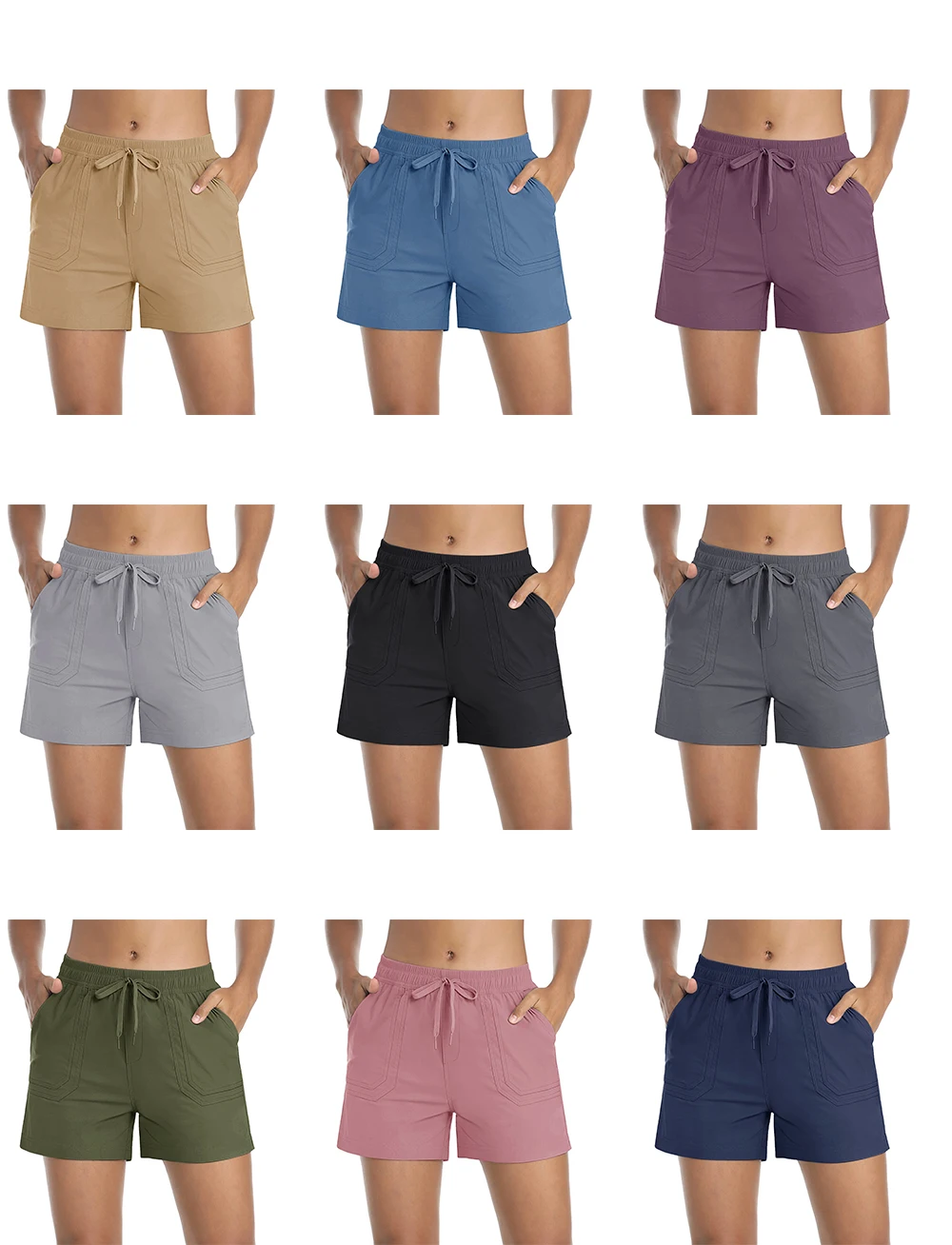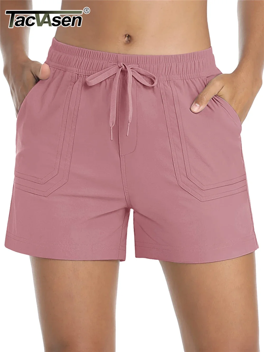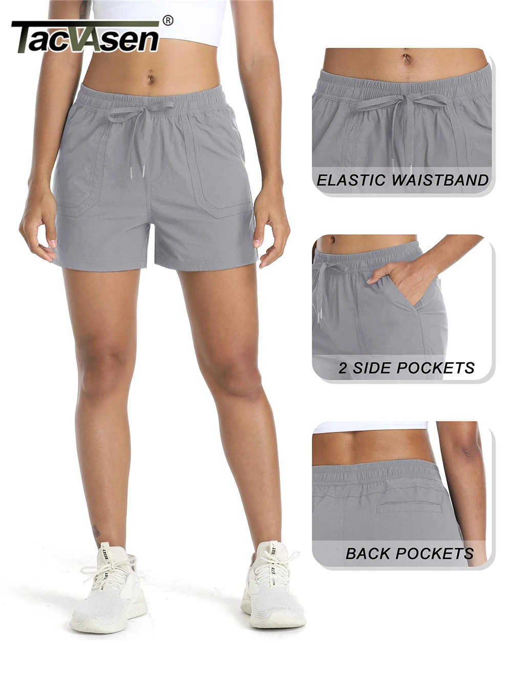 TACVASEN Summer Quick Dry Gym Fitness Sports Shorts Womens Drawstring Shorts Hiking Shorts Multi-Pocket Running Jump Rope Shorts
