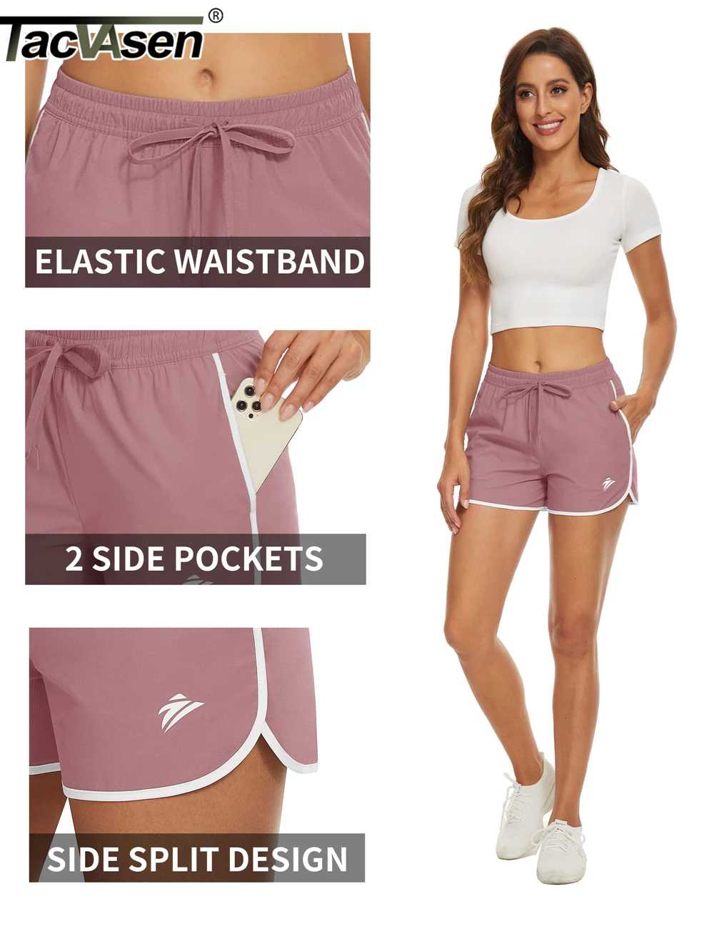 TACVASEN Summer Quick Dry Running Shorts Womens Casual Hiking Gym Trainning Fitness Workout Athletic Sports Shorts With Pockets